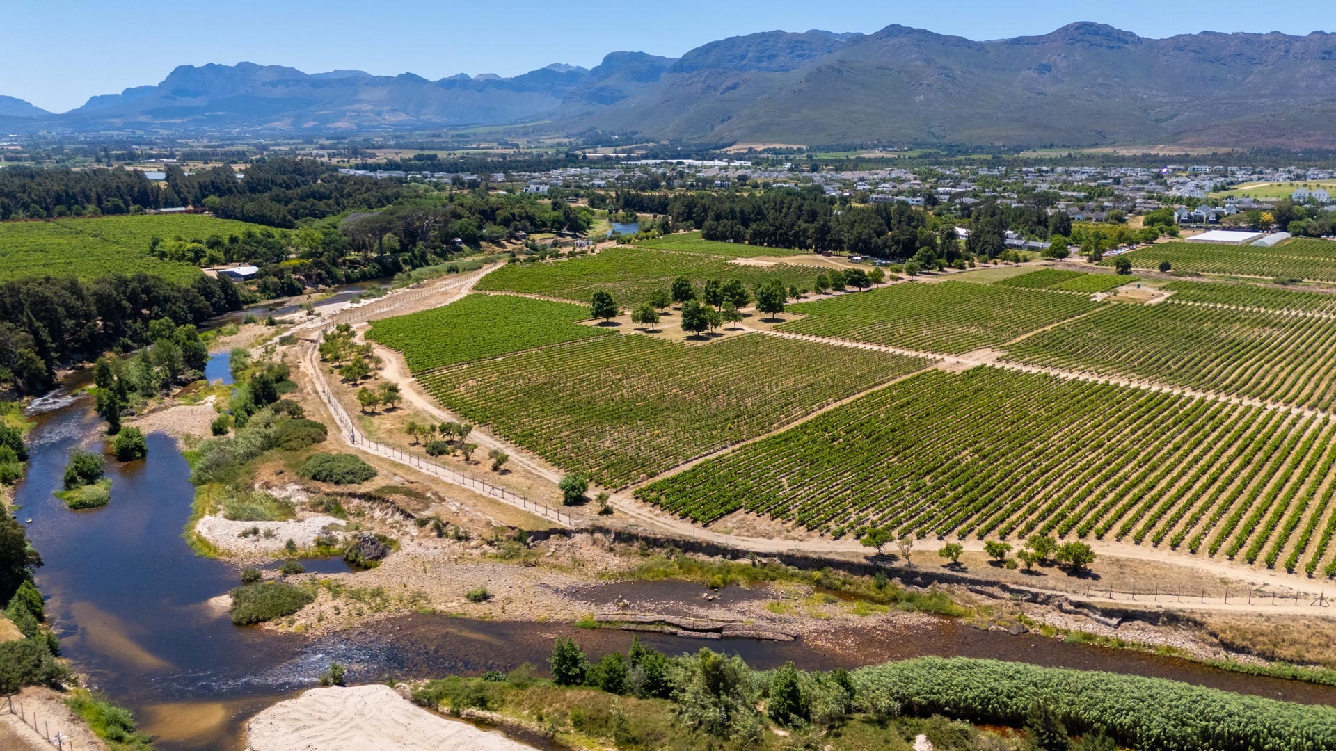 An extraordinary opportunity awaits to own a piece of paradise within the world-renowned Val de Vie Estate, set between Paarl and Franschhoek in the heart of the Cape Winelands. This 27-hectare vineyard property is a rare jewel offering sweeping views of the Simonsberg, Paarl Rock, and Franschhoek mountains, with serene Berg River frontage creating a sanctuary of privacy and natural beauty. Perfectly positioned amid South Africa’s most prestigious wine farms and luxury estates such as Babylonstoren, La Motte, and Rupert & Rothschild, it captures the essence of refined country living blended with modern sophistication.
