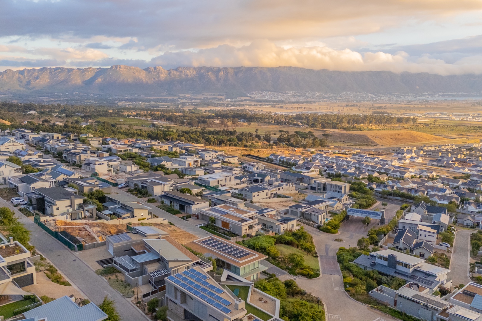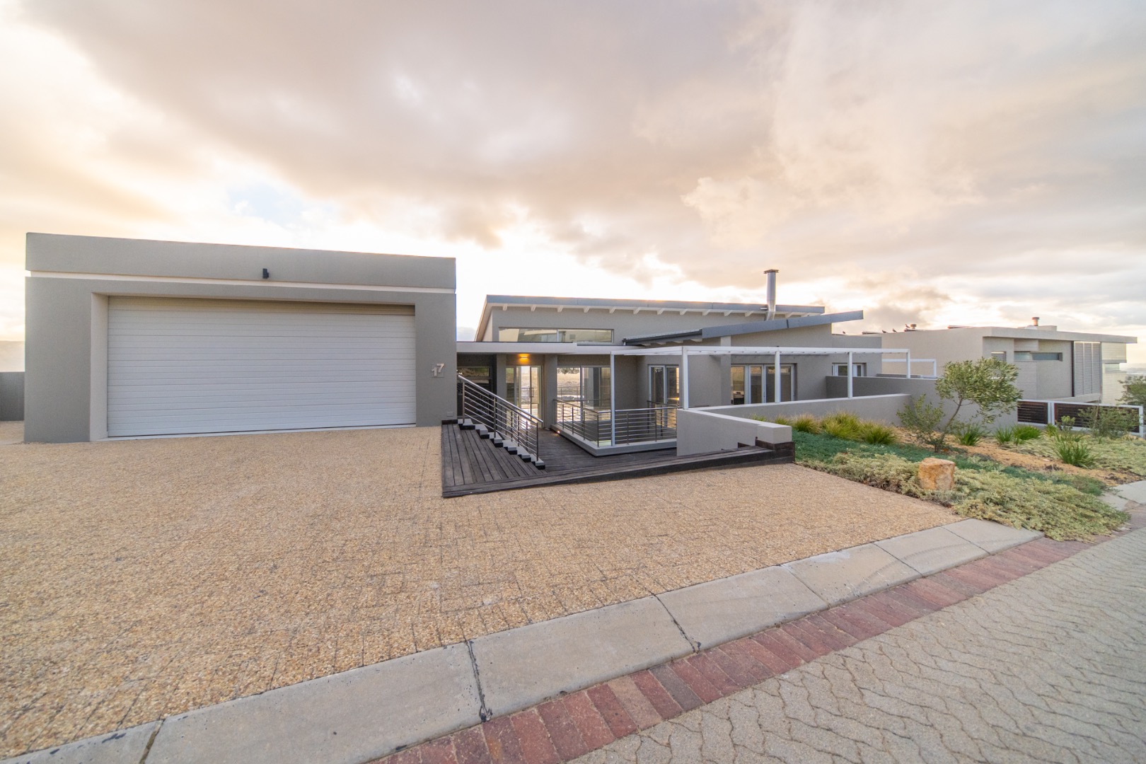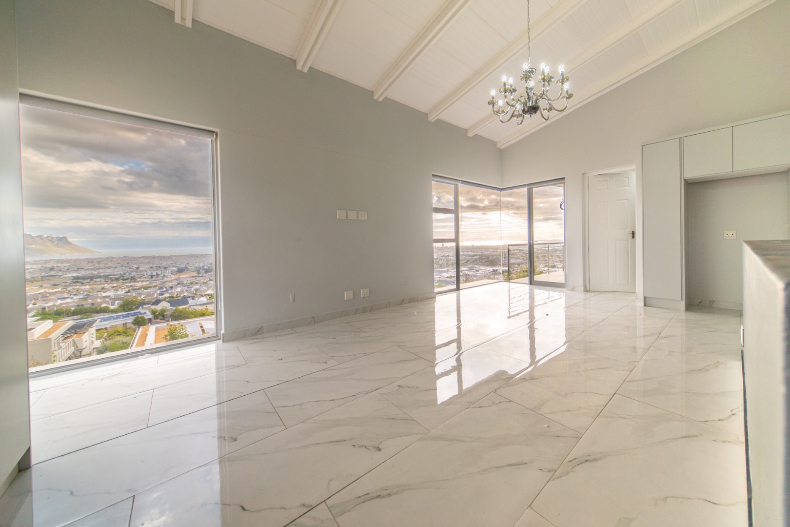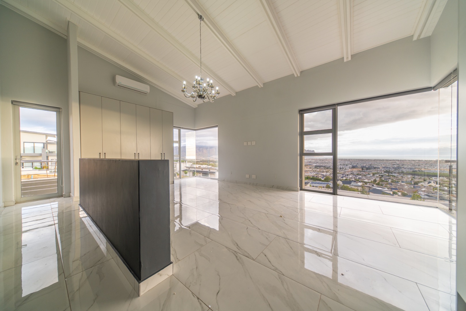 Discover contemporary living in this magnificent 5-bedroom residence nestled within the prestigious Fairhaven Country Estate in Somerset West. This modern, multi-level home boasts a striking architectural design with clean lines and an abundance of natural light, enhanced by large windows and sliding doors that frame scenic views. The expansive 654 sqm floor plan offers two spacious lounges and a dedicated dining room, all featuring high ceilings, elegant chandeliers, and sleek marble-look tiled flooring, creating an open and inviting atmosphere. A modern fireplace adds warmth and character, complemented by air conditioning for year-round comfort. The property features two state-of-the-art kitchens, each designed with modern aesthetics, sleek cabinetry, and integrated hobs on central islands, perfect for culinary enthusiasts and entertaining. With five well-appointed bedrooms and four bathrooms, including three en-suite, plus a convenient guest toilet, this home provides ample space and privacy for families. The master suite and additional bedrooms offer comfortable retreats. Outdoor living is a highlight, with multiple spacious balconies, a patio, and a deck providing extensive areas for relaxation and enjoying the panoramic vistas. A private plunge pool offers a refreshing escape, while the built-in braai is ideal for outdoor entertaining. Practical amenities include two garages and two additional parking spaces. The home is equipped with a battery inverter and benefits from fibre connectivity, ensuring modern convenience and efficiency. As part of a secure estate with 24-hour security and an access gate, residents enjoy peace of mind. Fairhaven Country Estate offers an exclusive lifestyle in Somerset West, a sought-after area known for its natural beauty and proximity to amenities. This estate provides a tranquil environment while being conveniently located. Key Features: * 5 Bedrooms, 4 Bathrooms (3 En-suite) * 2 Modern Kitchens with Integrated Hobs * 2 Spacious Lounges & Dining Room * Private Plunge Pool & Built-in Braai * Multiple Balconies, Patio & Deck * 2 Garages & 2 Parking Spaces * Battery Inverter & Fibre Connectivity * Secure Estate with 24-Hour Security * Air Conditioning & Fireplace