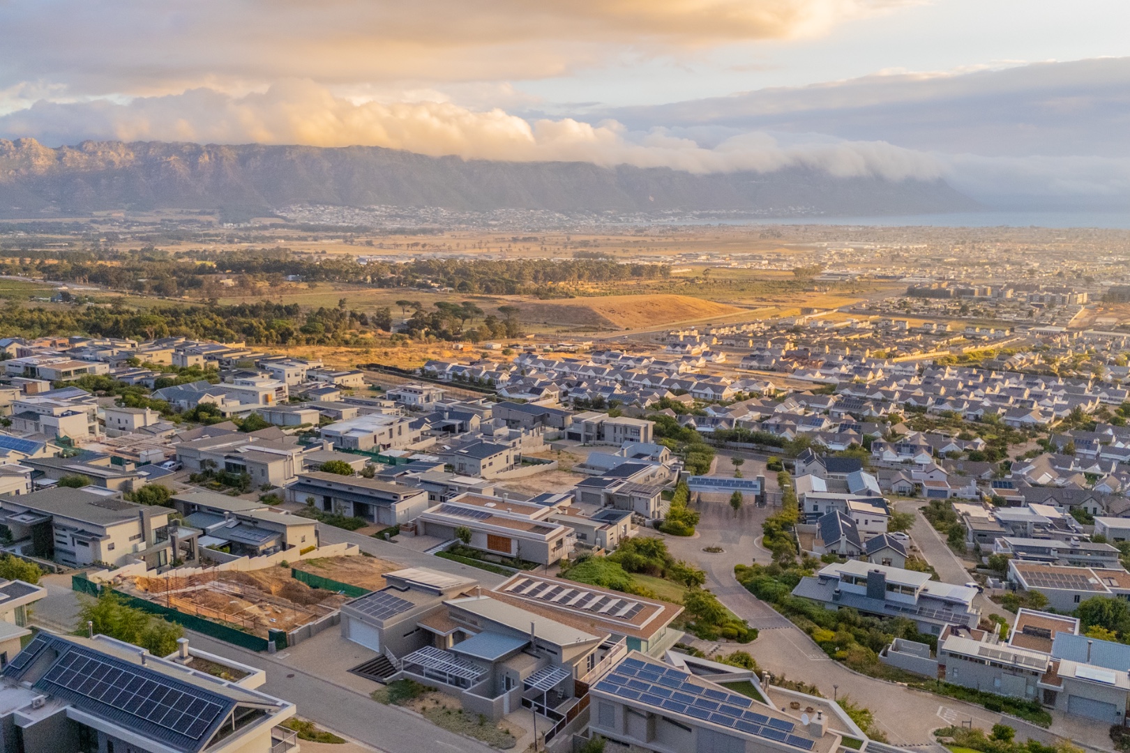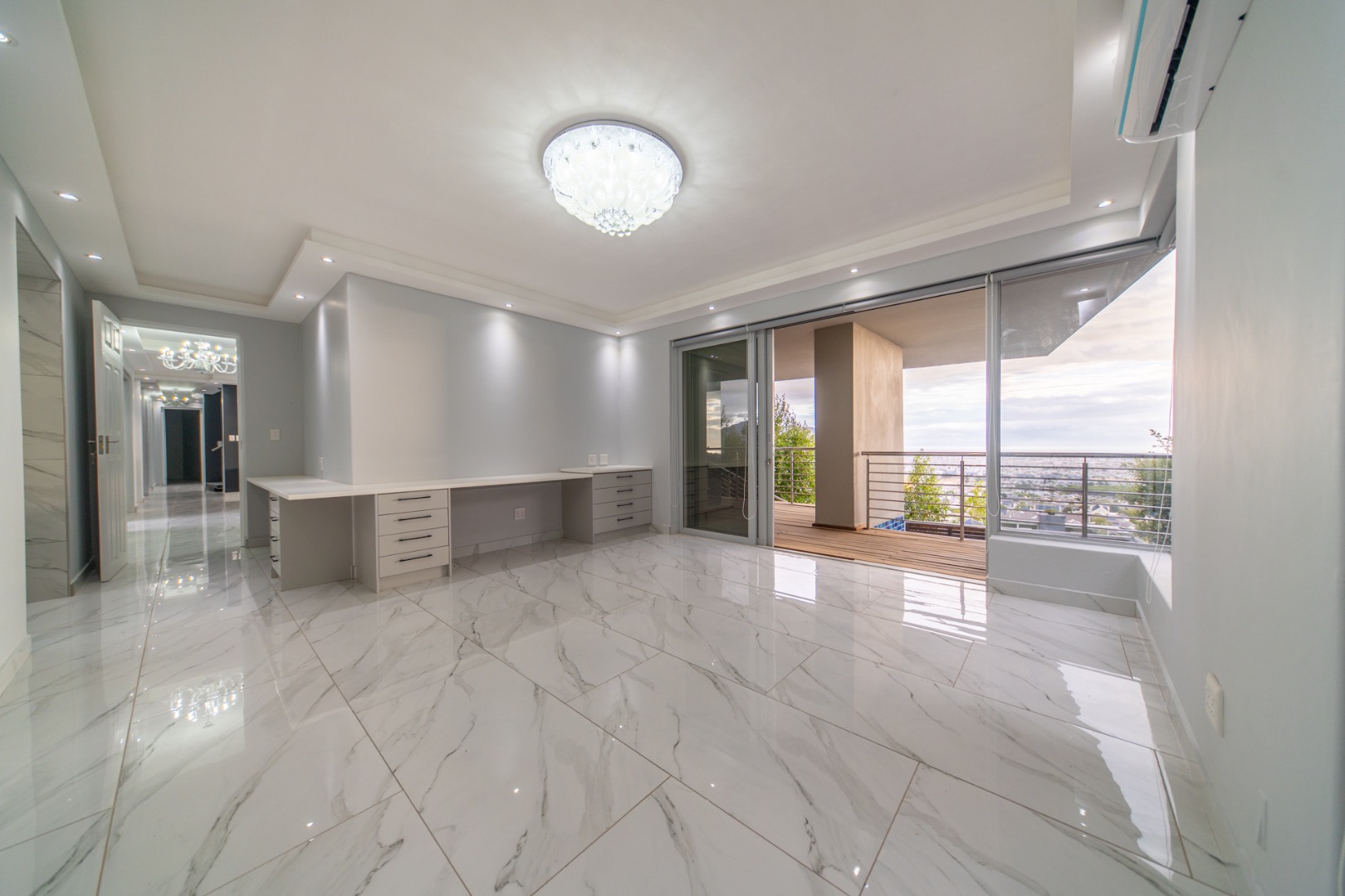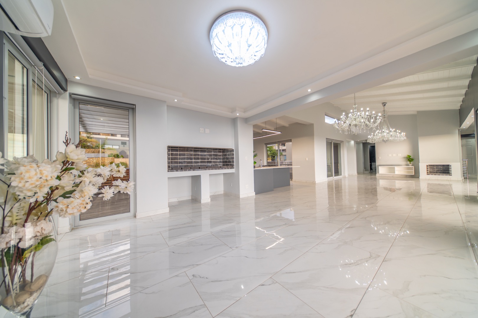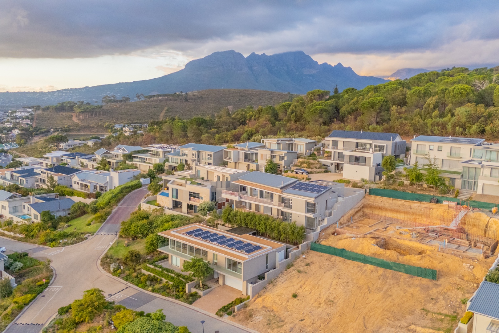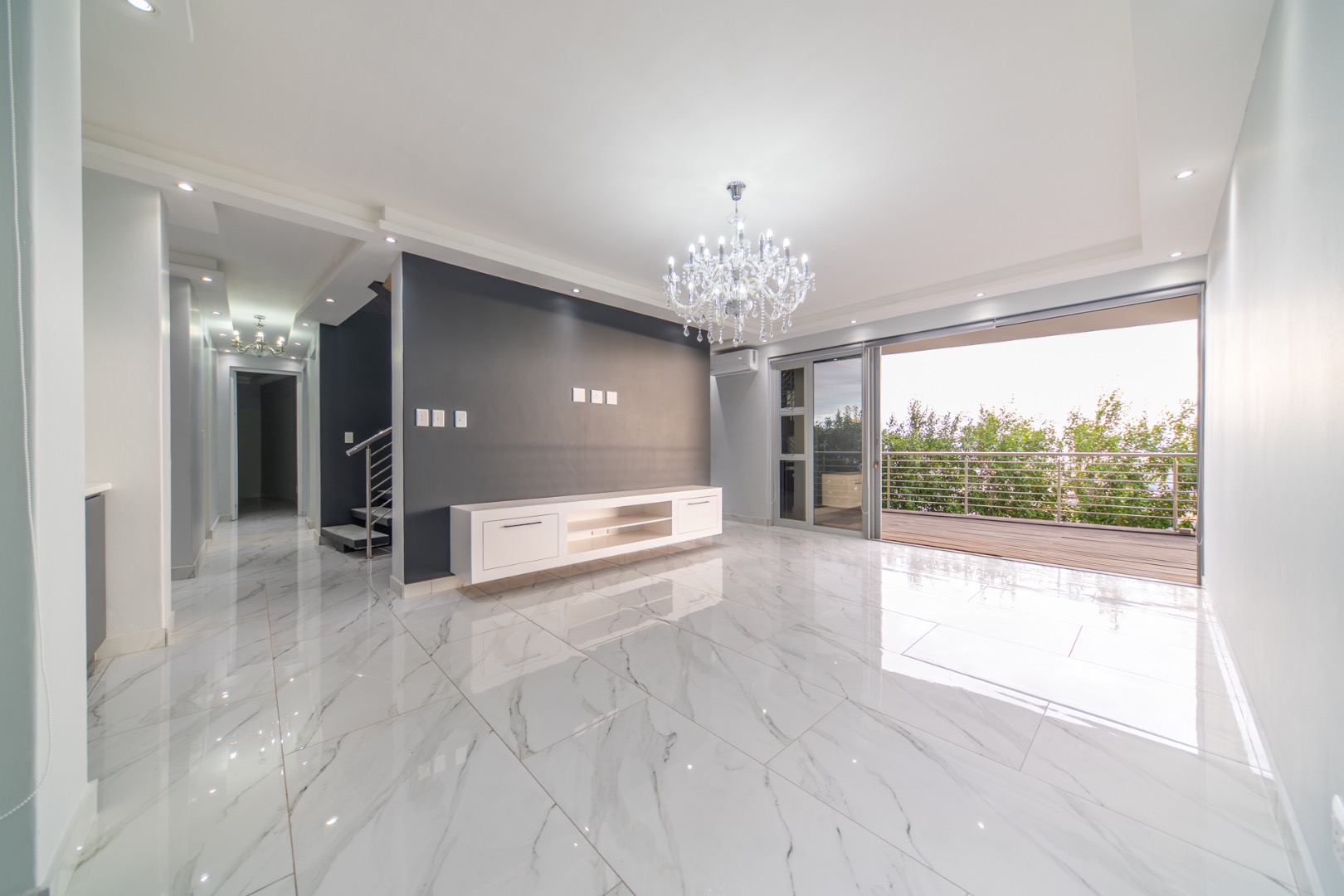 Discover contemporary living in this magnificent 5-bedroom residence nestled within the prestigious Fairhaven Country Estate in Somerset West. This modern, multi-level home boasts a striking architectural design with clean lines and an abundance of natural light, enhanced by large windows and sliding doors that frame scenic views. The expansive 654 sqm floor plan offers two spacious lounges and a dedicated dining room, all featuring high ceilings, elegant chandeliers, and sleek marble-look tiled flooring, creating an open and inviting atmosphere. A modern fireplace adds warmth and character, complemented by air conditioning for year-round comfort. The property features two state-of-the-art kitchens, each designed with modern aesthetics, sleek cabinetry, and integrated hobs on central islands, perfect for culinary enthusiasts and entertaining. With five well-appointed bedrooms and four bathrooms, including three en-suite, plus a convenient guest toilet, this home provides ample space and privacy for families. The master suite and additional bedrooms offer comfortable retreats. Outdoor living is a highlight, with multiple spacious balconies, a patio, and a deck providing extensive areas for relaxation and enjoying the panoramic vistas. A private plunge pool offers a refreshing escape, while the built-in braai is ideal for outdoor entertaining. Practical amenities include two garages and two additional parking spaces. The home is equipped with a battery inverter and benefits from fibre connectivity, ensuring modern convenience and efficiency. As part of a secure estate with 24-hour security and an access gate, residents enjoy peace of mind. Fairhaven Country Estate offers an exclusive lifestyle in Somerset West, a sought-after area known for its natural beauty and proximity to amenities. This estate provides a tranquil environment while being conveniently located. Key Features: * 5 Bedrooms, 4 Bathrooms (3 En-suite) * 2 Modern Kitchens with Integrated Hobs * 2 Spacious Lounges & Dining Room * Private Plunge Pool & Built-in Braai * Multiple Balconies, Patio & Deck * 2 Garages & 2 Parking Spaces * Battery Inverter & Fibre Connectivity * Secure Estate with 24-Hour Security * Air Conditioning & Fireplace