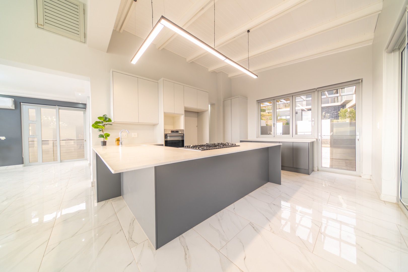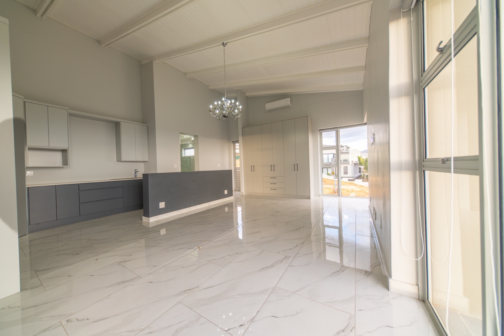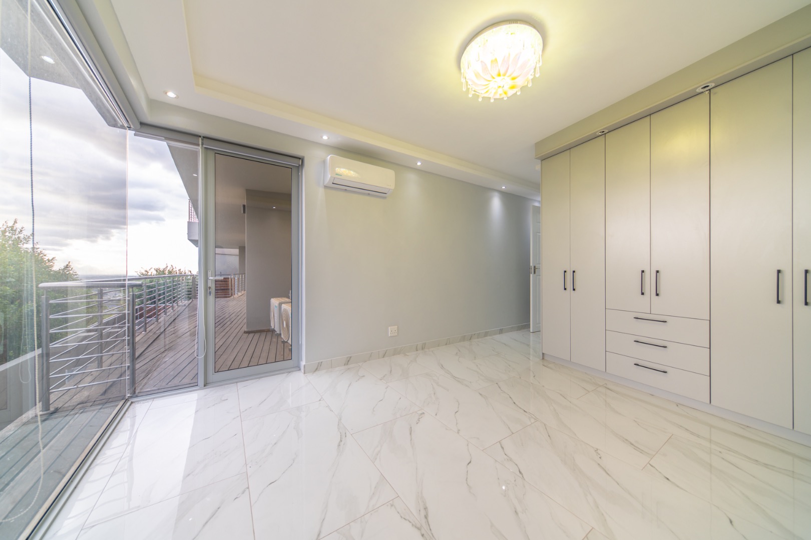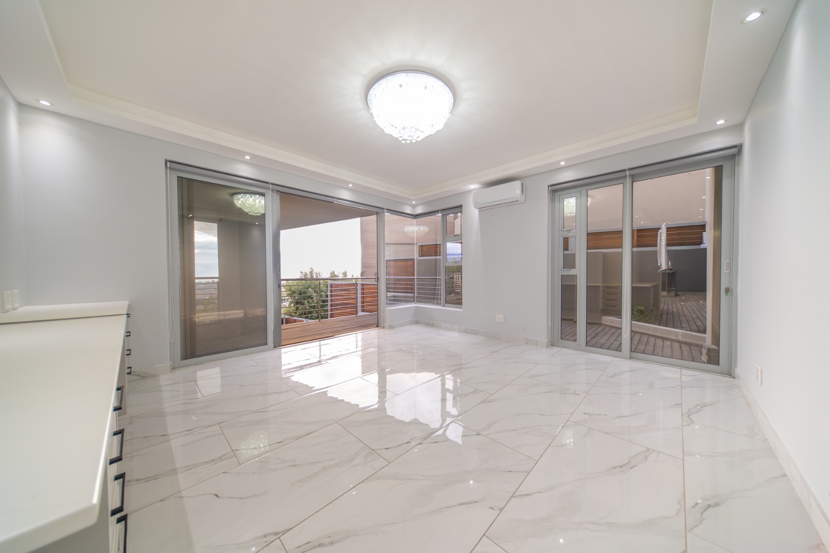 Discover contemporary living in this magnificent 5-bedroom residence nestled within the prestigious Fairhaven Country Estate in Somerset West. This modern, multi-level home boasts a striking architectural design with clean lines and an abundance of natural light, enhanced by large windows and sliding doors that frame scenic views. The expansive 654 sqm floor plan offers two spacious lounges and a dedicated dining room, all featuring high ceilings, elegant chandeliers, and sleek marble-look tiled flooring, creating an open and inviting atmosphere. A modern fireplace adds warmth and character, complemented by air conditioning for year-round comfort. The property features two state-of-the-art kitchens, each designed with modern aesthetics, sleek cabinetry, and integrated hobs on central islands, perfect for culinary enthusiasts and entertaining. With five well-appointed bedrooms and four bathrooms, including three en-suite, plus a convenient guest toilet, this home provides ample space and privacy for families. The master suite and additional bedrooms offer comfortable retreats. Outdoor living is a highlight, with multiple spacious balconies, a patio, and a deck providing extensive areas for relaxation and enjoying the panoramic vistas. A private plunge pool offers a refreshing escape, while the built-in braai is ideal for outdoor entertaining. Practical amenities include two garages and two additional parking spaces. The home is equipped with a battery inverter and benefits from fibre connectivity, ensuring modern convenience and efficiency. As part of a secure estate with 24-hour security and an access gate, residents enjoy peace of mind. Fairhaven Country Estate offers an exclusive lifestyle in Somerset West, a sought-after area known for its natural beauty and proximity to amenities. This estate provides a tranquil environment while being conveniently located. Key Features: * 5 Bedrooms, 4 Bathrooms (3 En-suite) * 2 Modern Kitchens with Integrated Hobs * 2 Spacious Lounges & Dining Room * Private Plunge Pool & Built-in Braai * Multiple Balconies, Patio & Deck * 2 Garages & 2 Parking Spaces * Battery Inverter & Fibre Connectivity * Secure Estate with 24-Hour Security * Air Conditioning & Fireplace