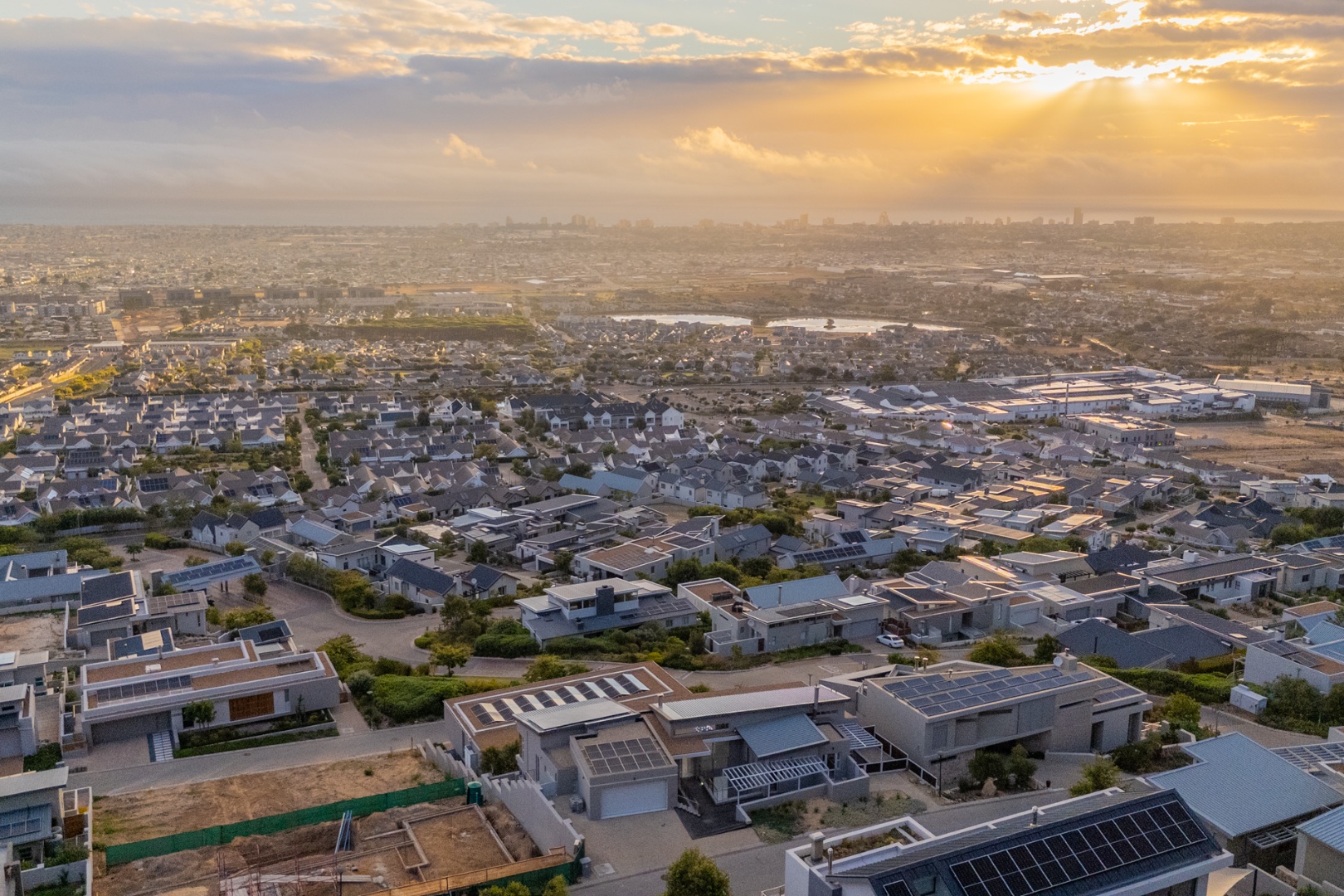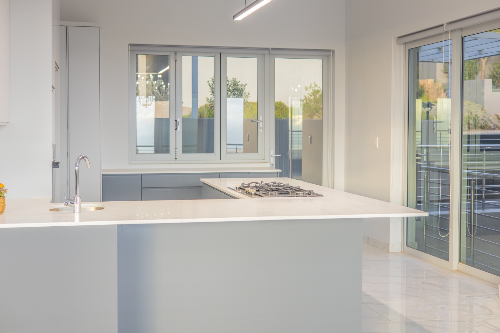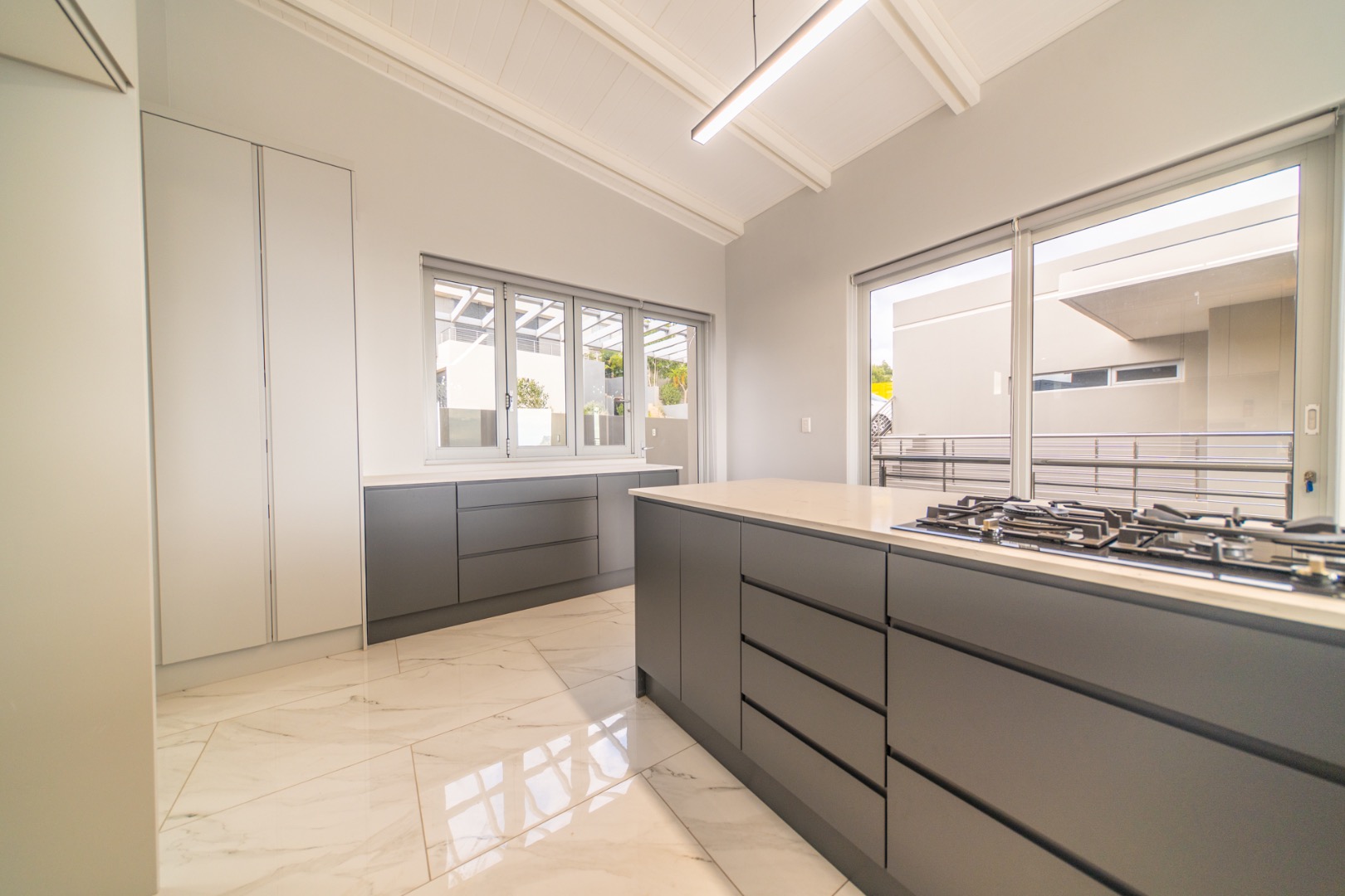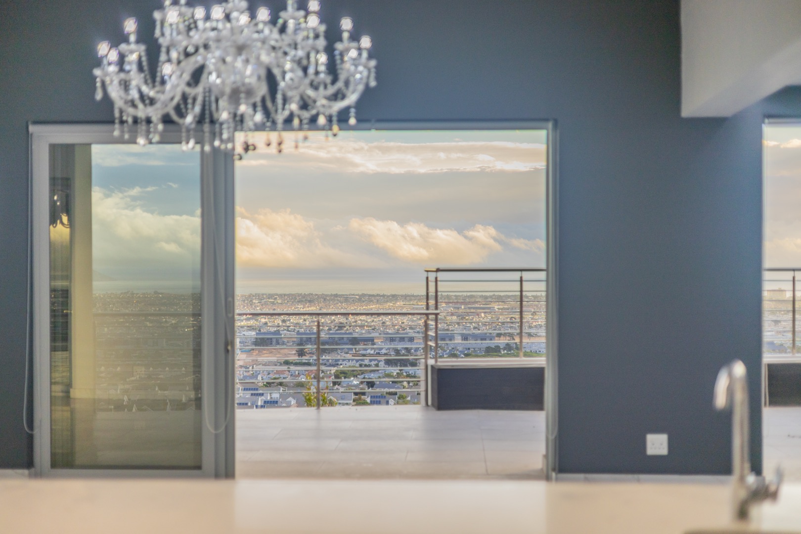 Discover contemporary living in this magnificent 5-bedroom residence nestled within the prestigious Fairhaven Country Estate in Somerset West. This modern, multi-level home boasts a striking architectural design with clean lines and an abundance of natural light, enhanced by large windows and sliding doors that frame scenic views. The expansive 654 sqm floor plan offers two spacious lounges and a dedicated dining room, all featuring high ceilings, elegant chandeliers, and sleek marble-look tiled flooring, creating an open and inviting atmosphere. A modern fireplace adds warmth and character, complemented by air conditioning for year-round comfort. The property features two state-of-the-art kitchens, each designed with modern aesthetics, sleek cabinetry, and integrated hobs on central islands, perfect for culinary enthusiasts and entertaining. With five well-appointed bedrooms and four bathrooms, including three en-suite, plus a convenient guest toilet, this home provides ample space and privacy for families. The master suite and additional bedrooms offer comfortable retreats. Outdoor living is a highlight, with multiple spacious balconies, a patio, and a deck providing extensive areas for relaxation and enjoying the panoramic vistas. A private plunge pool offers a refreshing escape, while the built-in braai is ideal for outdoor entertaining. Practical amenities include two garages and two additional parking spaces. The home is equipped with a battery inverter and benefits from fibre connectivity, ensuring modern convenience and efficiency. As part of a secure estate with 24-hour security and an access gate, residents enjoy peace of mind. Fairhaven Country Estate offers an exclusive lifestyle in Somerset West, a sought-after area known for its natural beauty and proximity to amenities. This estate provides a tranquil environment while being conveniently located. Key Features: * 5 Bedrooms, 4 Bathrooms (3 En-suite) * 2 Modern Kitchens with Integrated Hobs * 2 Spacious Lounges & Dining Room * Private Plunge Pool & Built-in Braai * Multiple Balconies, Patio & Deck * 2 Garages & 2 Parking Spaces * Battery Inverter & Fibre Connectivity * Secure Estate with 24-Hour Security * Air Conditioning & Fireplace