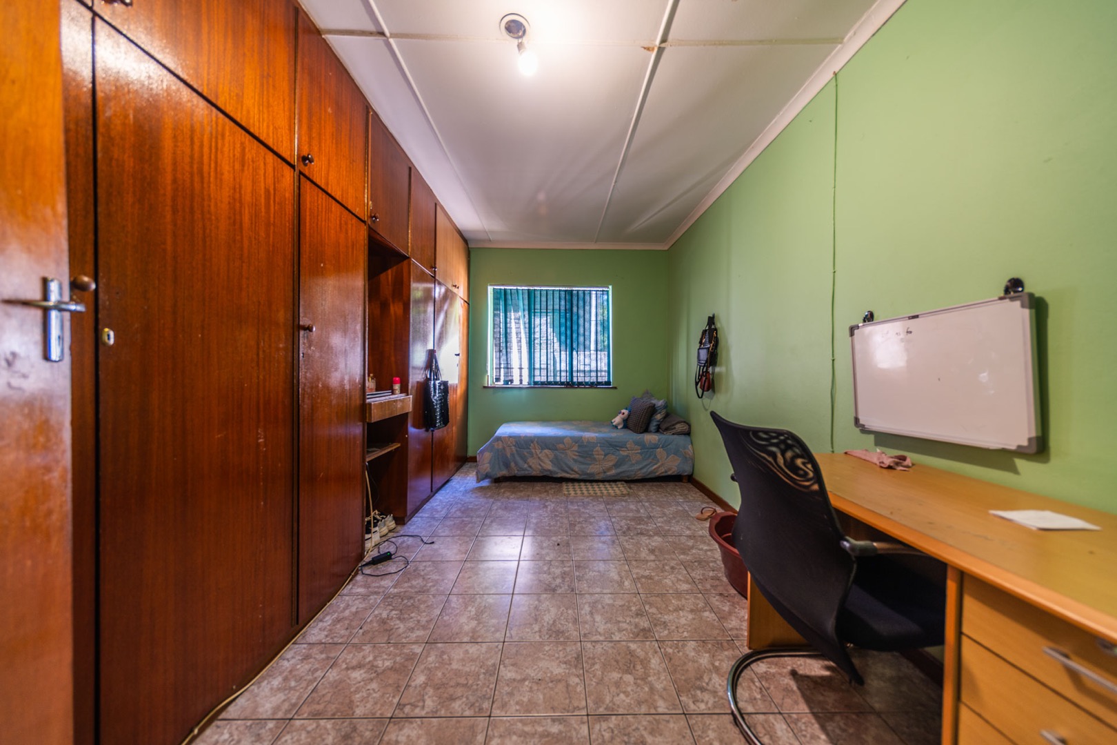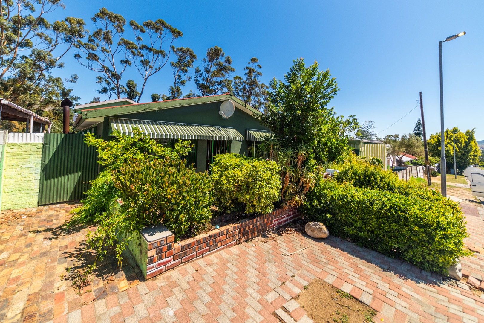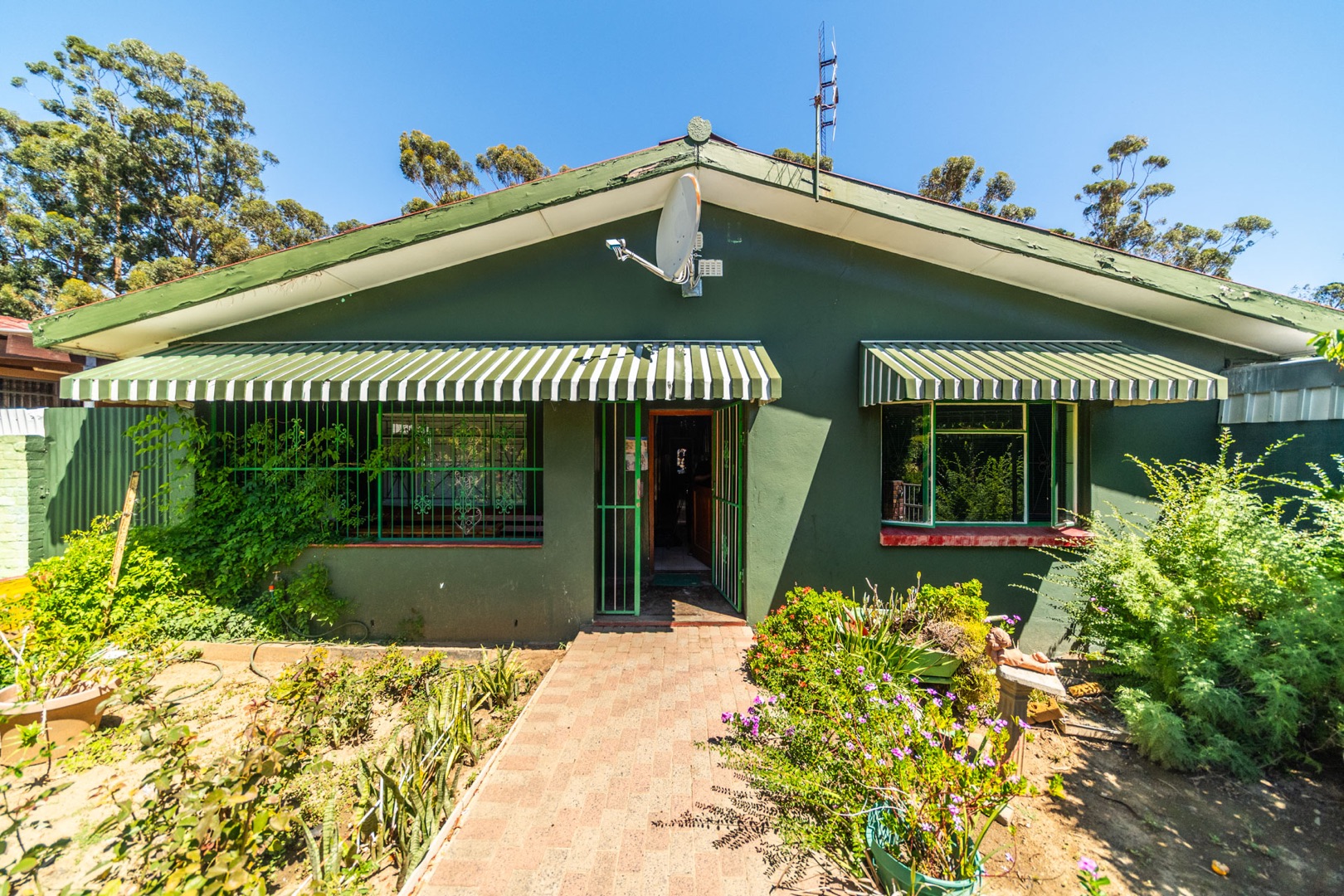 Discover this spacious residential property located in the scenic Idasvallei, Stellenbosch, offering a blend of character and potential. The exterior features a distinctive green facade complemented by striped awnings and an established, albeit overgrown, front garden. A brick-paved driveway provides convenient access, while security bars on windows and doors enhance peace of mind. While the property presents an opportunity for exterior renovation to refresh its curb appeal, the mature greenery adds natural charm.