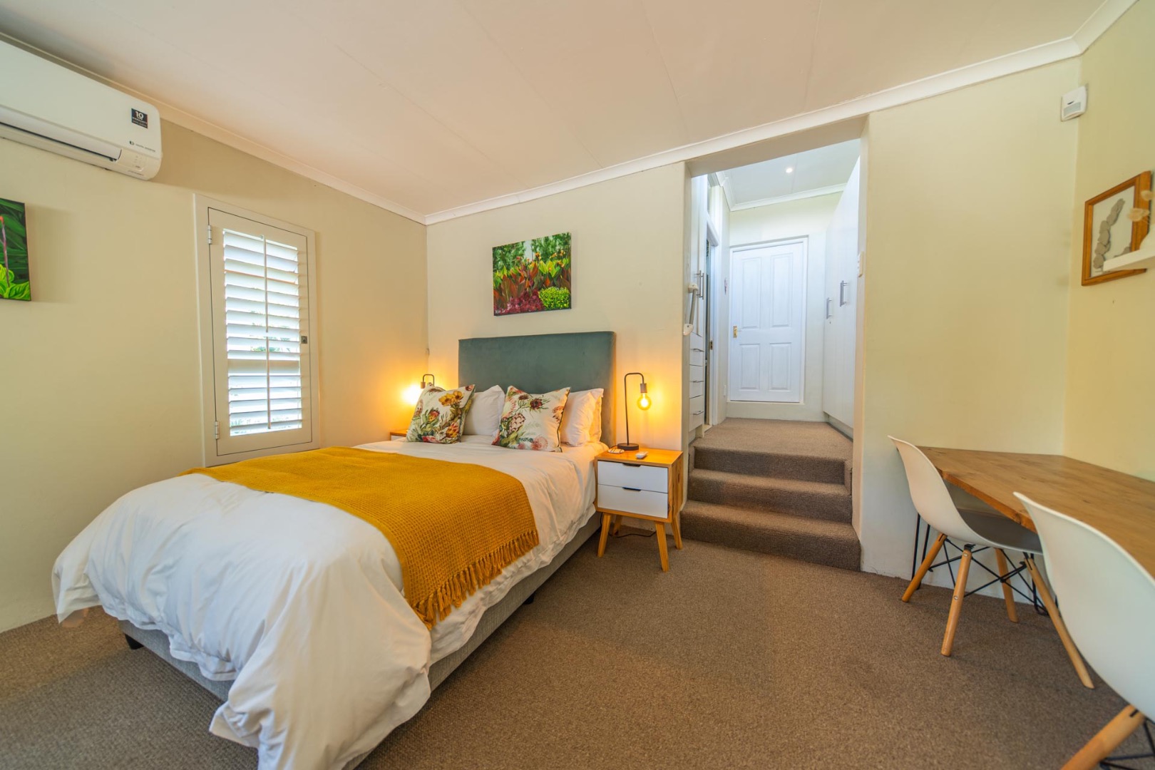 Includes a kitchenette, private courtyard, bathroom, ample cupboard space, and its own air conditioner