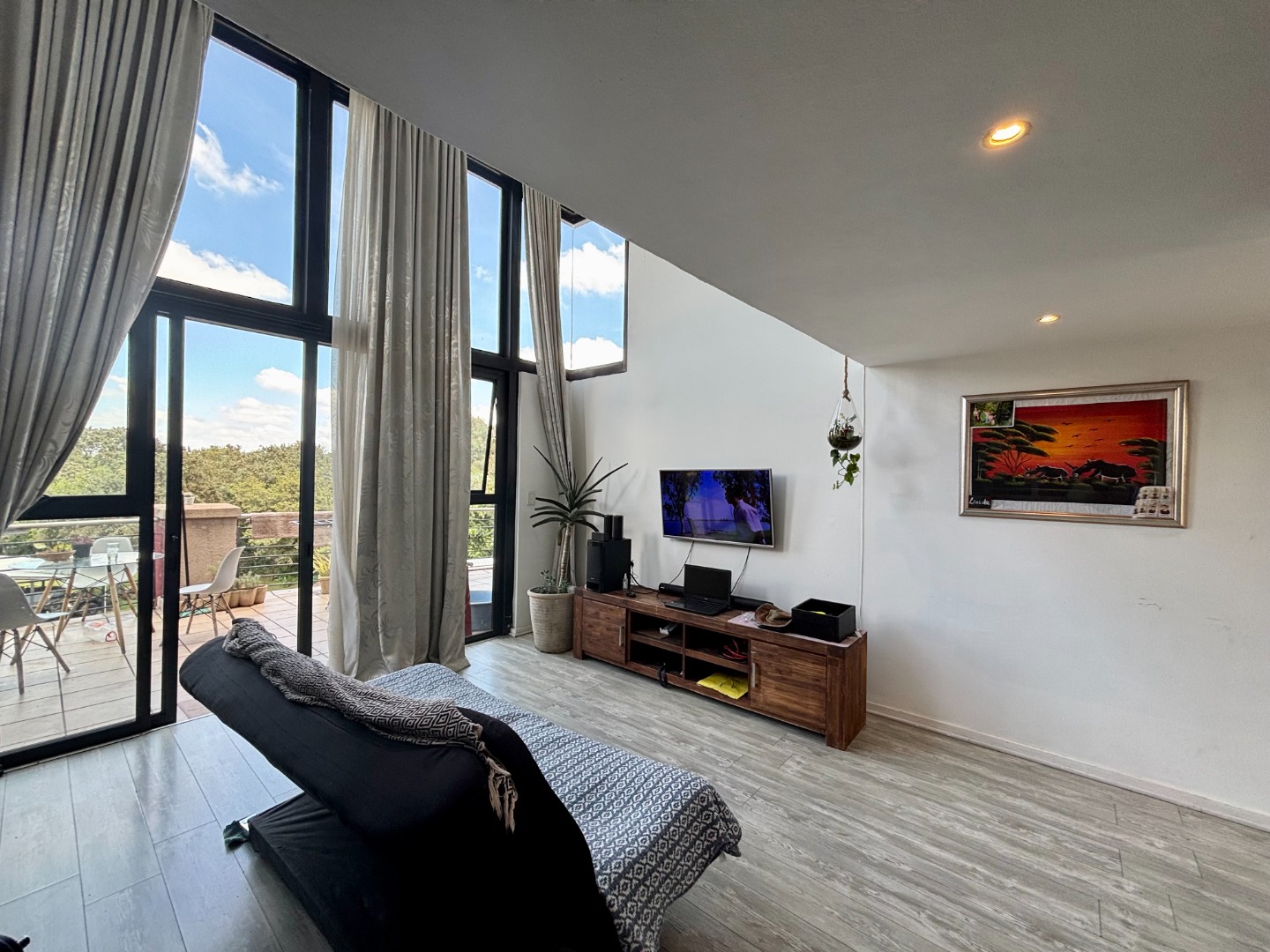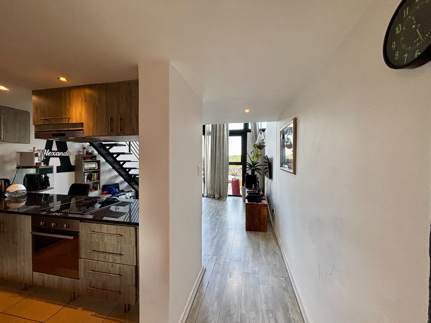 The loft apartment has modern finishes and also includes a Kelvinator washing machine, a Defy Eco water dispensing fridge and sliding doors that open onto the massive balcony.