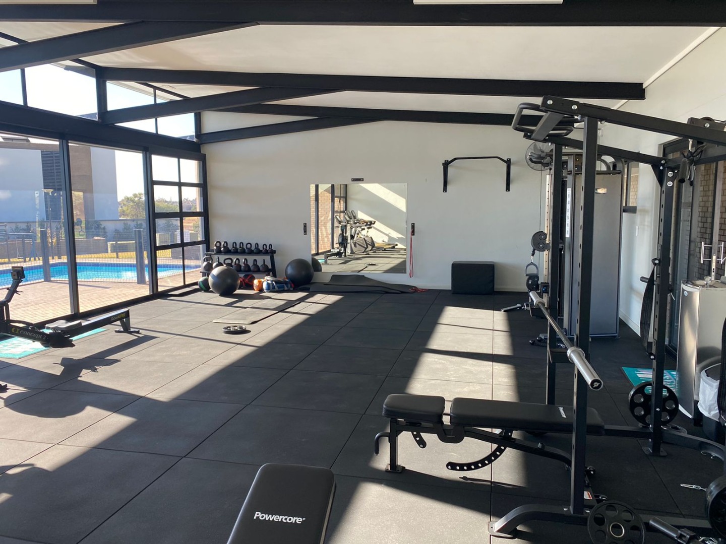 Gymnasium with 20 meter lap pool, volleyball court and entertainment area