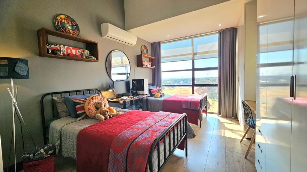 Modern 2-bedroom, corner penthouse, available in the safe and secure Ascend to Midstream. Spread across two levels, this apartment features floor-to-ceiling windows that allows natural light to full the interior. Open plan living and dining leads out to your private balcony with a built in gas braai. The kitchen is modern with a gas hob, electric oven and plenty of cupboard space. The scullery is well designed and has space for three appliances. Also on this level is your main bedroom with en suite bathroom. A guest toilet is thoughtfully placed for guests convenience. Up the stairs you will find a loft area with lounge and built in cabinetry with a prep bowl. Sliding doors will lead you out to another private balcony, overlooking the golf course. Your second bedroom with its en suite bathroom is also on this level.