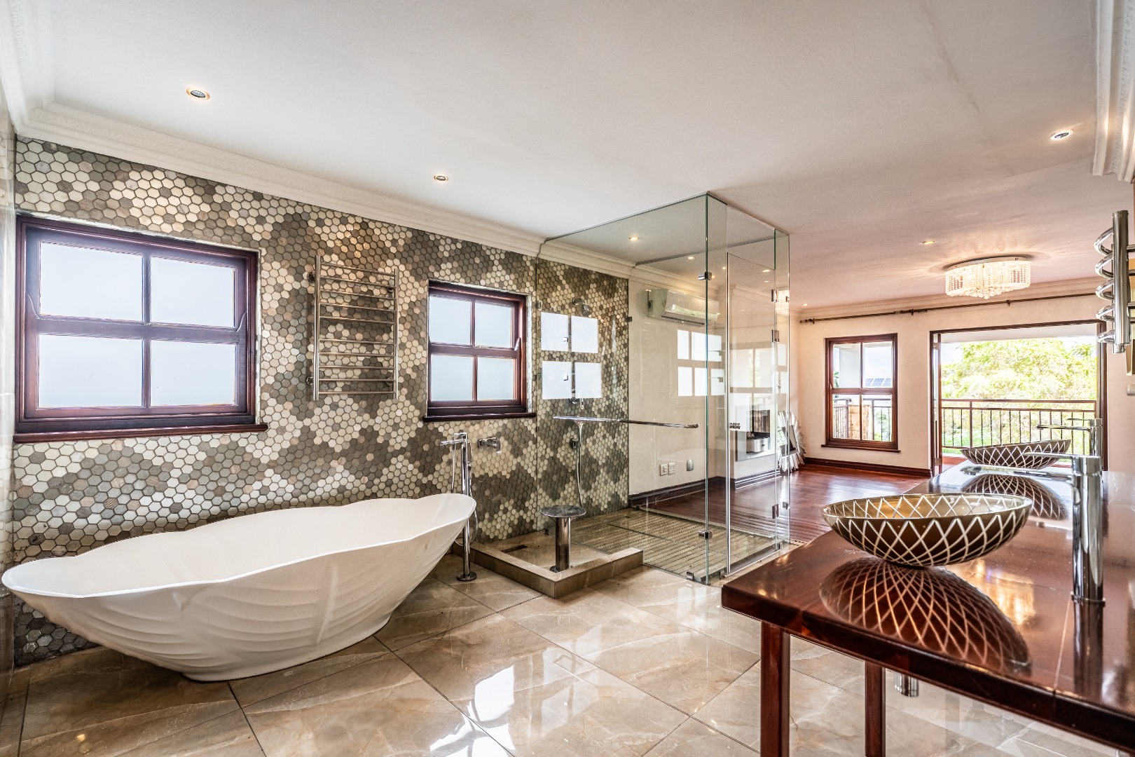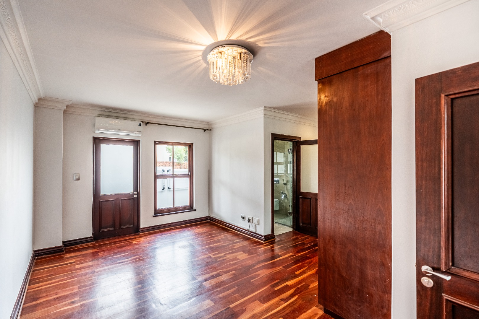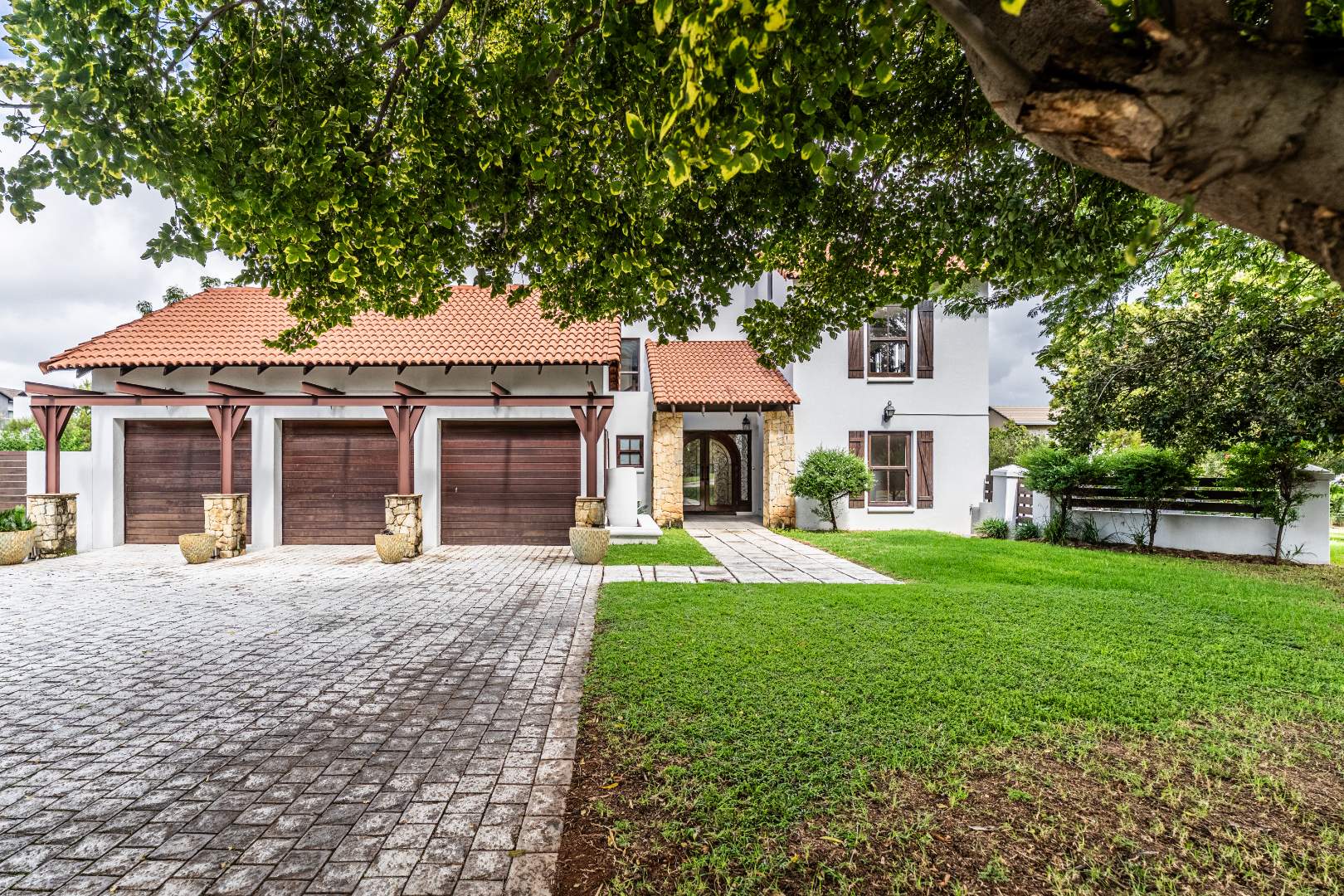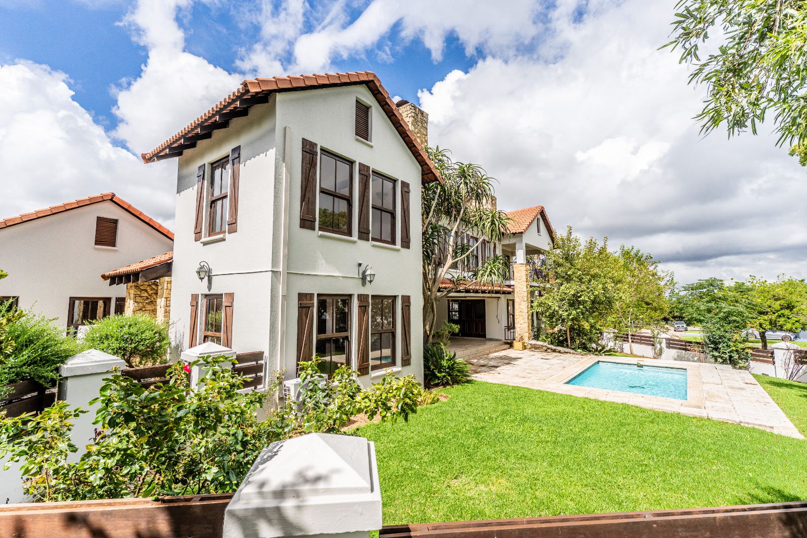 The kitchen is spacious and uniquely crafted with ample working space and a separate scullery, offering both beauty and functionality for everyday living as well as larger gatherings. Downstairs, a dedicated TV room, or office, offers valuable flexibility for families with varied needs, while upstairs another additional room can serve as a nursery, study or private workspace. Every bedroom in the home has it's own ensuite bathroom.The main bedroom is a true sanctuary with ample cupboards in a dressing room and a private balcony that overlooks the peaceful surroundings, creating the perfect retreat at the start and end of each day.