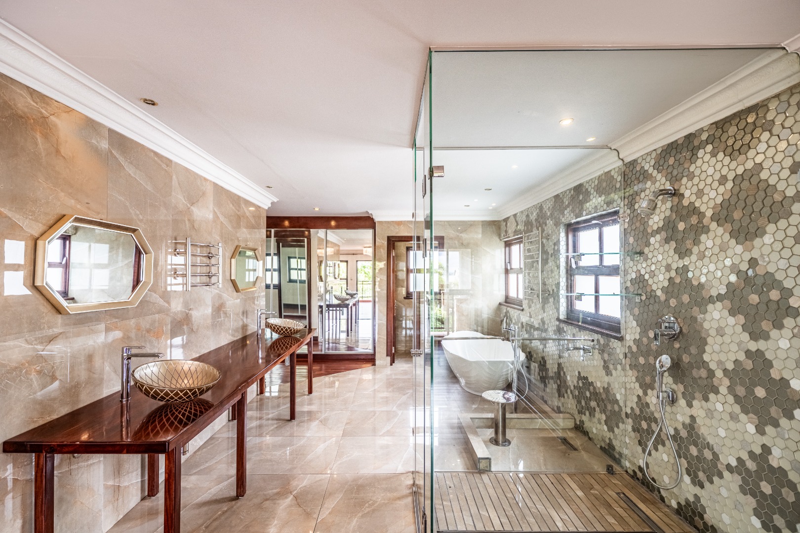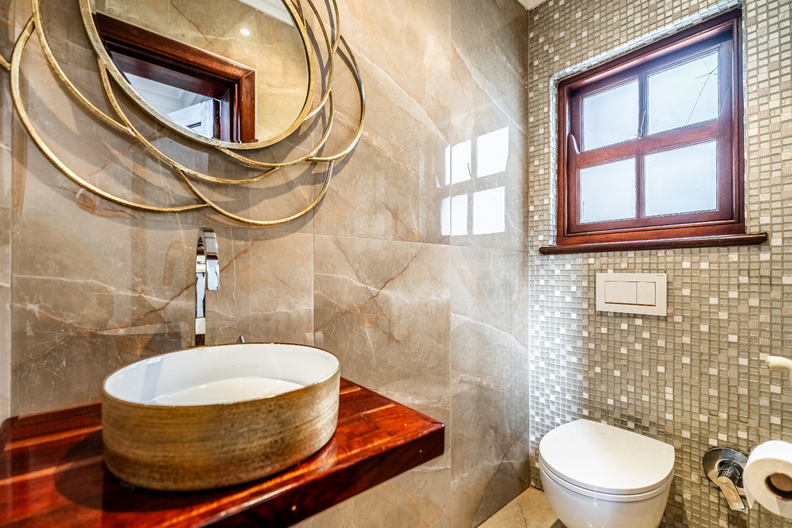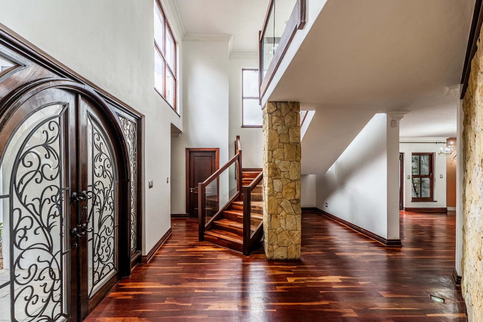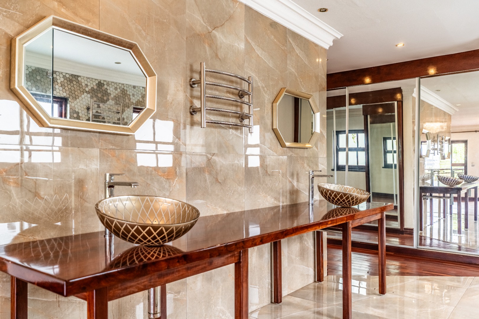 The kitchen is spacious and uniquely crafted with ample working space and a separate scullery, offering both beauty and functionality for everyday living as well as larger gatherings. Downstairs, a dedicated TV room, or office, offers valuable flexibility for families with varied needs, while upstairs another additional room can serve as a nursery, study or private workspace. Every bedroom in the home has it's own ensuite bathroom.The main bedroom is a true sanctuary with ample cupboards in a dressing room and a private balcony that overlooks the peaceful surroundings, creating the perfect retreat at the start and end of each day.