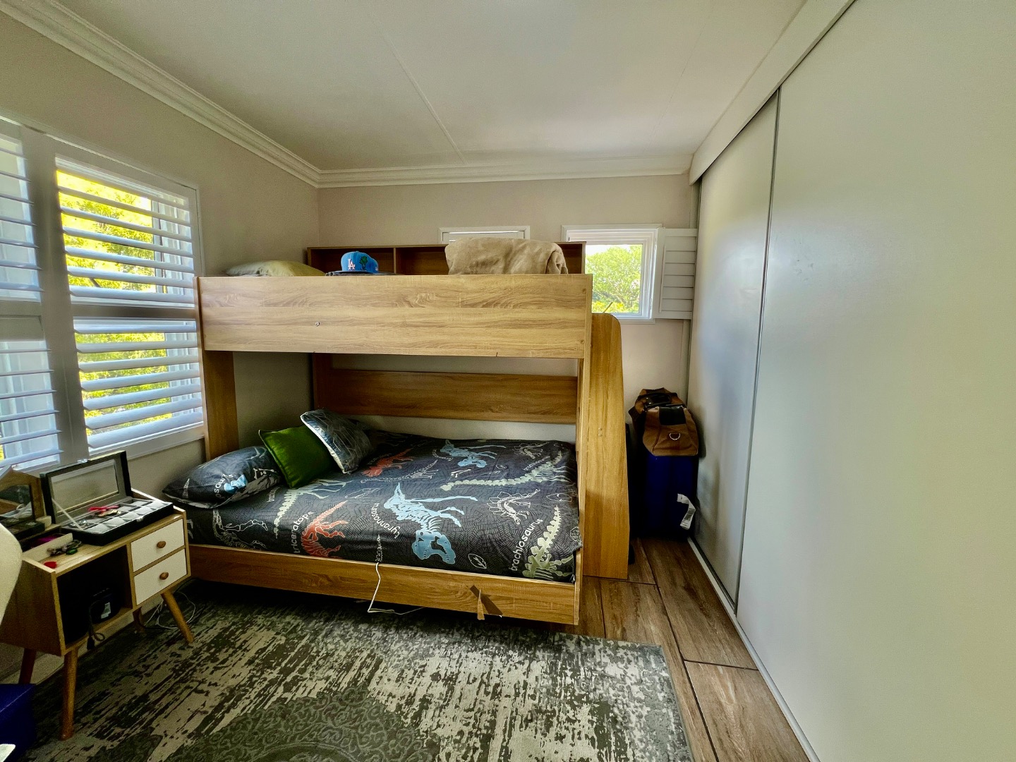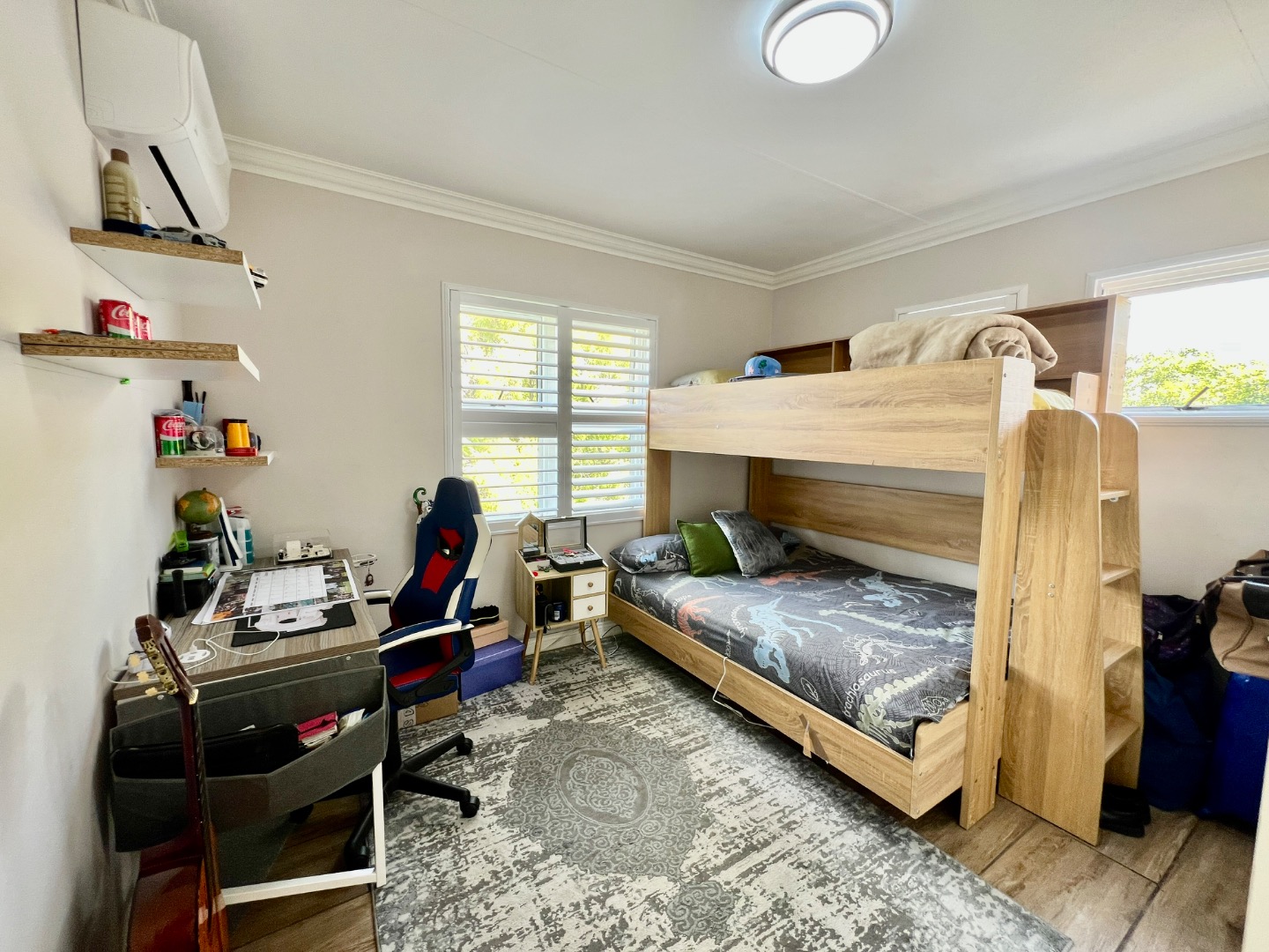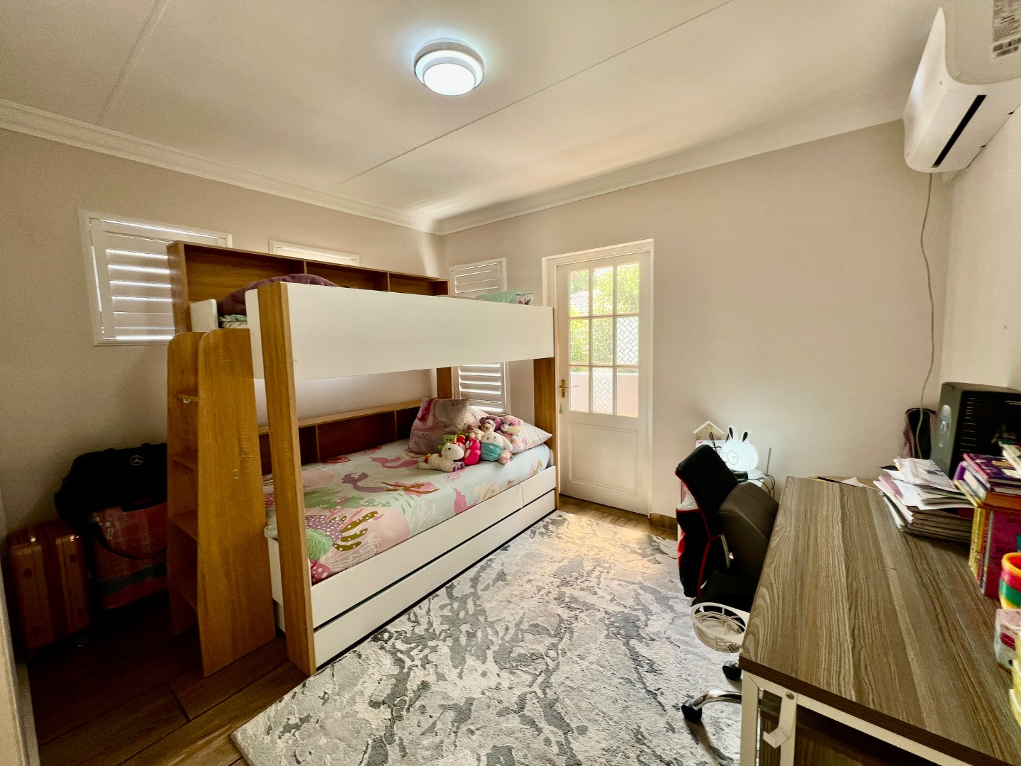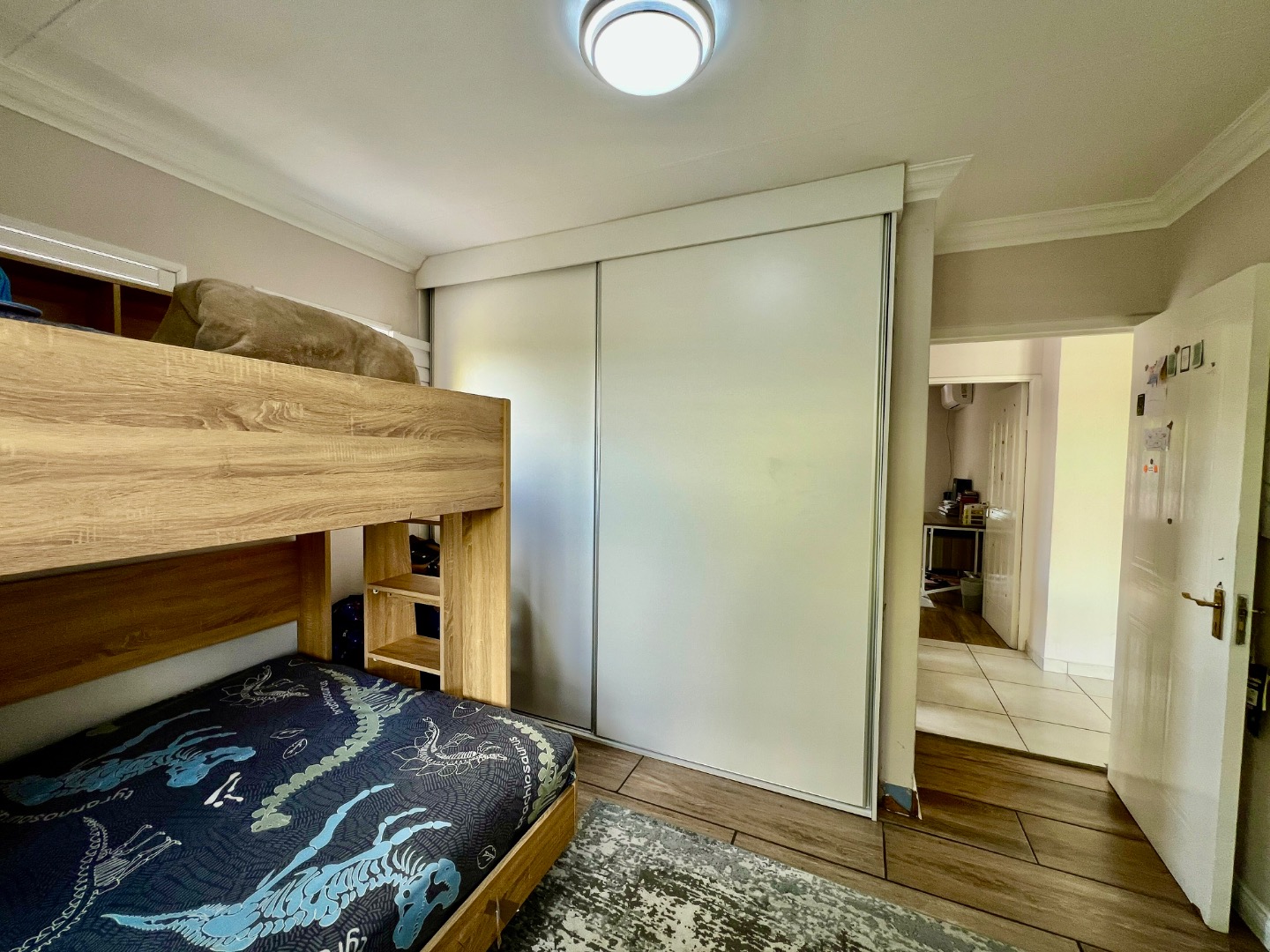 • Bedroom 2 & 3 (Upstairs): Both feature sliding wardrobes and air conditioning. Bedroom 2 mirrors the master’s flooring, while Bedroom 3 offers a private small balcony.