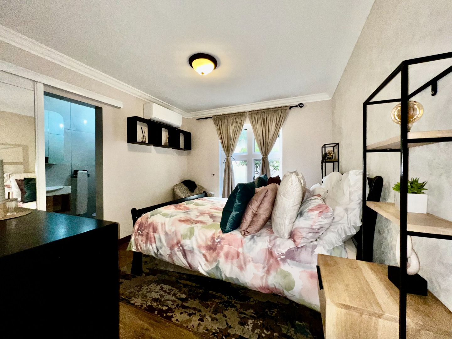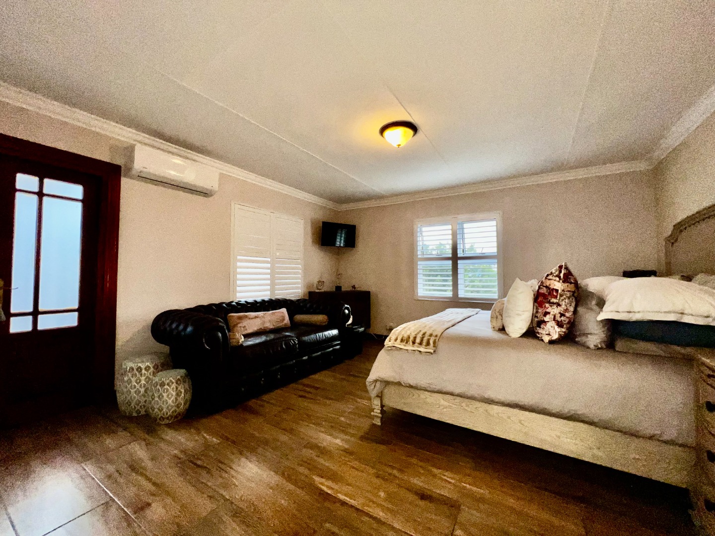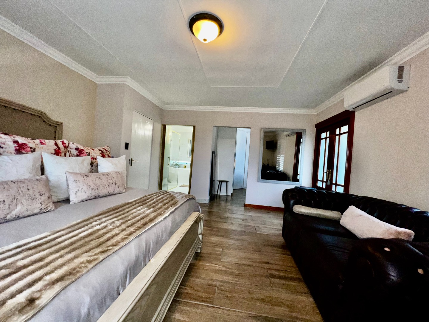 - Guest Suite (Downstairs): Conveniently located with a mix of tile and wooden flooring, air conditioning, and a private ensuite bathroom.