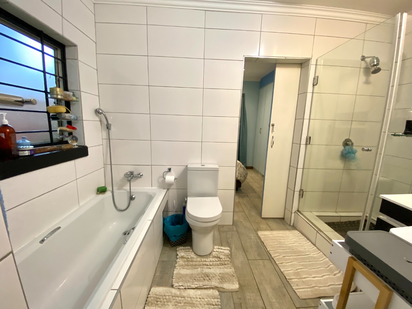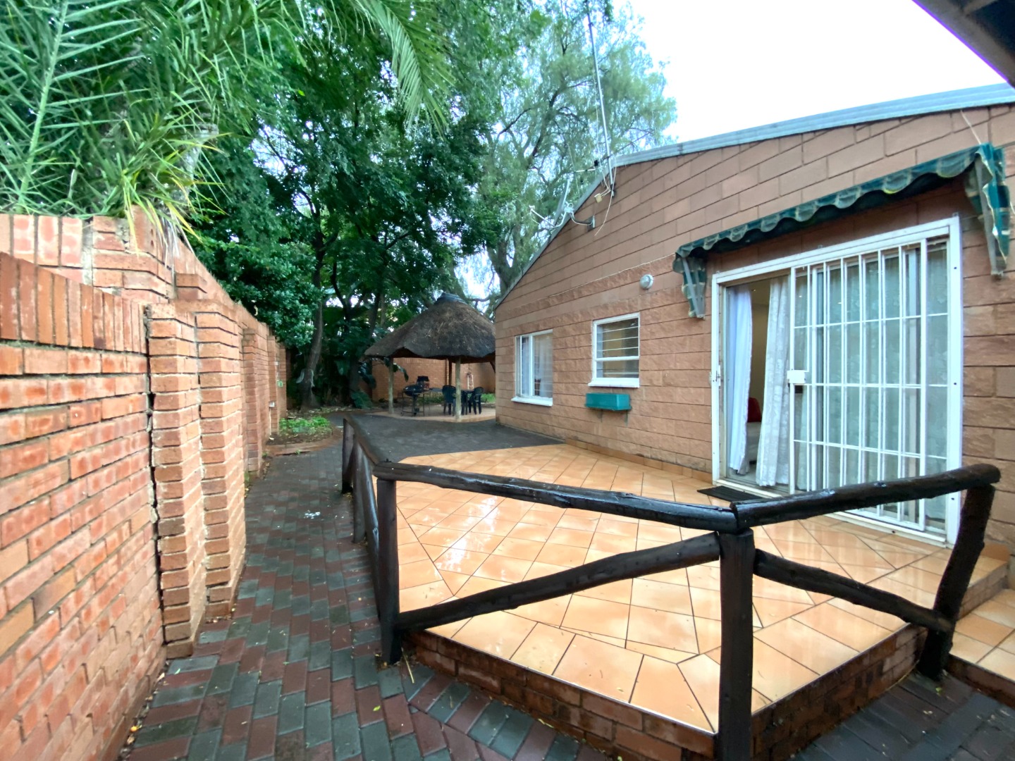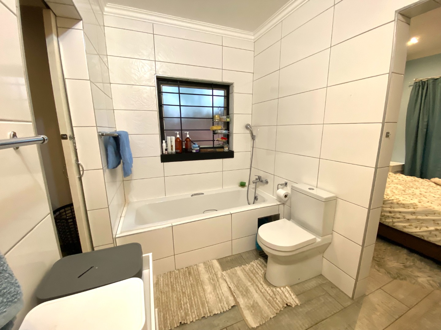 Step outside to an open patio overlooking a large, beautifully maintained garden, ideal for outdoor entertaining or peaceful afternoons under the lapa. The home includes a full shared bathroom and offers an ideal balance of modern comfort and functional design.