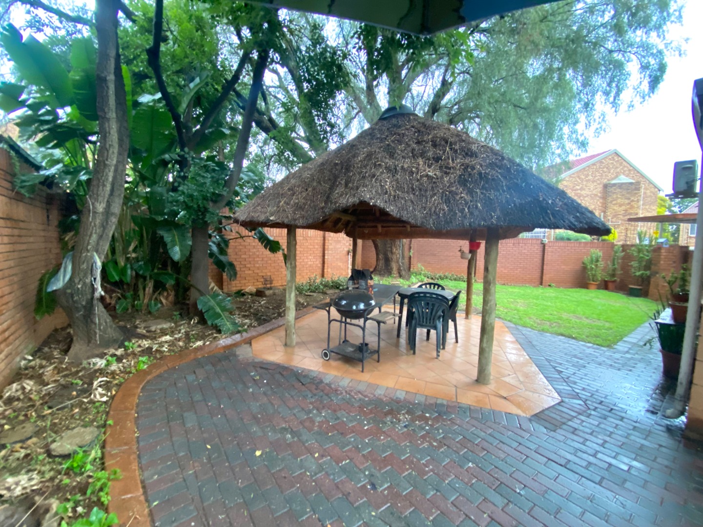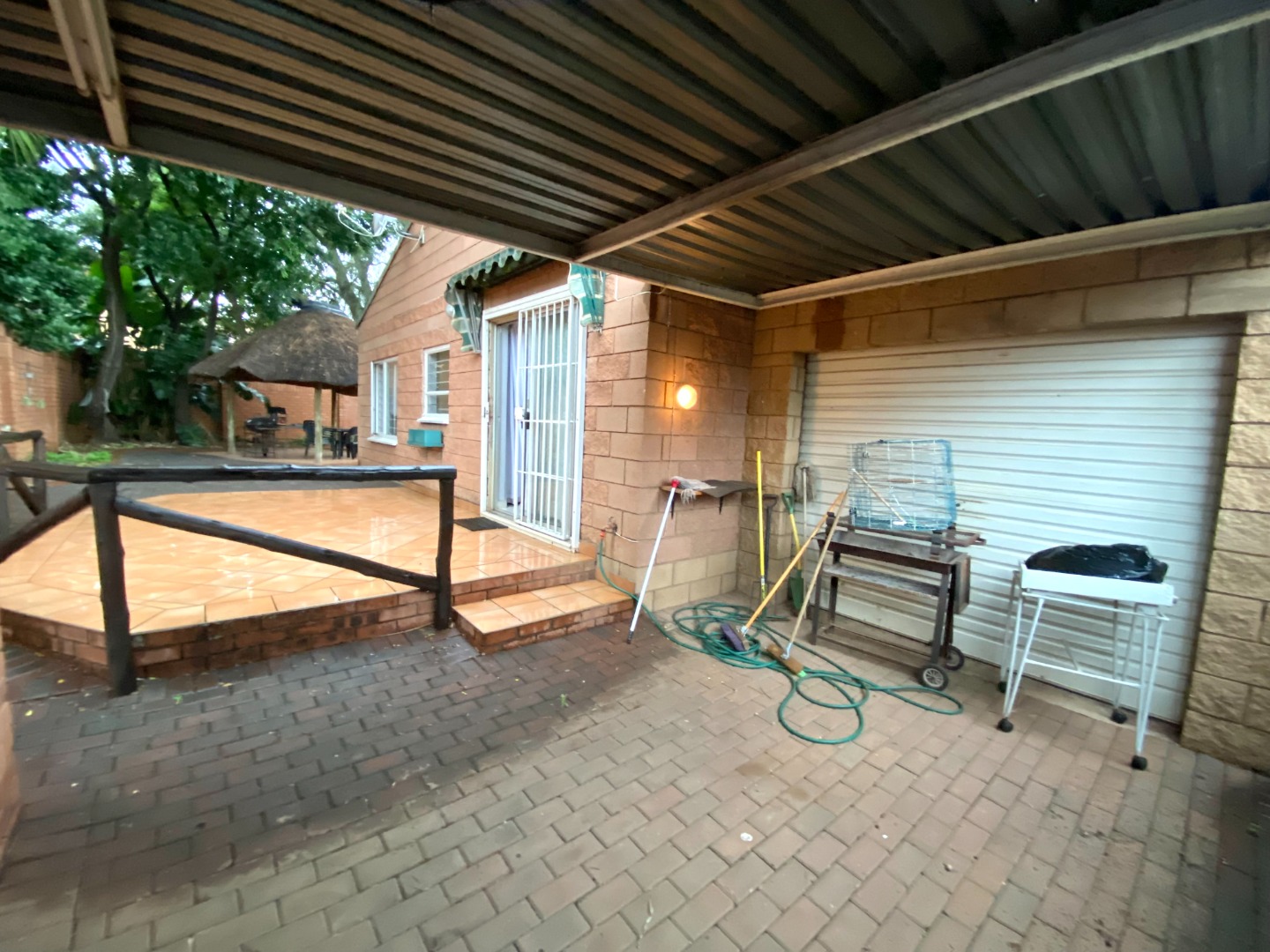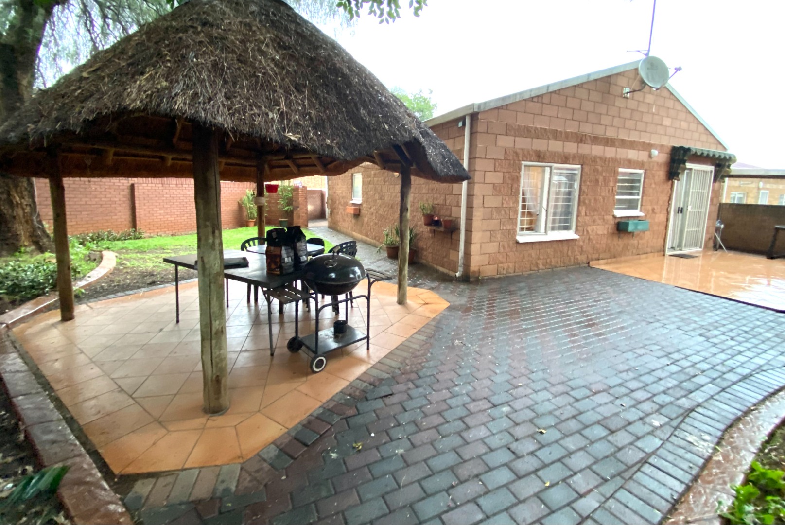 Step outside to an open patio overlooking a large, beautifully maintained garden, ideal for outdoor entertaining or peaceful afternoons under the lapa. The home includes a full shared bathroom and offers an ideal balance of modern comfort and functional design.