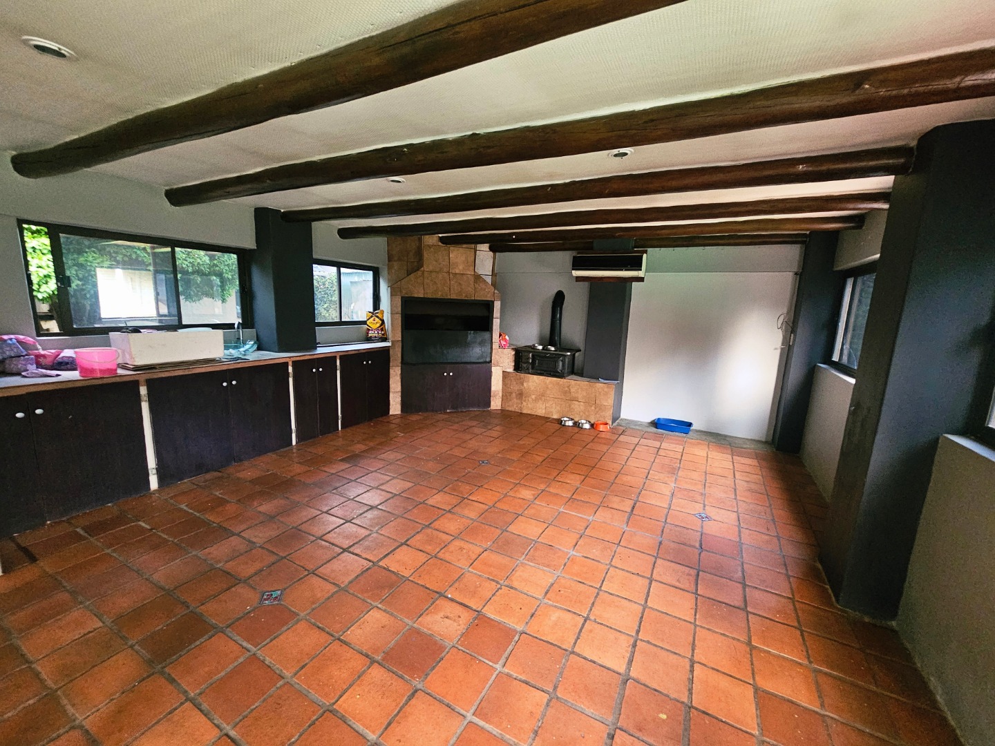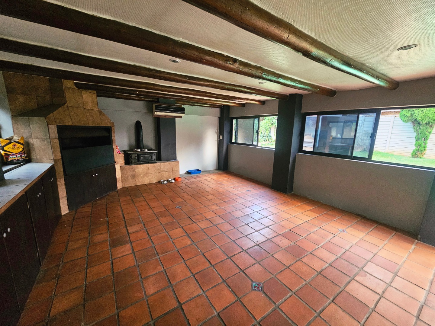- A spectacular, massive enclosed patio with fold-up doors and windows, featuring a built-in braai. It opens onto the back garden and pool, creating an inviting indoor-outdoor space for gatherings year-round.