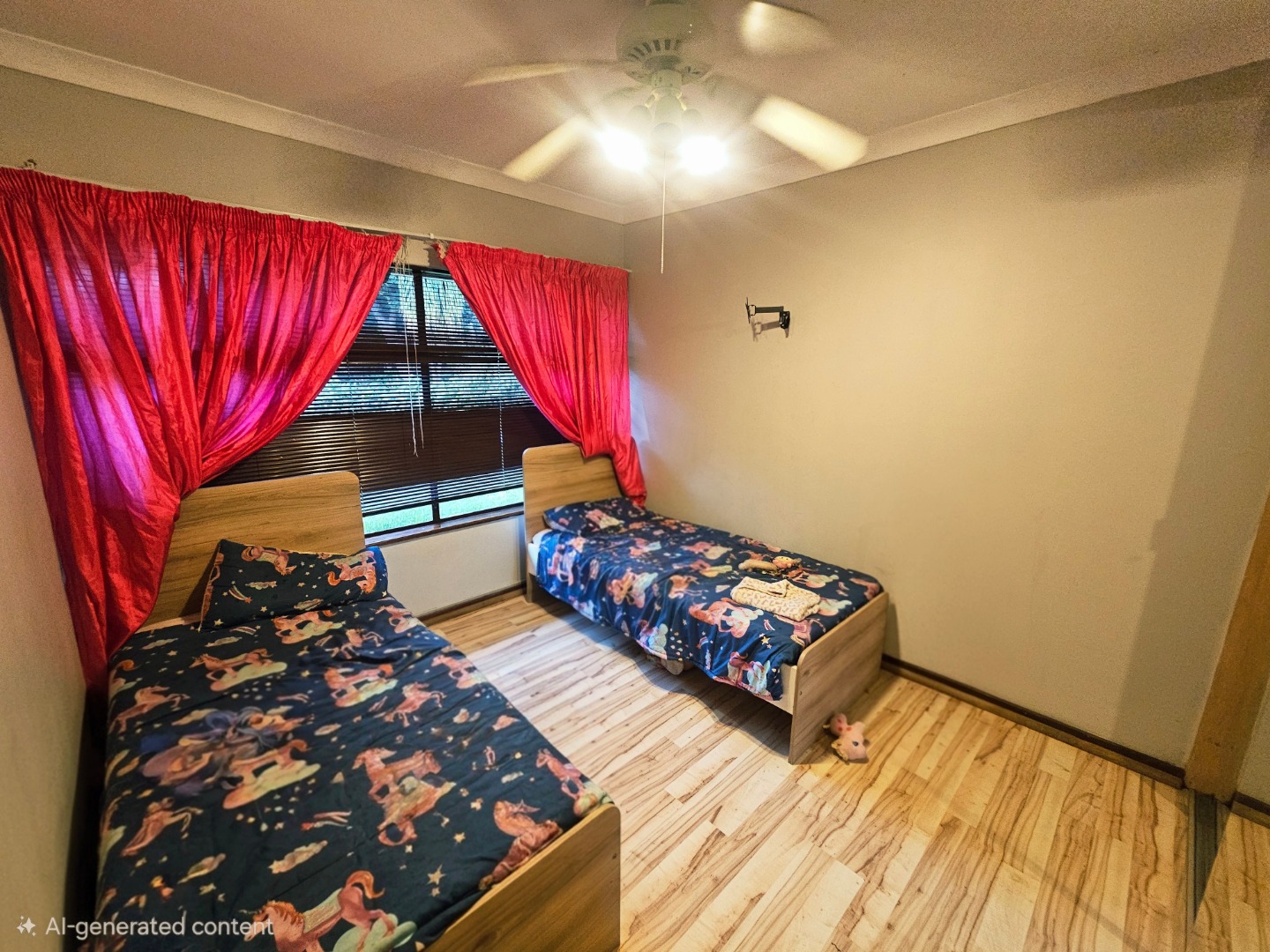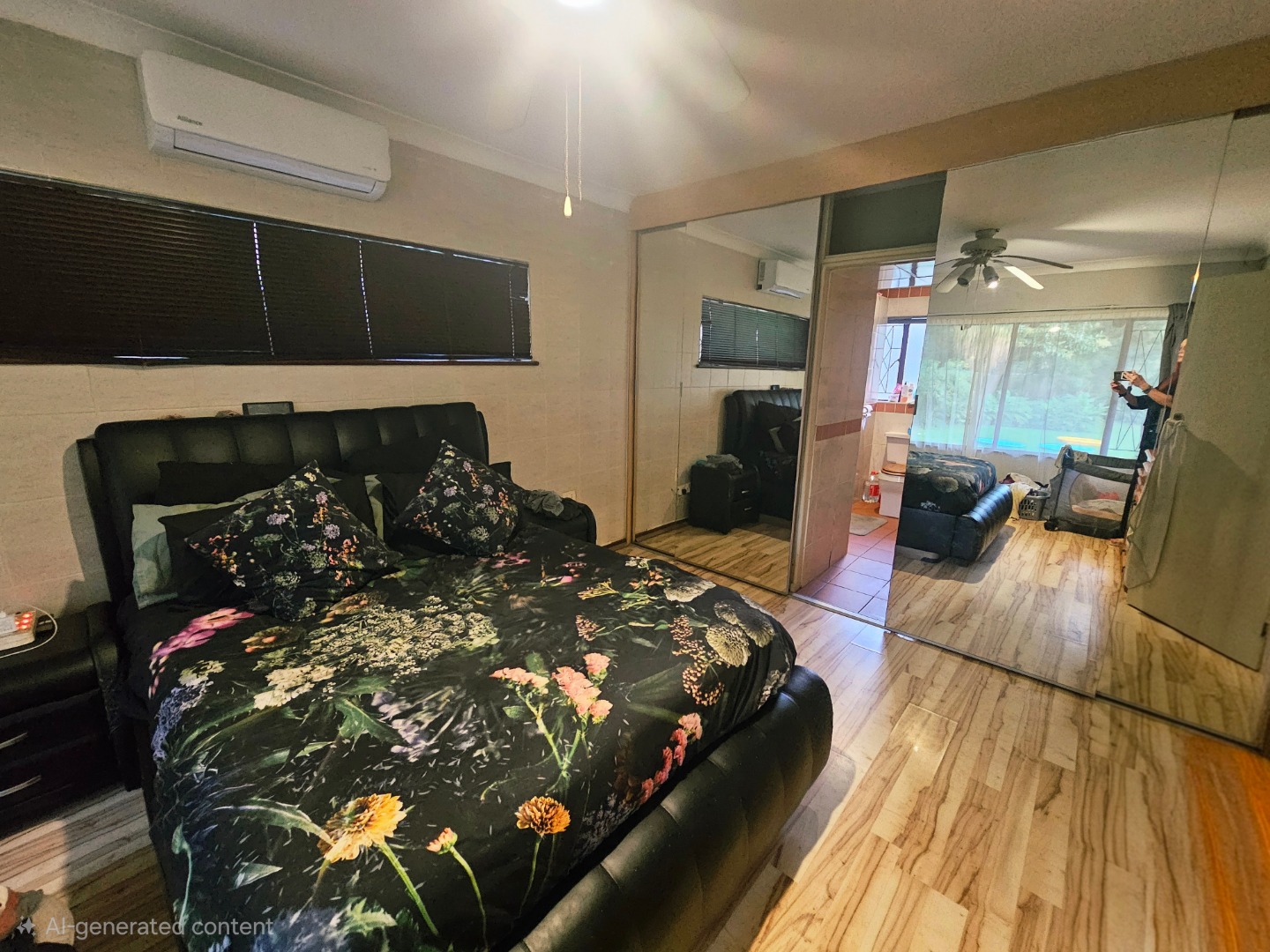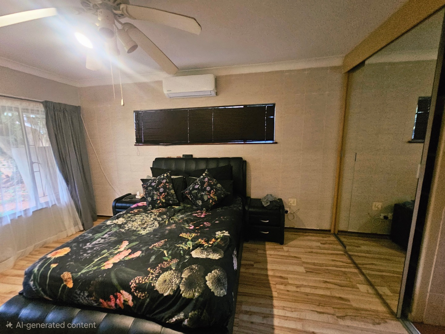 - Three spacious bedrooms with beautiful wooden floors and ceiling fans; the main bedroom also boasts air conditioning to keep you cool on hot days.