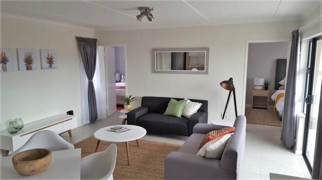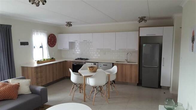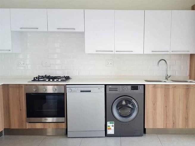 Discover modern living in this inviting 2-bedroom, 1-bathroom apartment located within a sought-after security estate in Centurion. The residence boasts a contemporary open-plan design, seamlessly connecting the living area with a stylish kitchen. The kitchen features sleek white and wood-look cabinetry, integrated appliances including a built-in oven, gas hob, dishwasher, and washing machine, complemented by a chic subway tile backsplash. Natural light floods the space, enhancing the neutral colour palette and modern tile flooring throughout. Enjoy comfortable living with air conditioning for climate control and a dedicated family TV room for relaxation. The main living area extends to a private balcony, offering a pleasant outdoor space and scenic views. This apartment is ideal for professionals or small families seeking a convenient and secure lock-up-and-go lifestyle within a vibrant community. The well-appointed bathroom offers both a bathtub and a separate glass-enclosed shower for ultimate comfort. Residents benefit from exceptional security features, including 24-hour security, electric fencing, security gates, and controlled access within the secure estate. For added peace of mind and uninterrupted living, the property is equipped with a battery inverter. The estate also provides access to a clubhouse and a communal braai area, fostering a sense of community and offering recreational opportunities right on your doorstep. Situated in Centurion, Golden Fields Estate offers a prime location with easy access to local amenities, major transport routes, and various lifestyle attractions, making it a highly desirable address in South Africa.