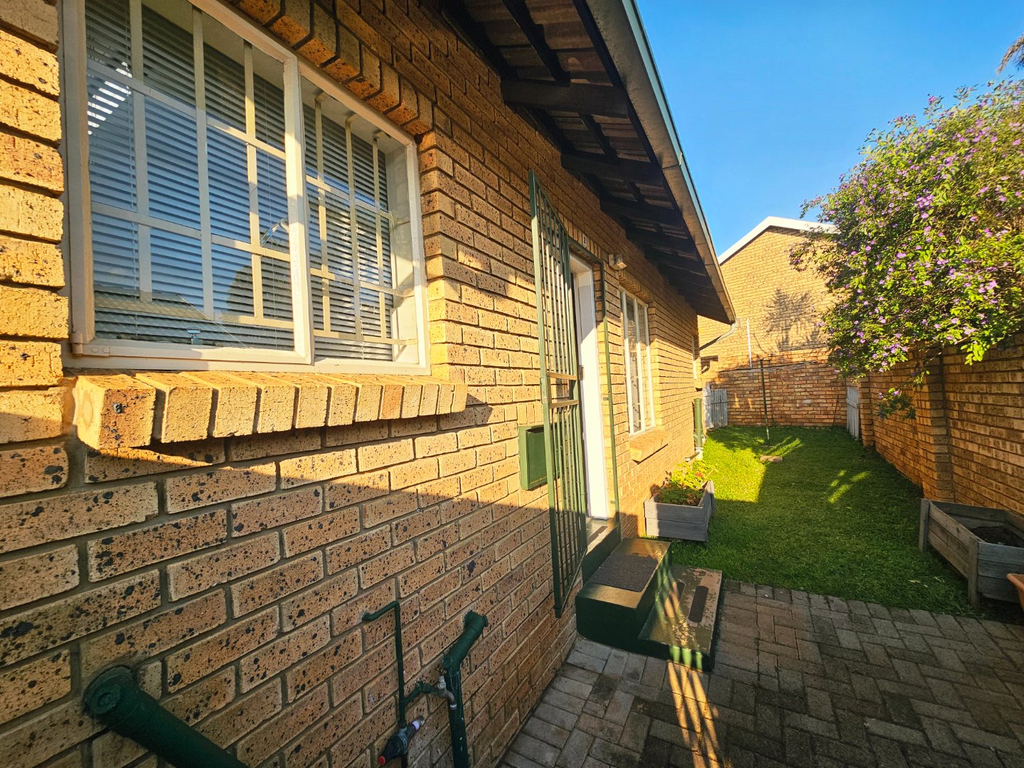 Very Cozy 2 Bedroom Townhouse, with a lovely spacious full bathroom. The unit has a good sized kitchen. The unit has a separate dinning room and TV room that walks out onto a lovely patio, build in braai, with wrap around private garden. This allows for a really comfortable layout to set the feeling of security and comfort for the whole family.
