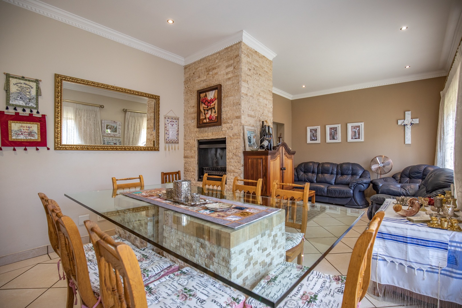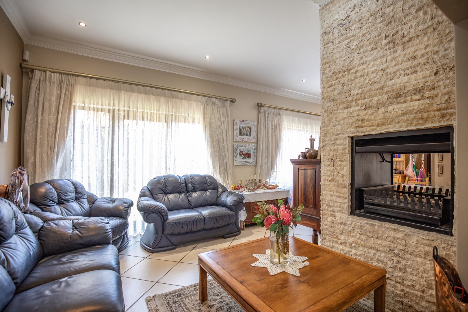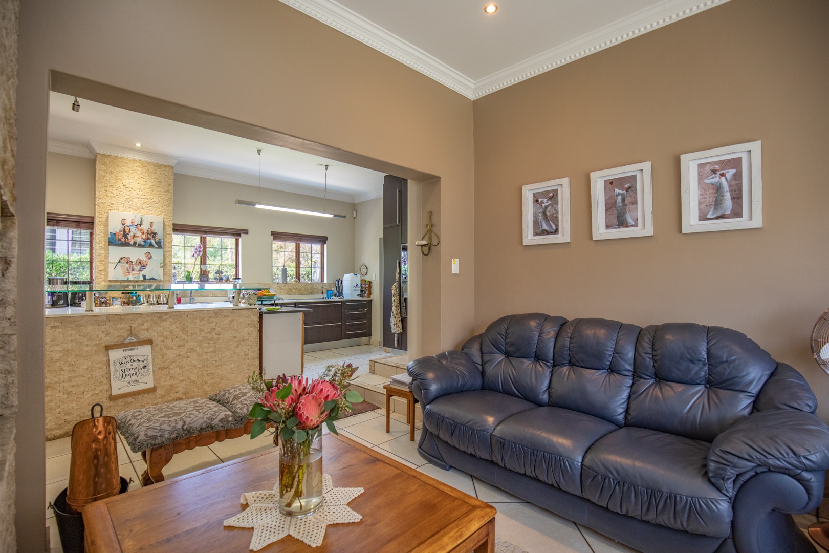 This 4-bedroom, 2,5 bathroom home is situated in one of Centurion’s most ideal settings. Nestled away in an extremely upmarket security estate with close proximity to nearby shopping malls, namely Irene Village Mall, convenience stores and within minutes’ drive to the R21 Highway, the location caters for a sense of convenience, comfort, and peace of mind.