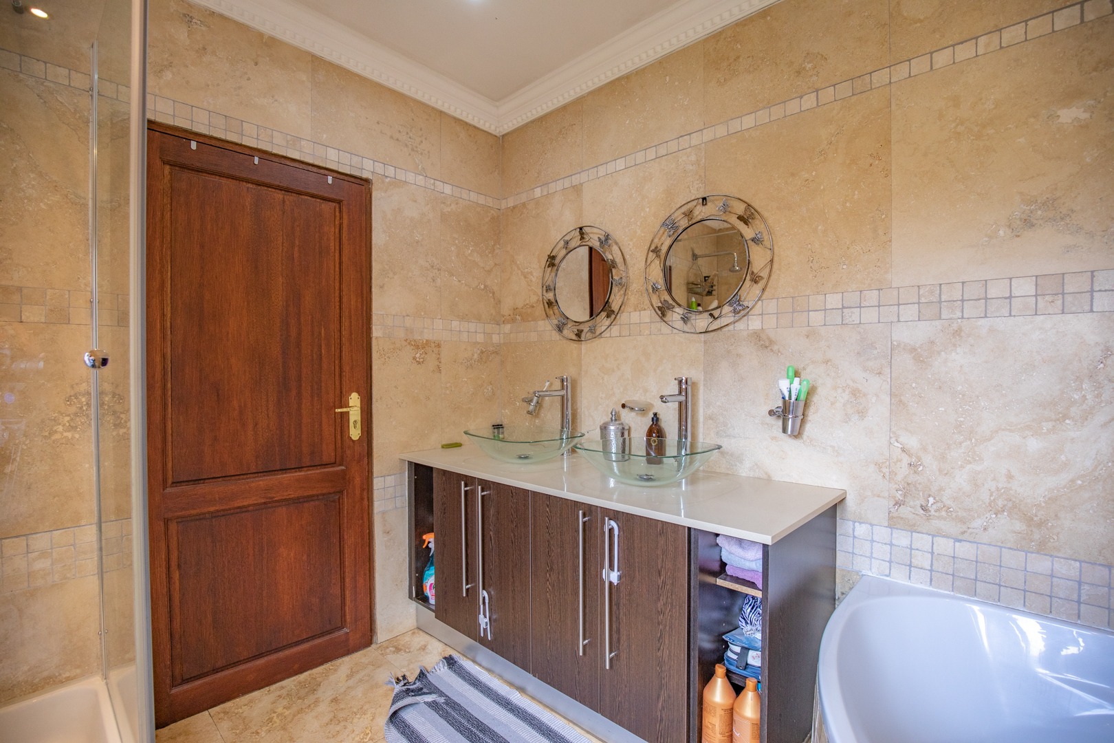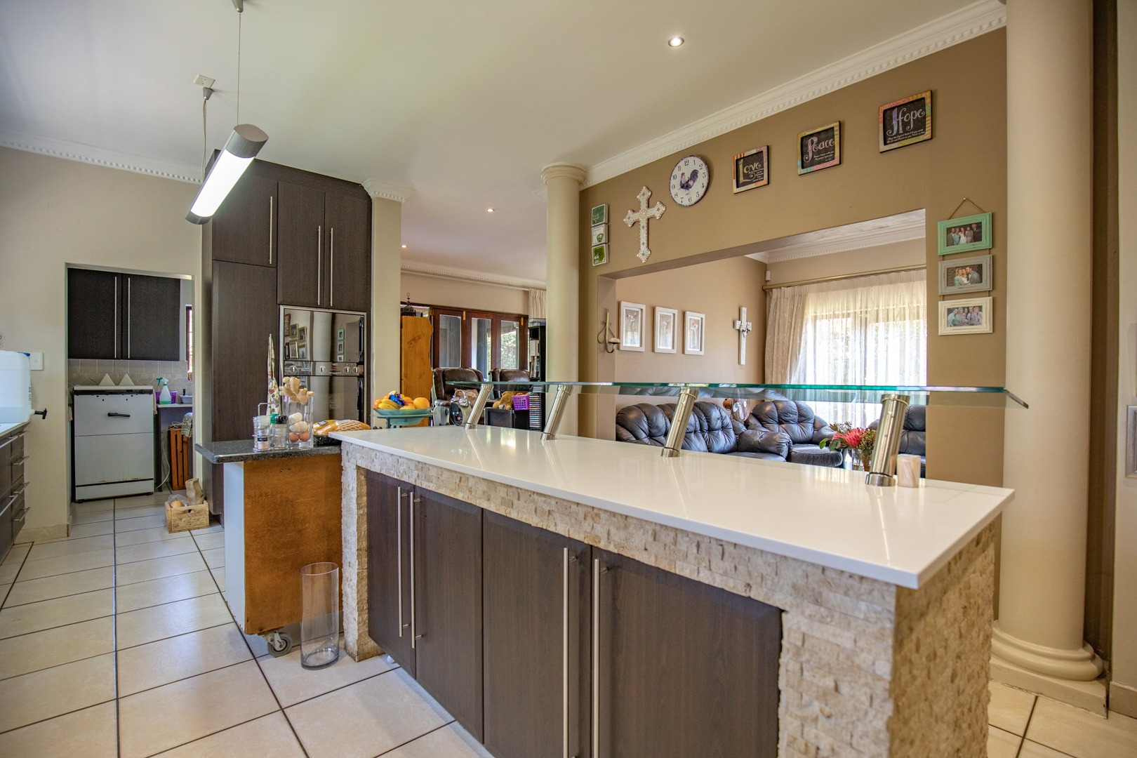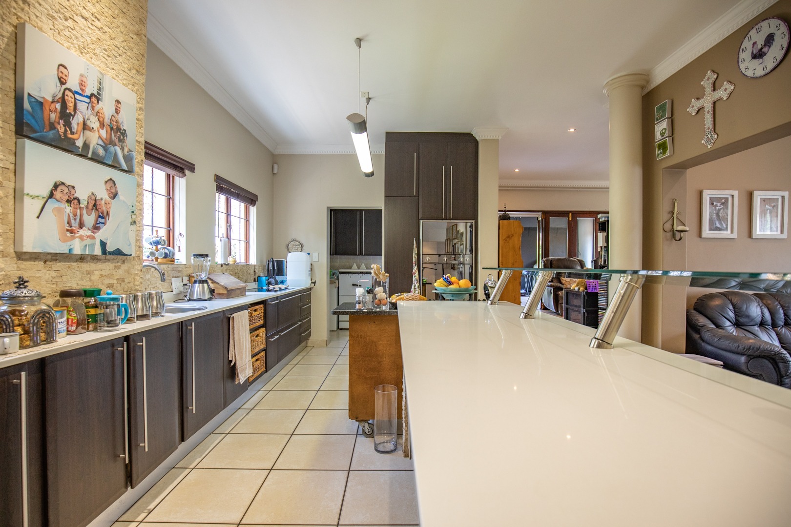 This 4-bedroom, 2,5 bathroom home is situated in one of Centurion’s most ideal settings. Nestled away in an extremely upmarket security estate with close proximity to nearby shopping malls, namely Irene Village Mall, convenience stores and within minutes’ drive to the R21 Highway, the location caters for a sense of convenience, comfort, and peace of mind.