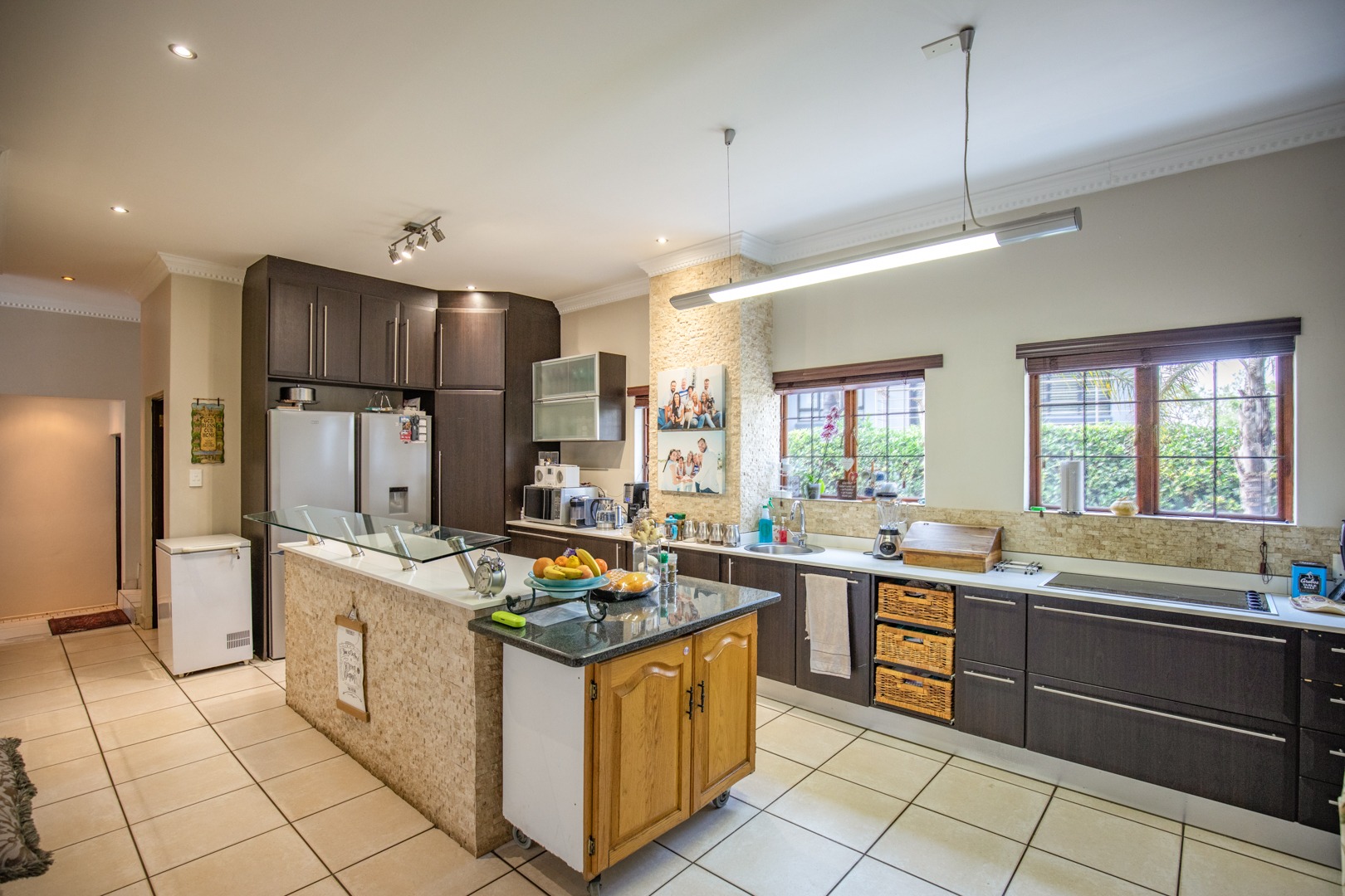 Boasting high-quality, upmarket finishes, this home is perfect for families looking to make incredible memories in a safe, comfortable environment. The downstairs living areas are open plan, offering 2 lounges, guest toilet, dining room, patio, and spacious kitchen kitted out with high-quality finishes. The kitchen is flanked by a separate scullery. The downstairs bedroom could also be used as a study.