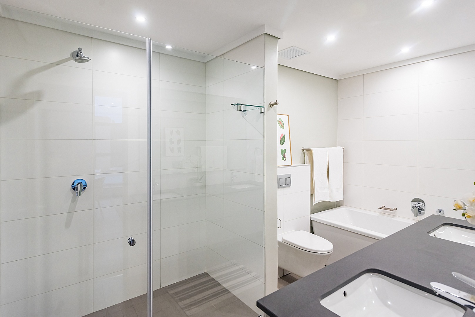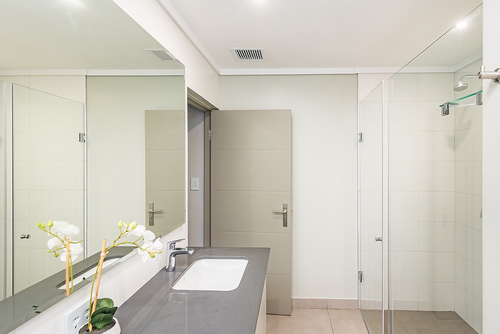 - Neutral, cohesive finishes across all bathrooms create a serene, spa-like vibe.