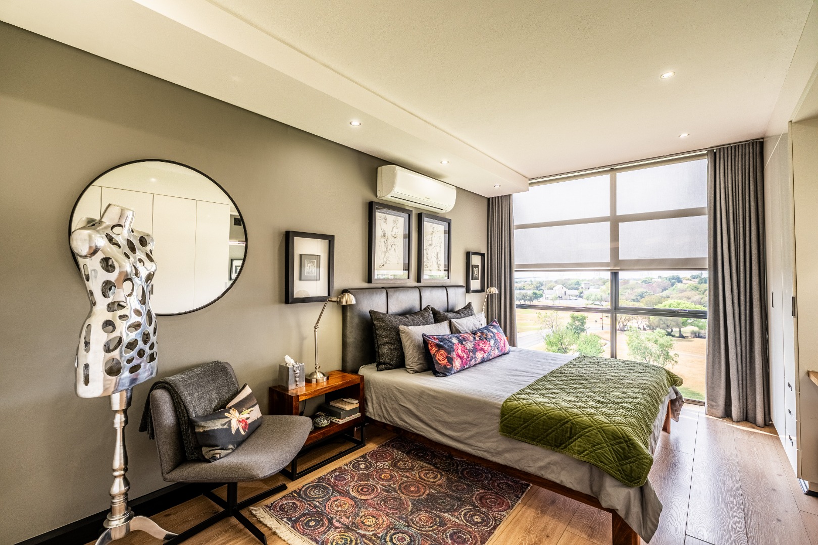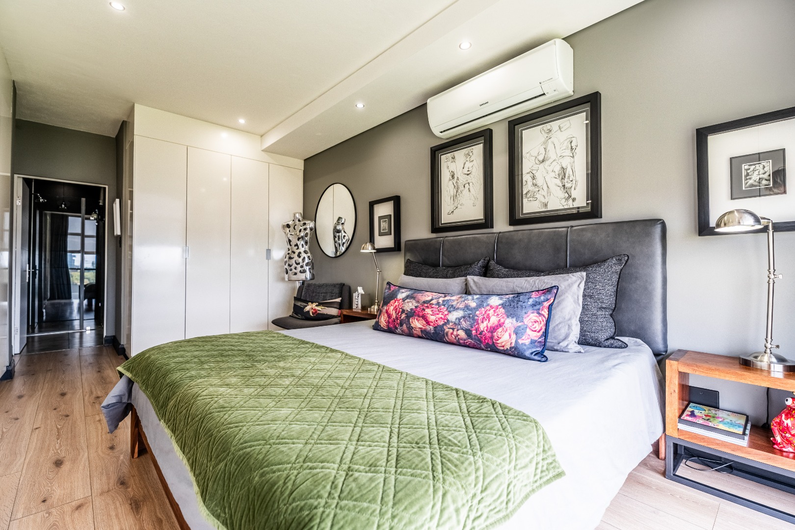 Tranquil main bedroom with air-conditioning, generous cupboards, and full en-suite bathroom