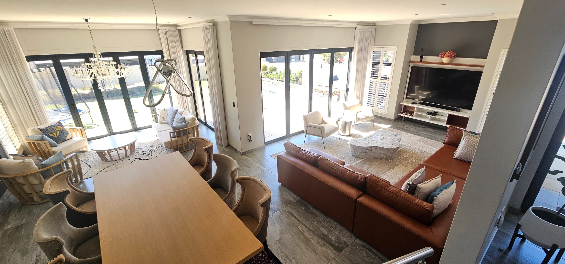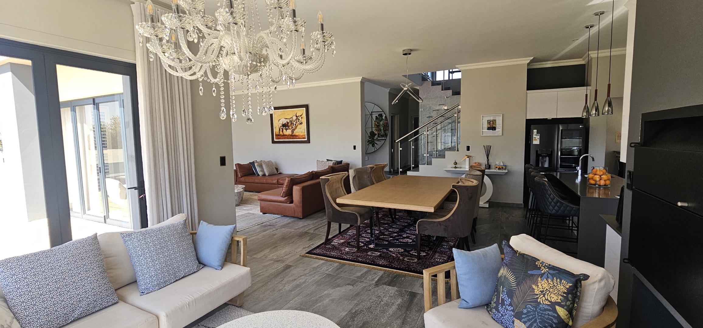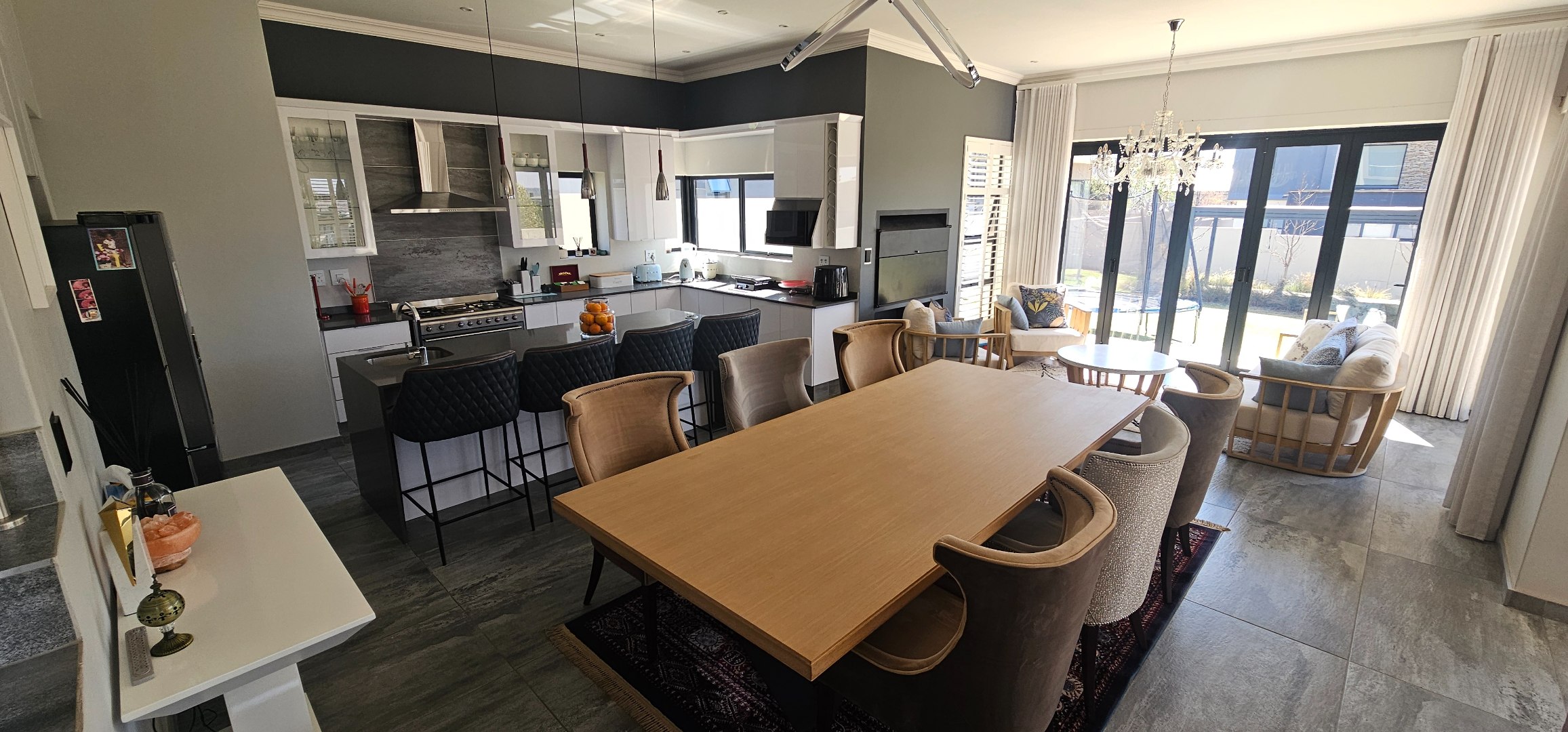 * Entertainment area part of the living spaces, with a built in braai