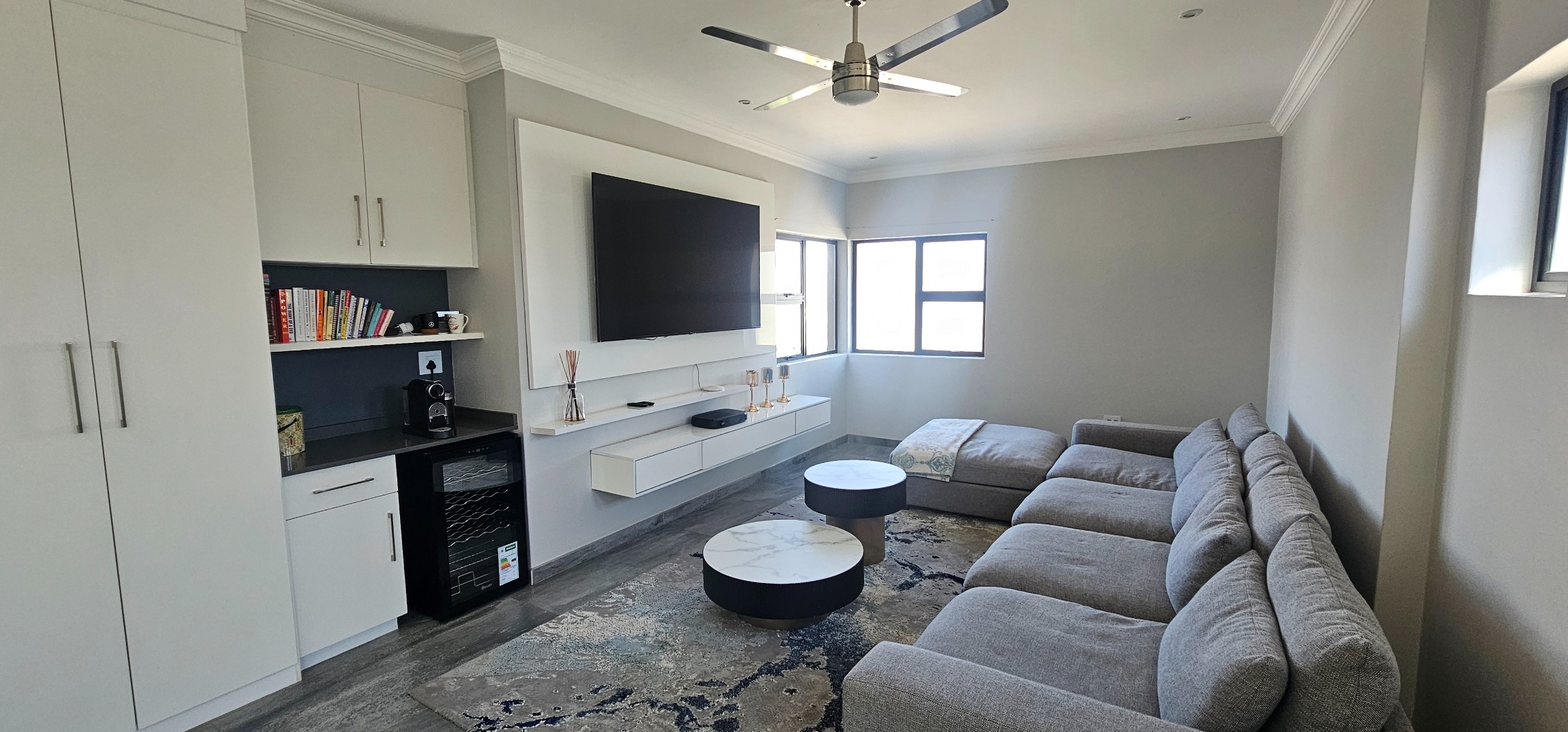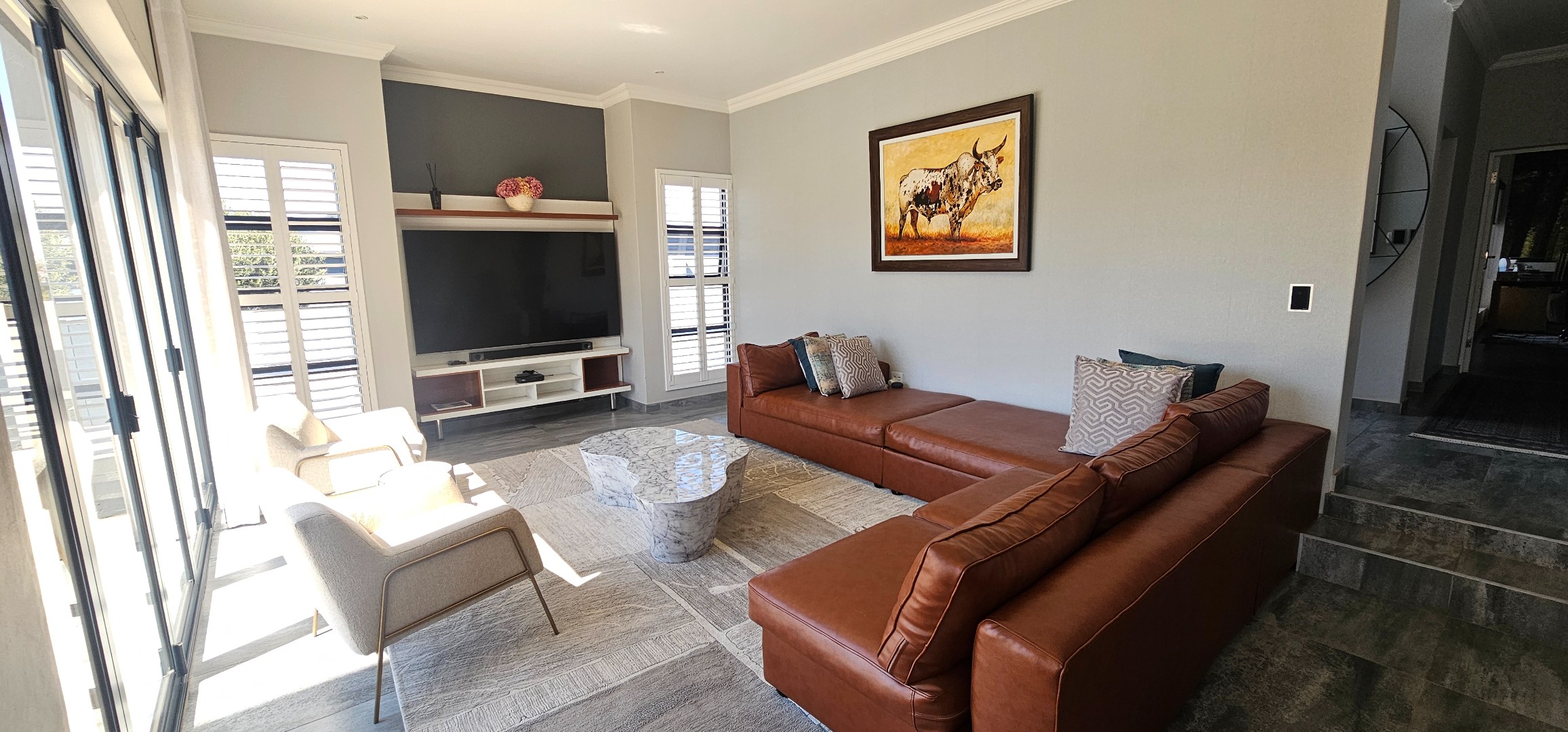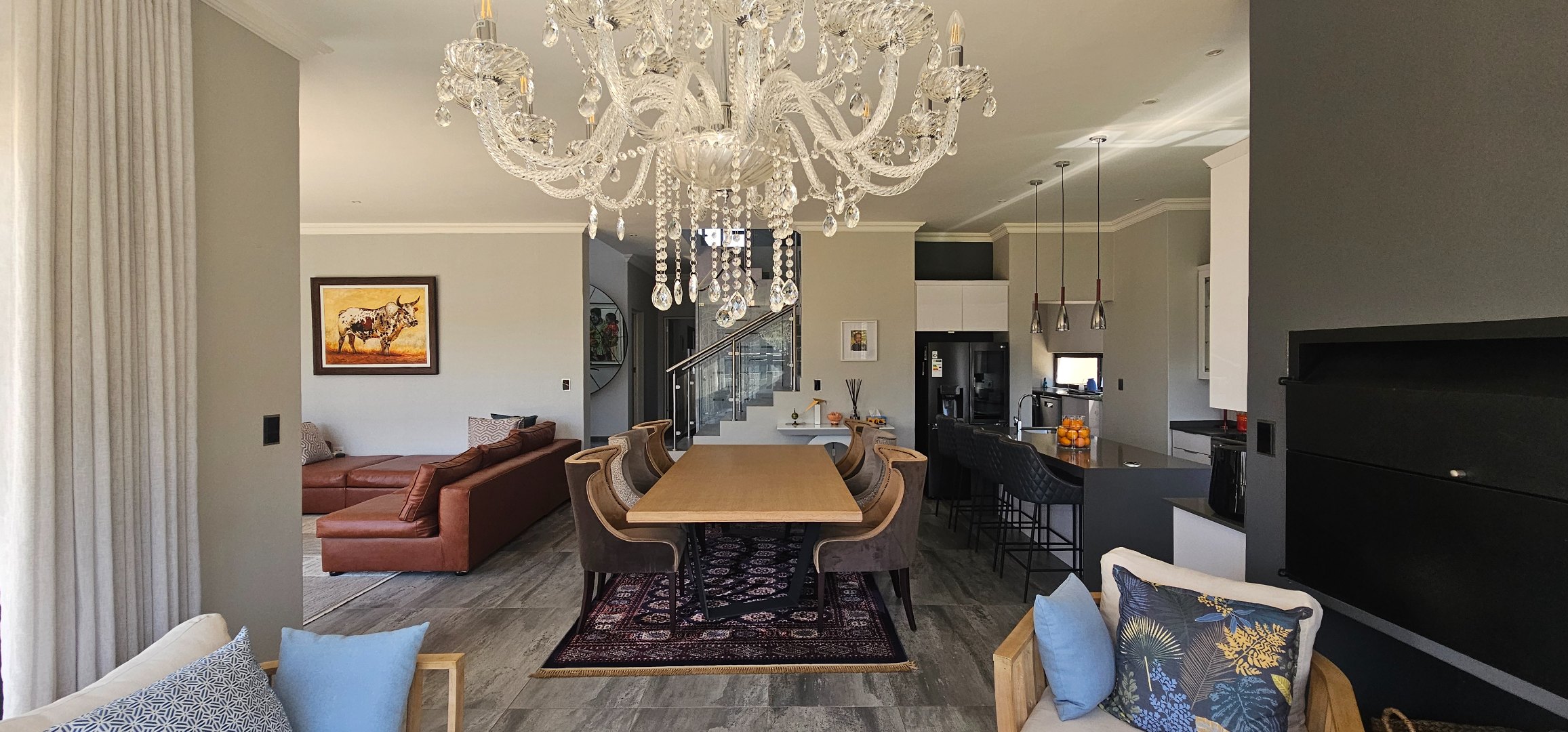 * Entertainment area part of the living spaces, with a built in braai