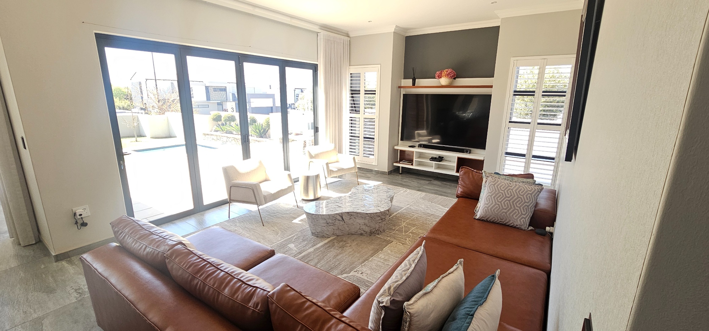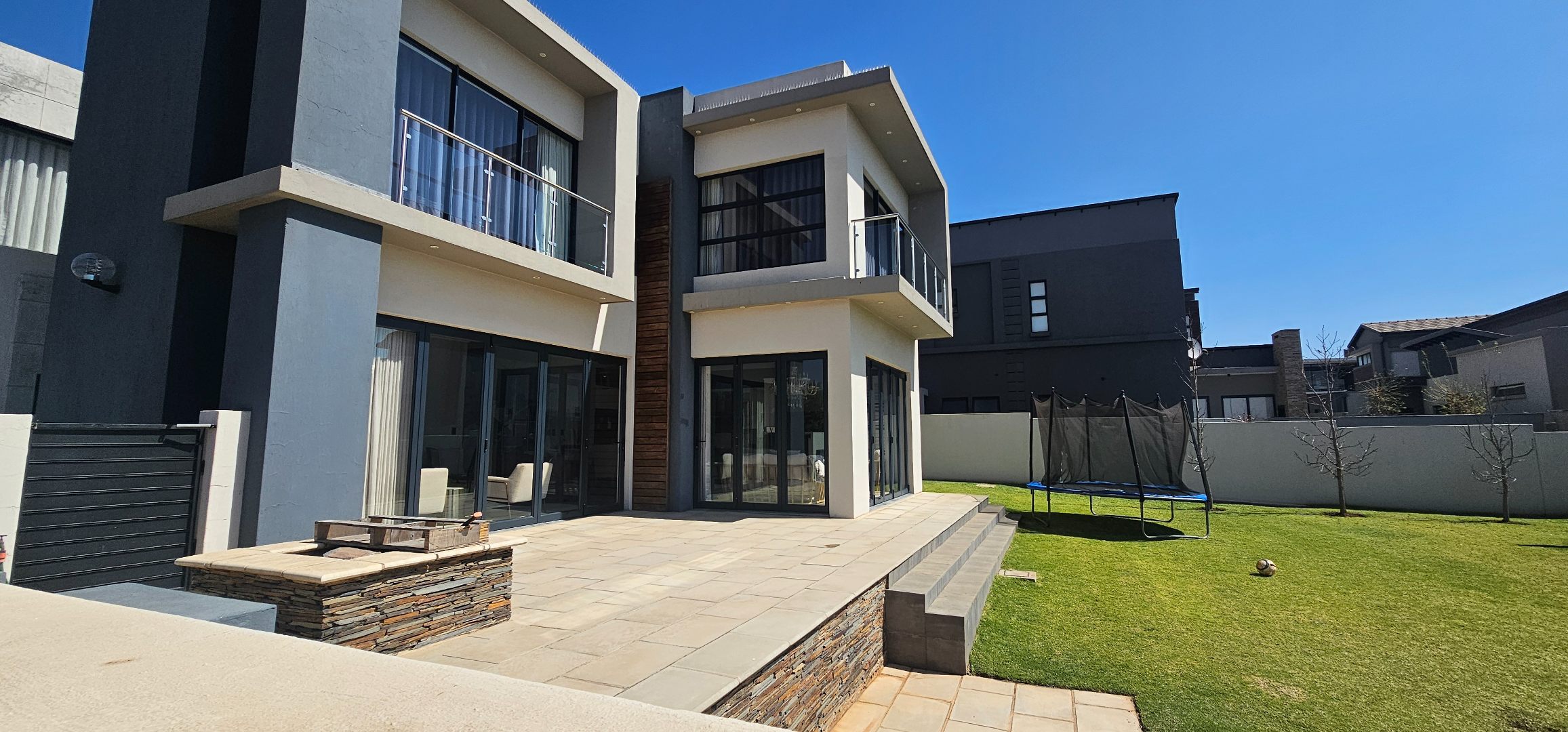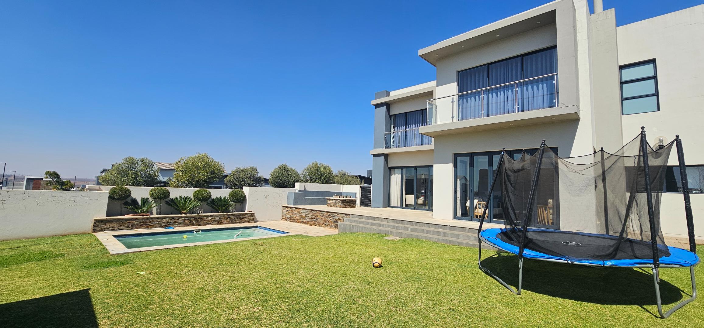 Find this very modern home with its stylish features in the safe and secure Midstream Ridge Estate. Featuring 4 Bedrooms with 4 En Suite bathrooms, Open Plan Living and Dining Spaces, that leads out to your Private Garden, Heated Swimming Pool, Boma and Pergola-seating Area. Make the call today and start your estate living in Midstream Estate.