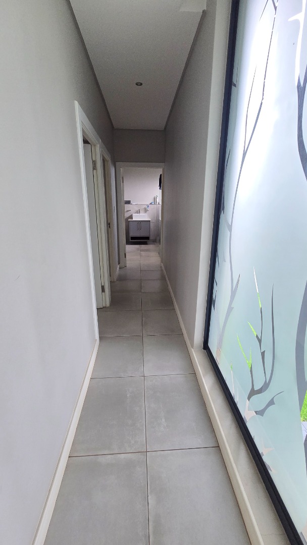 Residents benefit from the comprehensive security features of this eco-estate and gated community, including 24-hour security, a security post, electric fencing, and access control. The estate also provides a clubhouse for community enjoyment. This modern rental is equipped with solar panels and a battery inverter, offering energy efficiency and backup power, alongside fibre connectivity for high-speed internet.