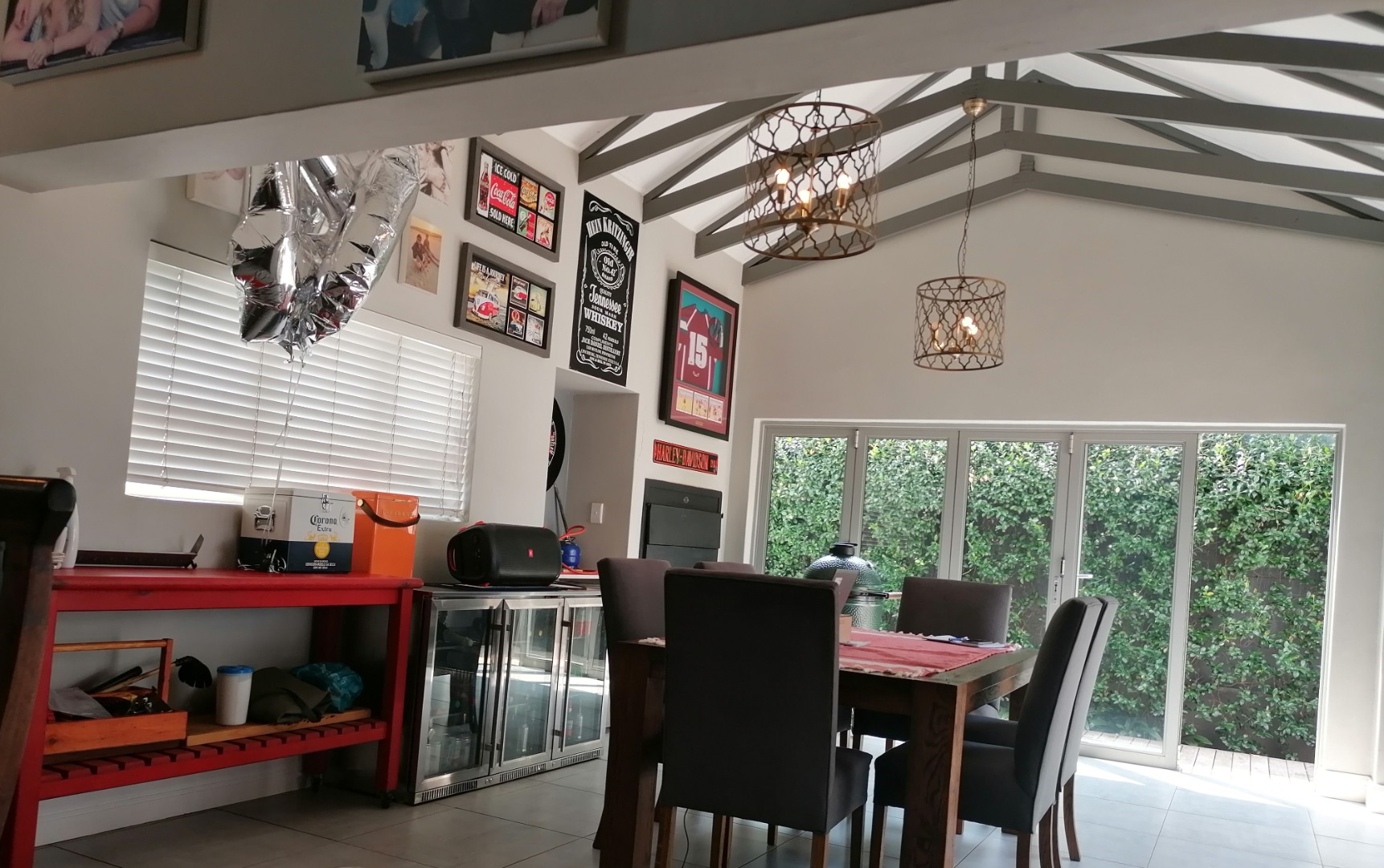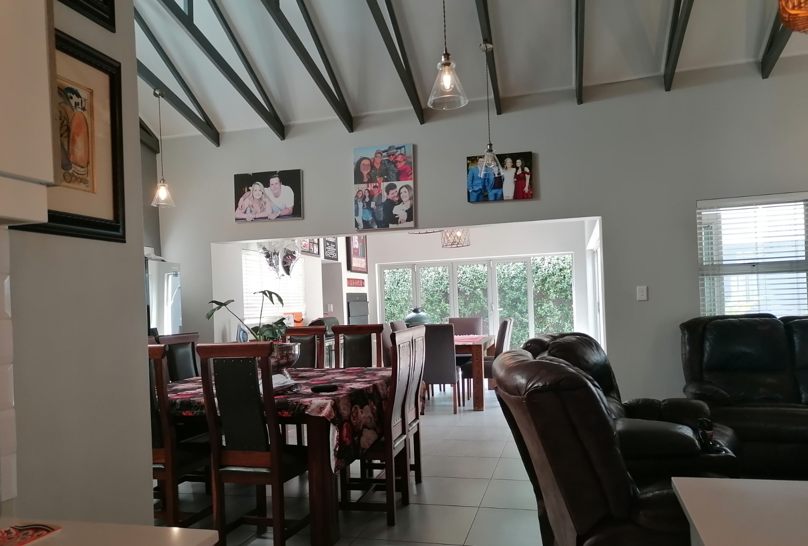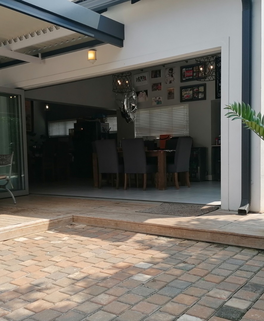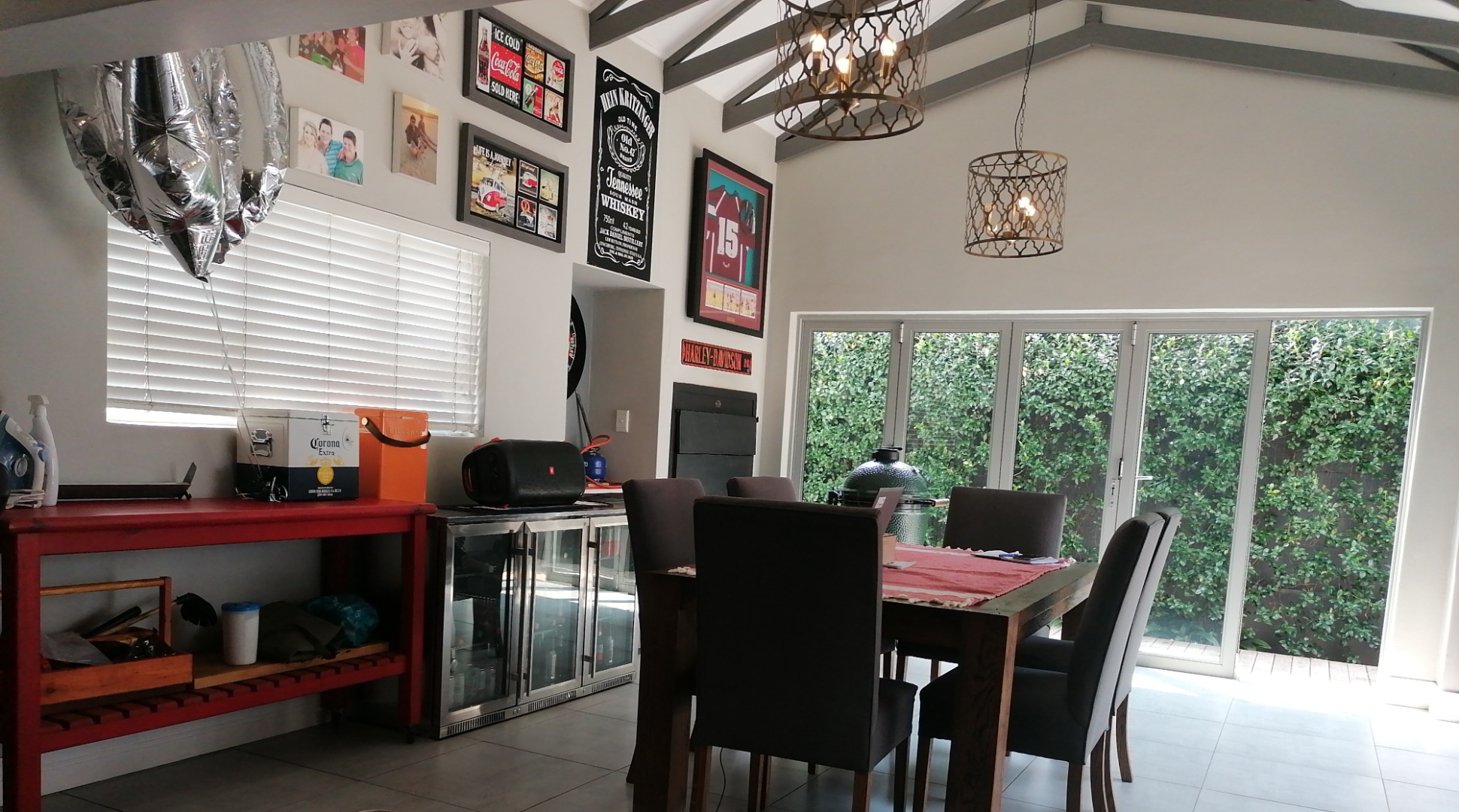 Outdoor living is equally inviting with a small pool, a deck perfect for dining on the deck, and a dedicated braai room complete with a built-in braai, ideal for social gatherings. Practical amenities include an automated double garage, a driveway, staff quarters (with bathroom facilities). For enhanced comfort, the home is equipped with air conditioning, and dogs are welcome, making it a true family haven.