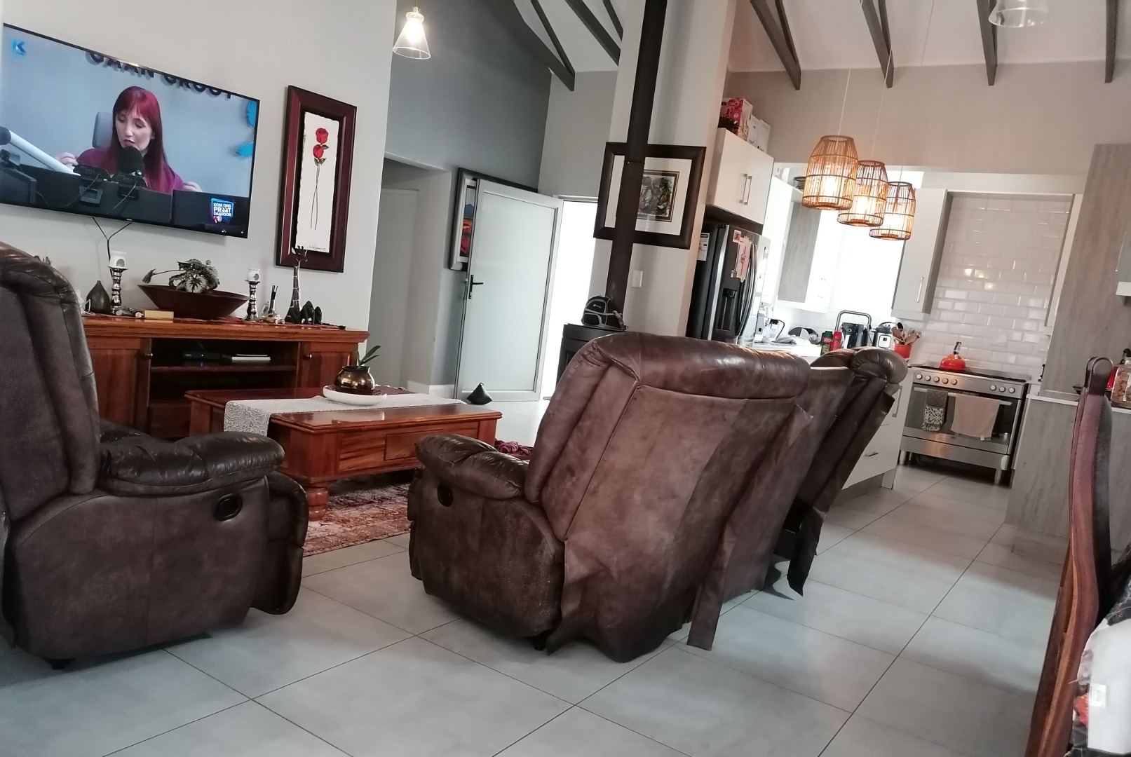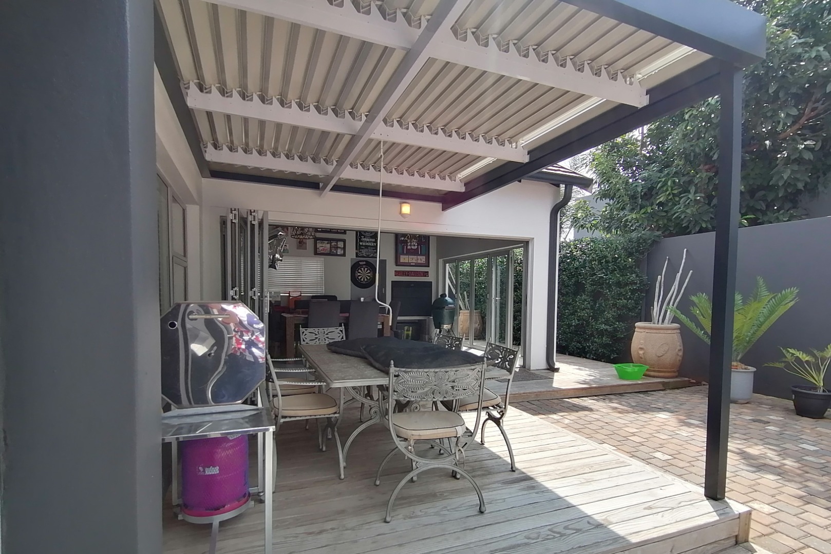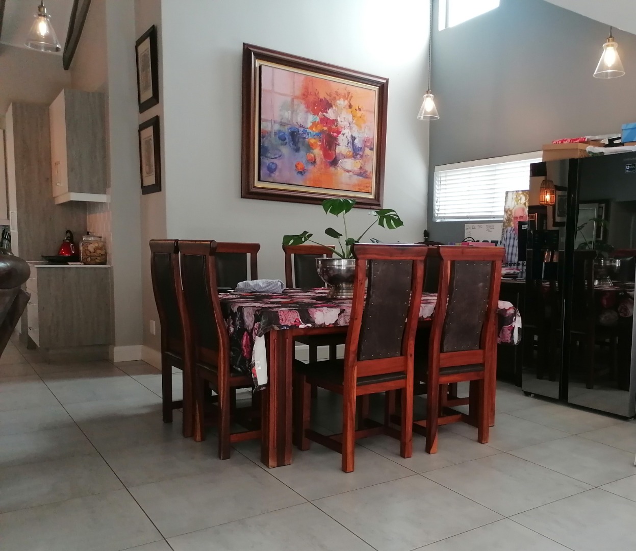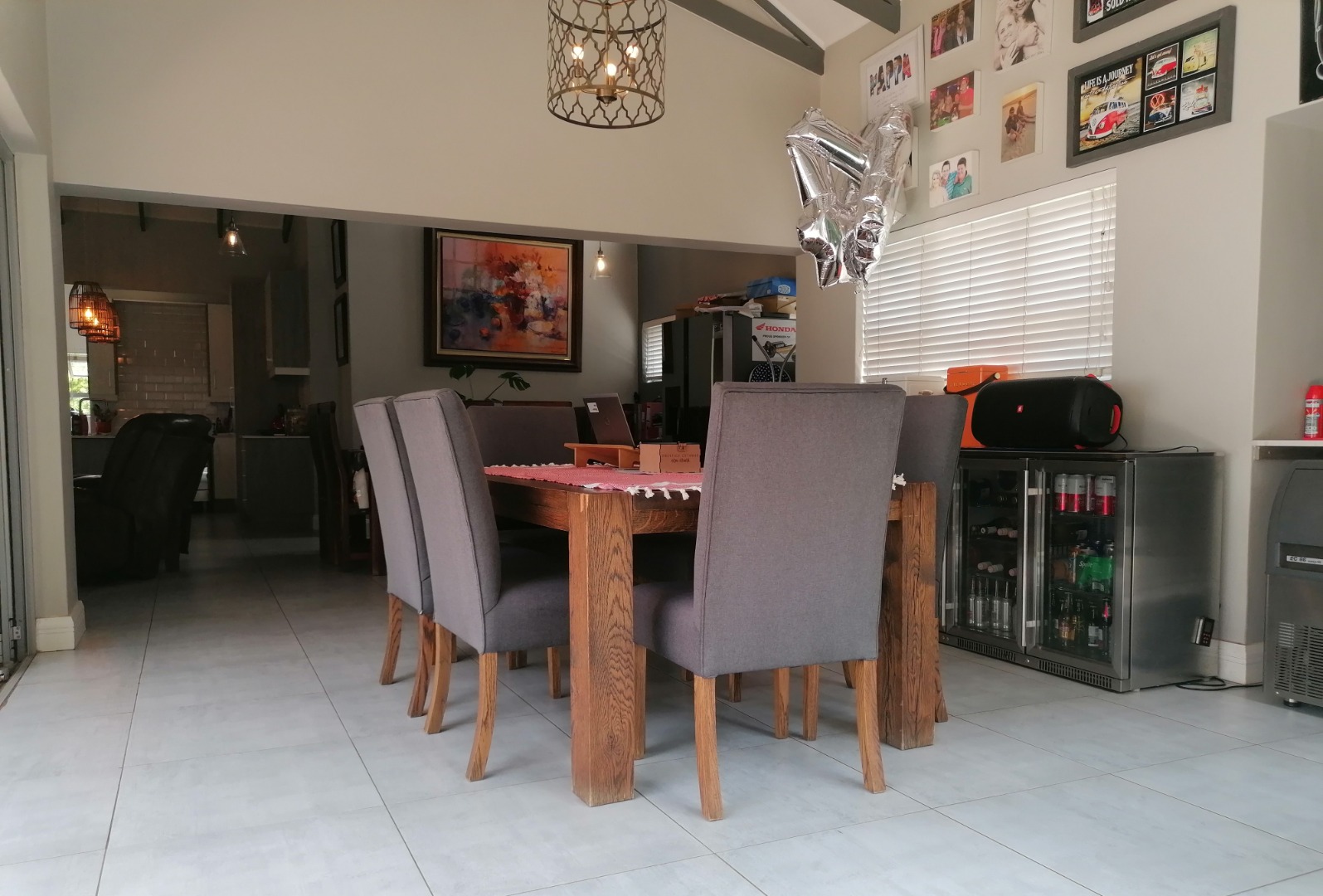 Outdoor living is equally inviting with a small pool, a deck perfect for dining on the deck, and a dedicated braai room complete with a built-in braai, ideal for social gatherings. Practical amenities include an automated double garage, a driveway, staff quarters (with bathroom facilities). For enhanced comfort, the home is equipped with air conditioning, and dogs are welcome, making it a true family haven.
