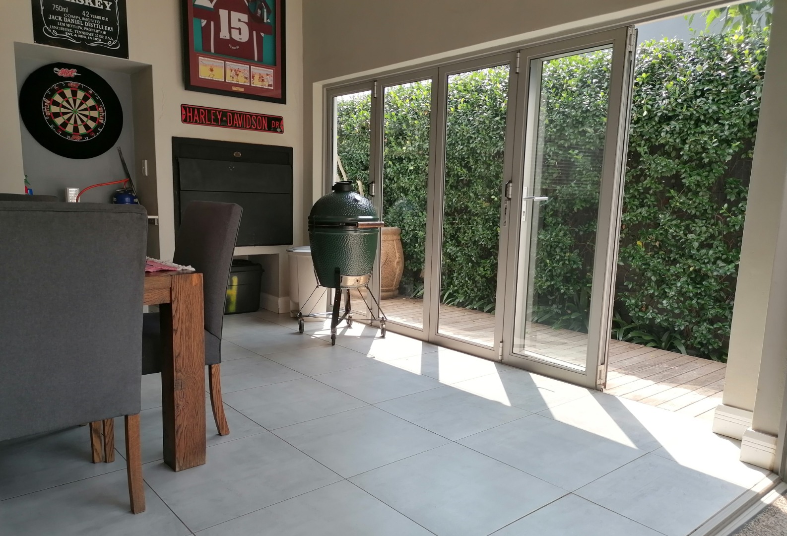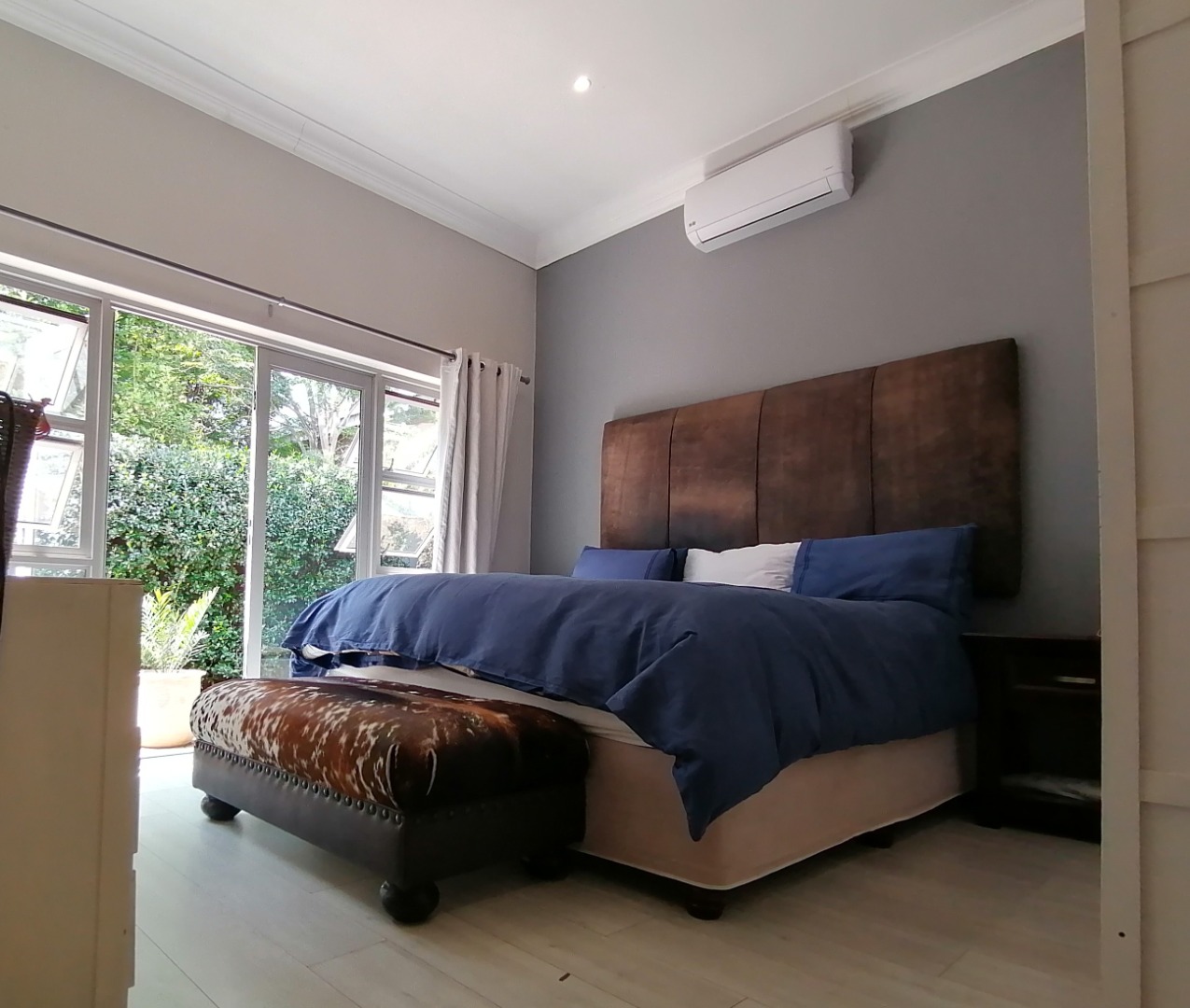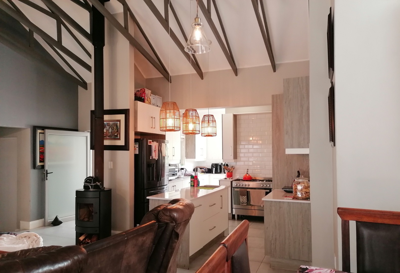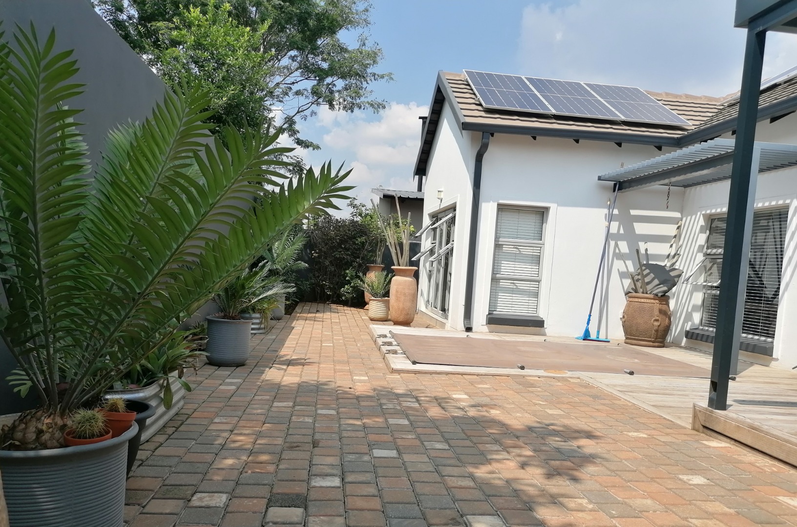 Outdoor living is equally inviting with a small pool, a deck perfect for dining on the deck, and a dedicated braai room complete with a built-in braai, ideal for social gatherings. Practical amenities include an automated double garage, a driveway, staff quarters (with bathroom facilities). For enhanced comfort, the home is equipped with air conditioning, and dogs are welcome, making it a true family haven.