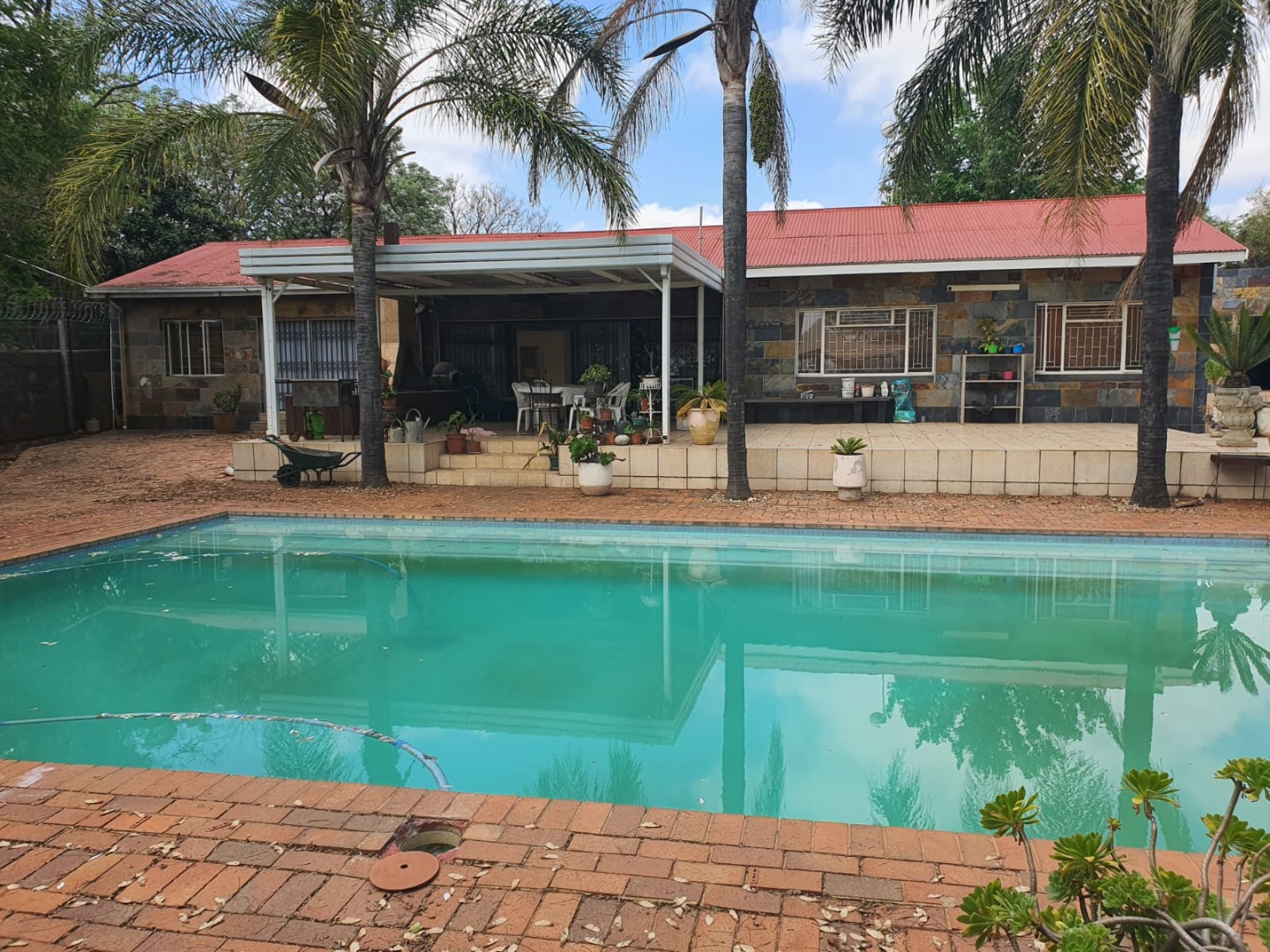 * Undercover louvre patio with built in braai
