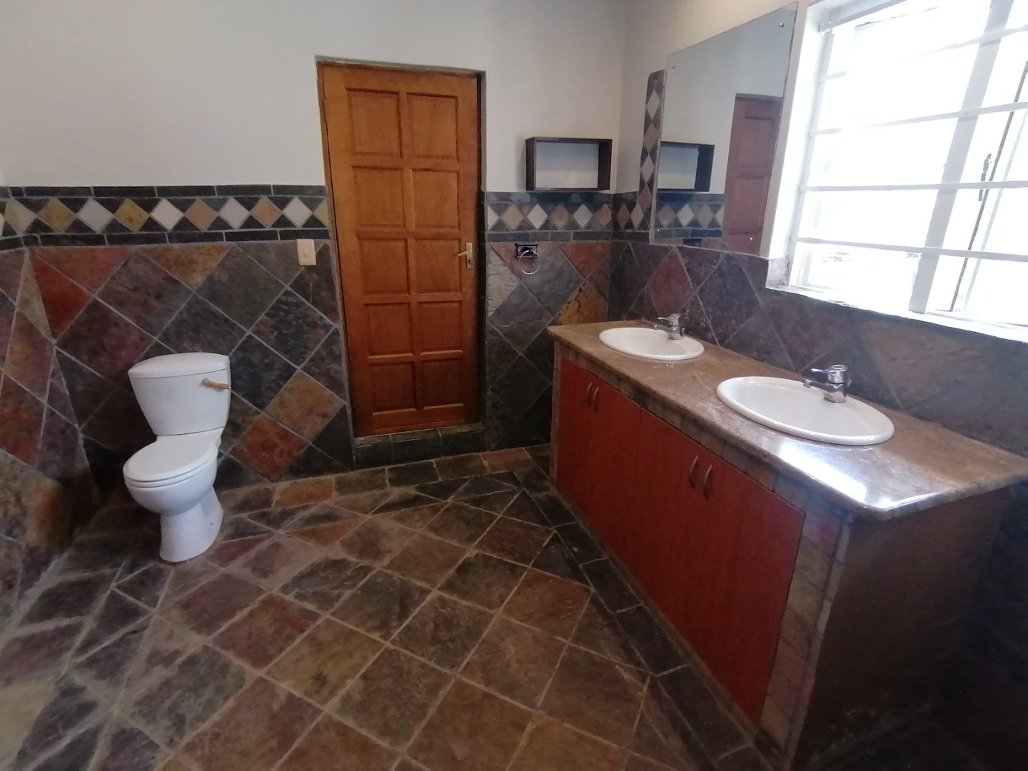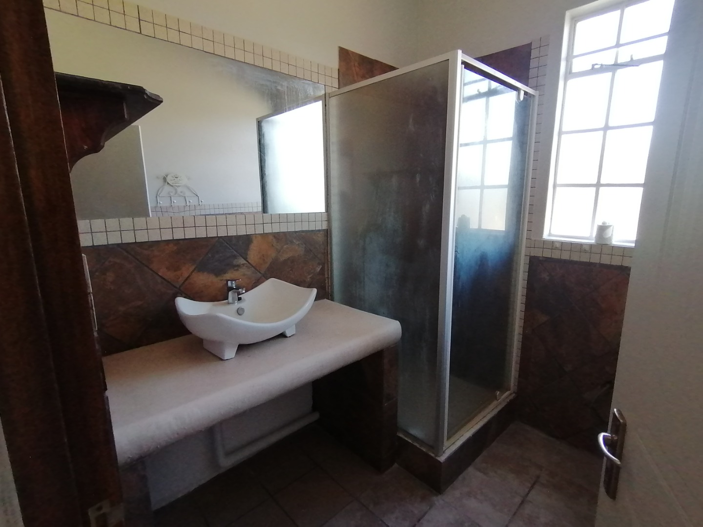 This spacious 6 Bedroom House is situated on the 1st floor of a large family home on a smallholding in Mnandi. It is the main dwelling on the property. There are 5 other rental units on the property, each with its own private entrance and some has their own private garden area. Having more than one tenant on the property also contributes to the safety factor.