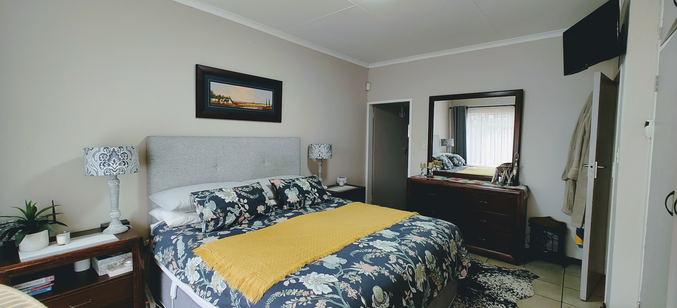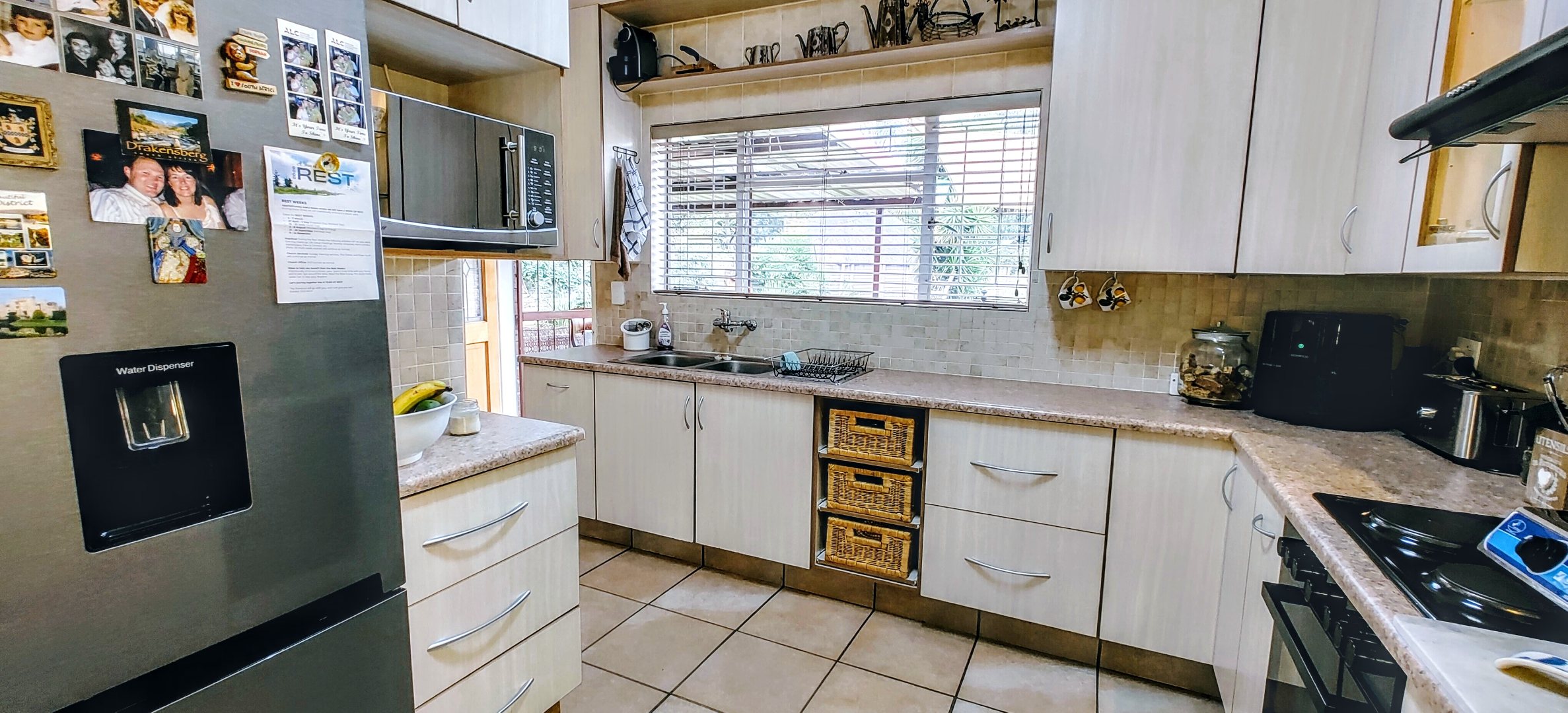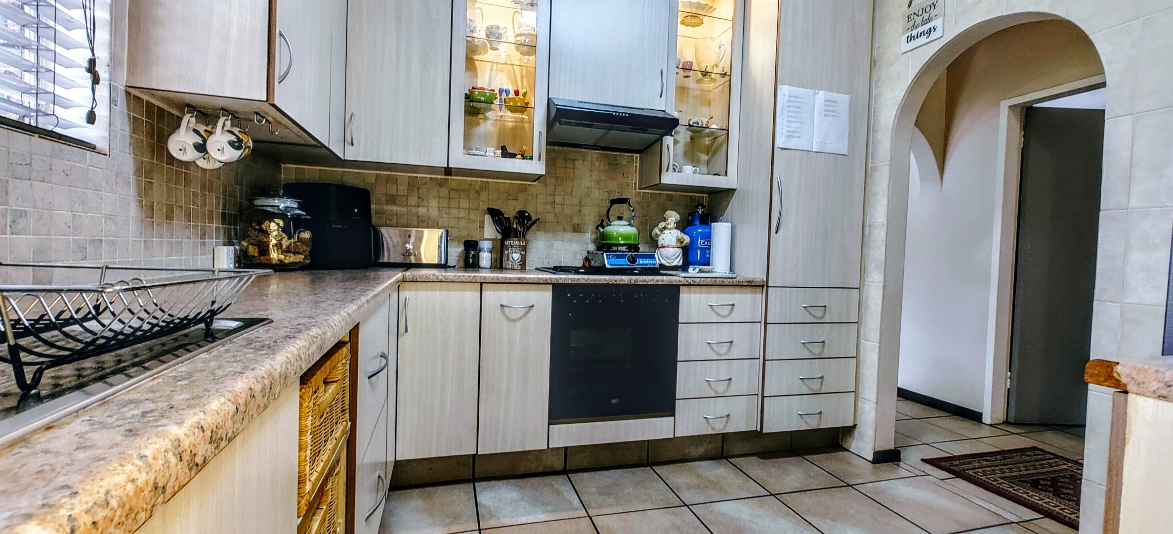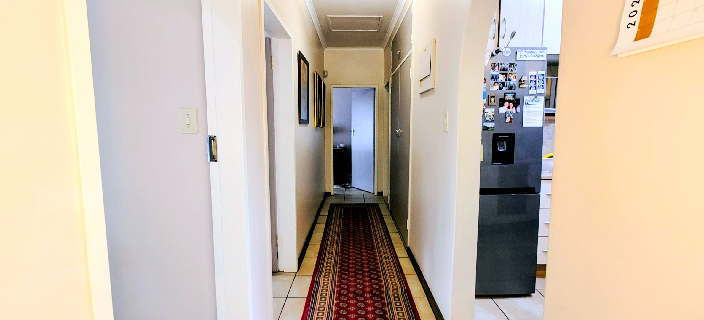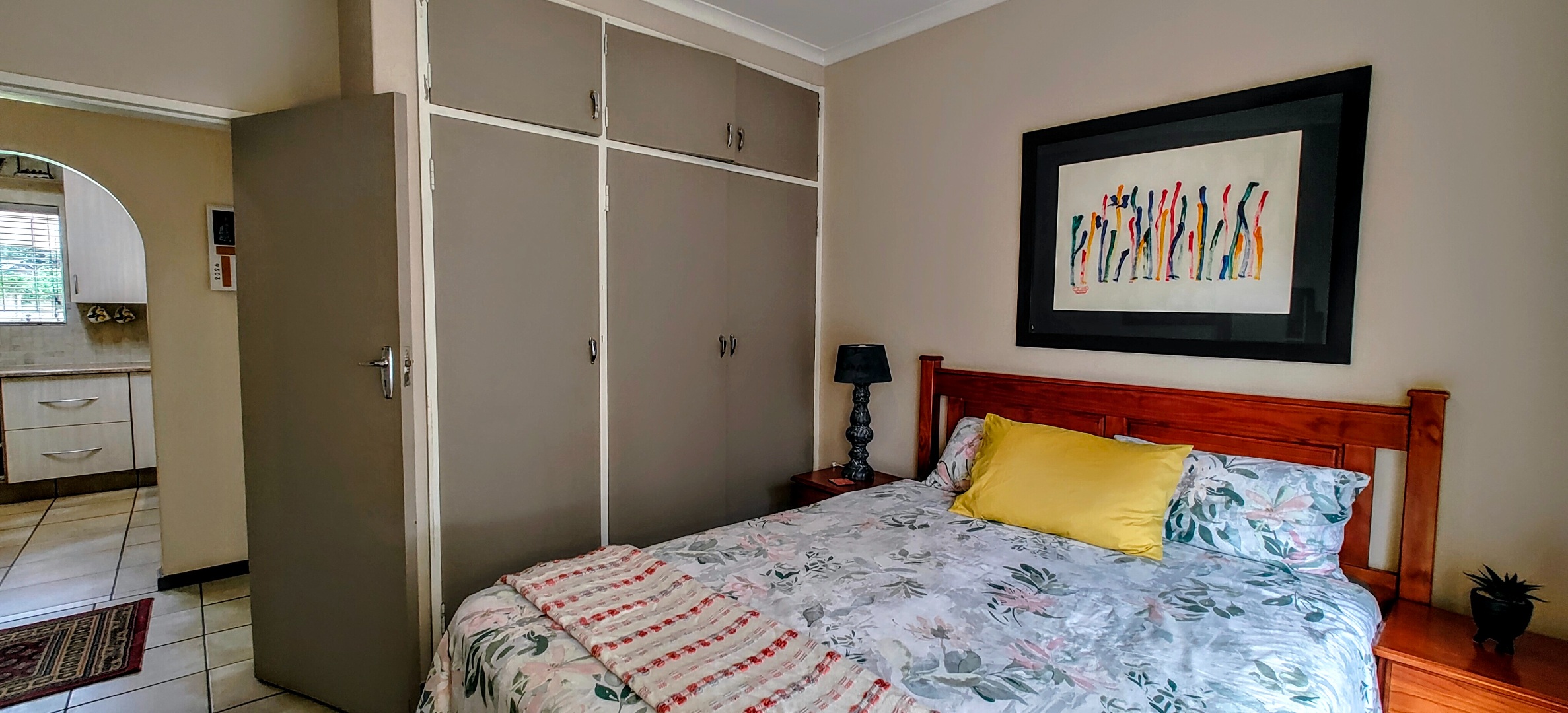 The home offers three spacious bedrooms with built-in cupboards. The master suite serves as a private retreat, complete with a full en-suite bathroom, while the remaining bedrooms share a well-appointed second bathroom.