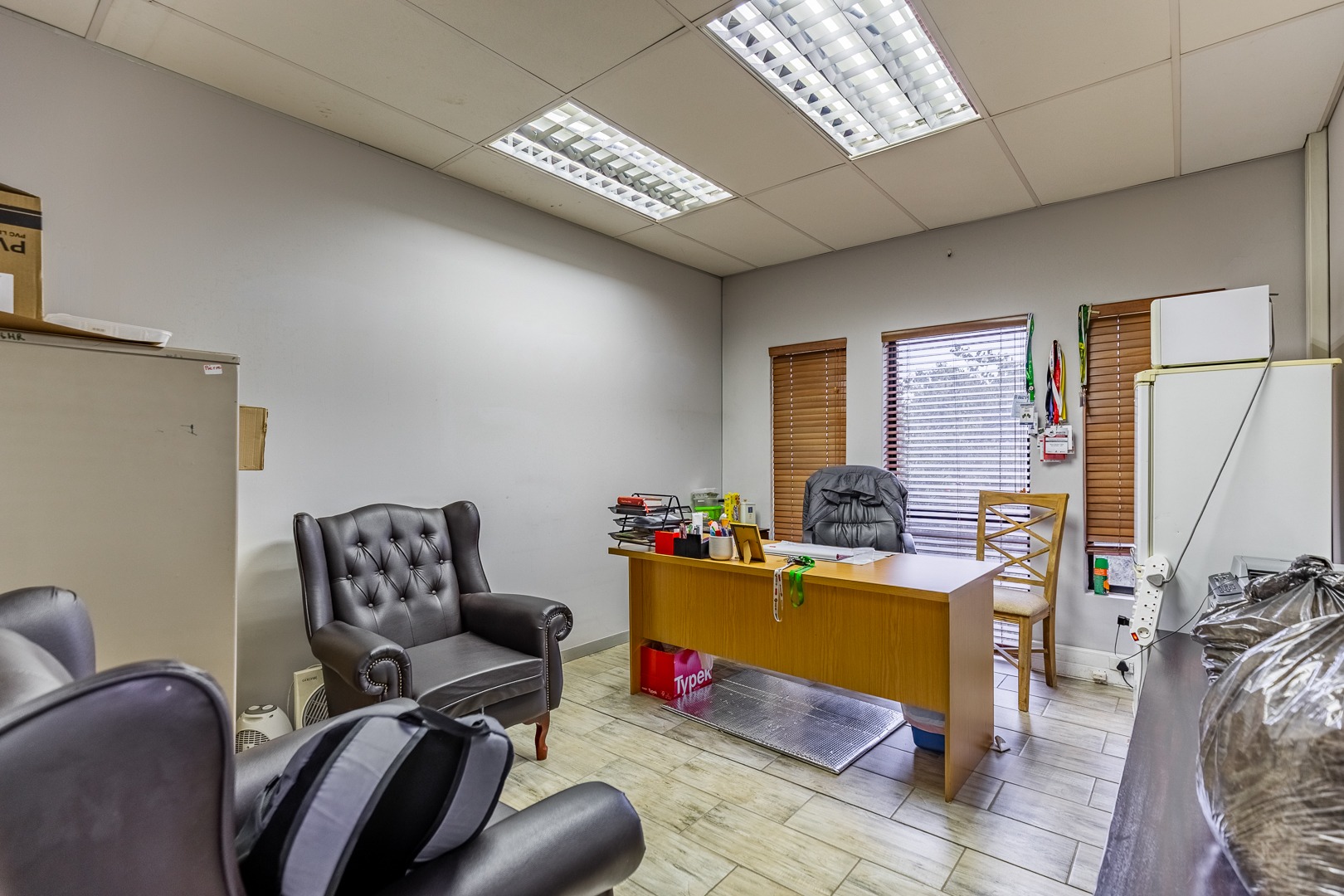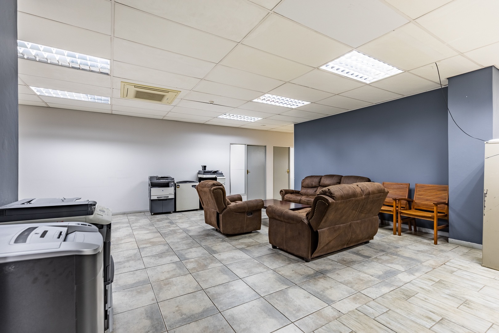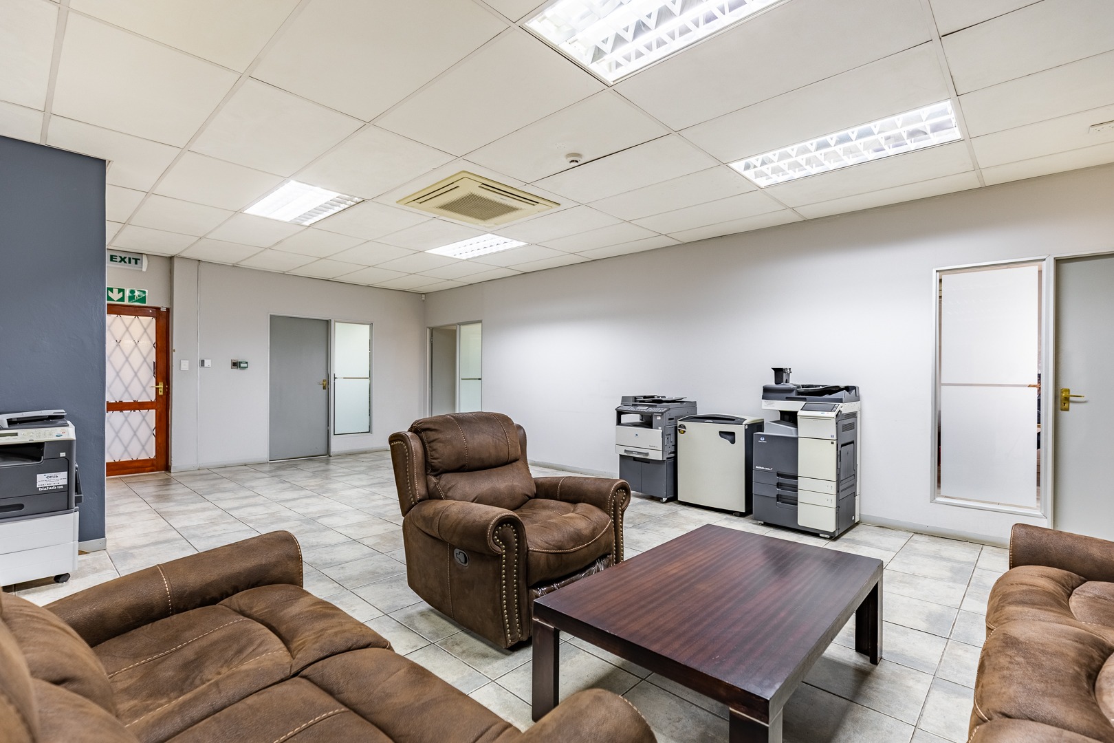 A dedicated boardroom is available for meetings and presentations, while a central waiting room and reception area is conveniently positioned, creating a welcoming first impression for clients and visitors.