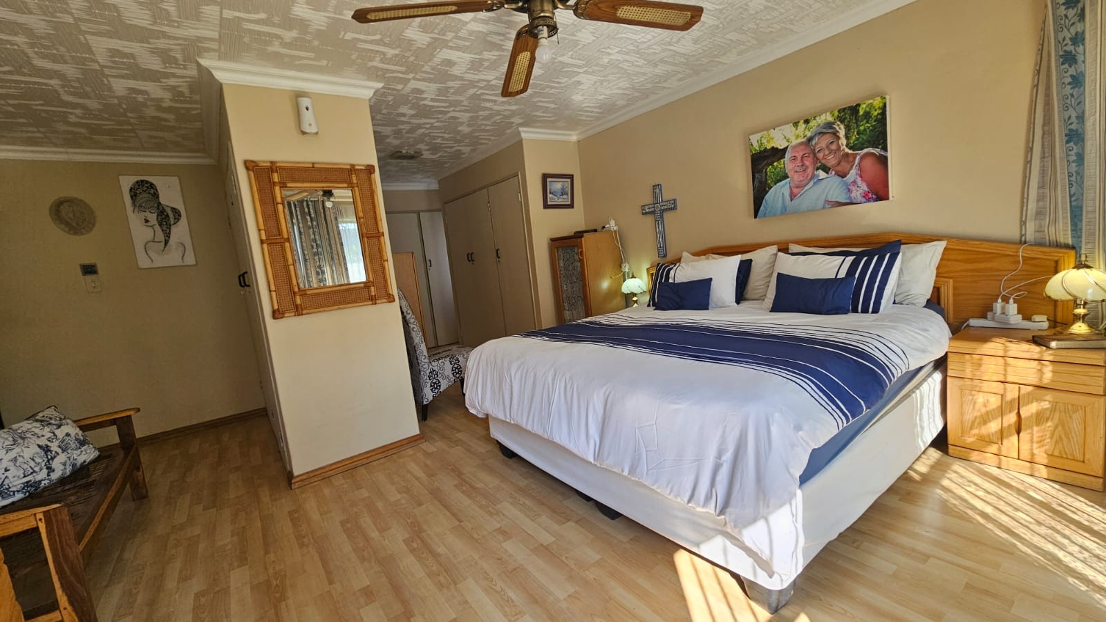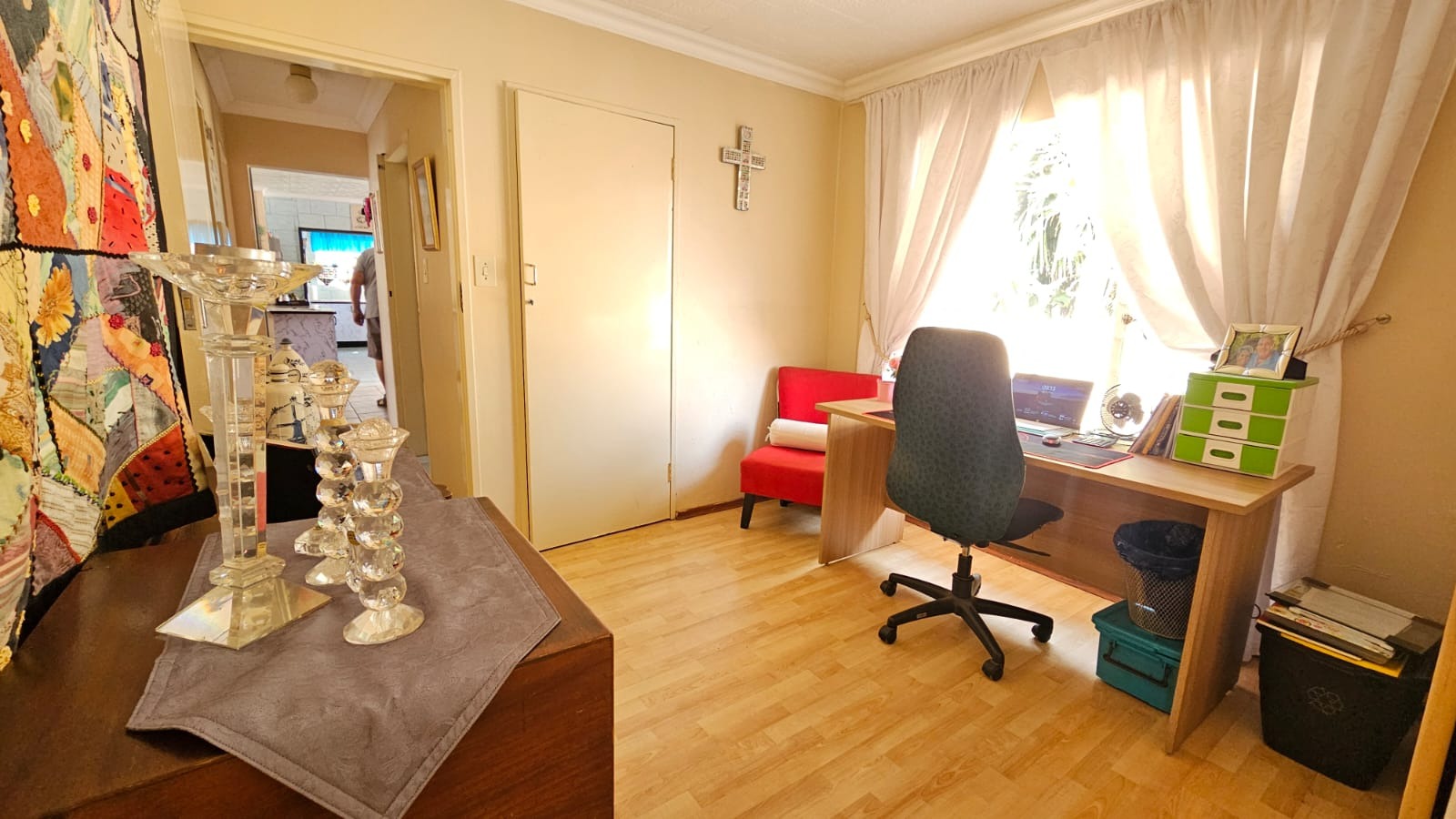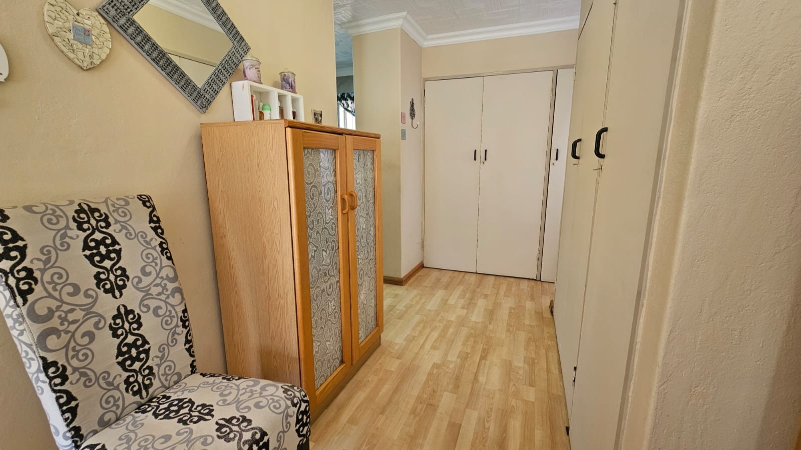 Two cozy bedrooms, each with a ceiling fan, share a well-appointed bathroom, while the expansive main bedroom offers generous cupboard space and a private en-suite for quiet evenings and effortless mornings. A dedicated study adds versatility for work, study, or hobbies, all under one comfortable roof.