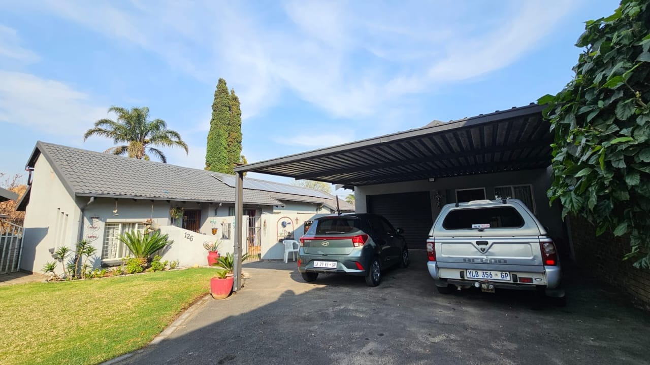Step outside to your private haven: a welcoming lapa area overlooks a refreshing pool, perfect for gatherings, weekend braais, or simply relaxing in the sun. The home is powered by solar, contributing to energy efficiency and lower utility bills, with the convenience of two covered parking spaces.