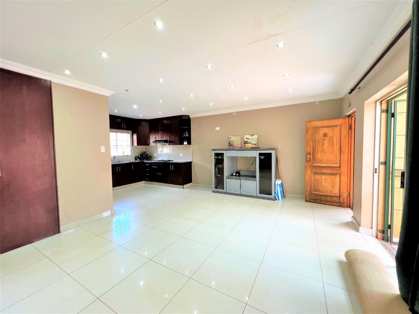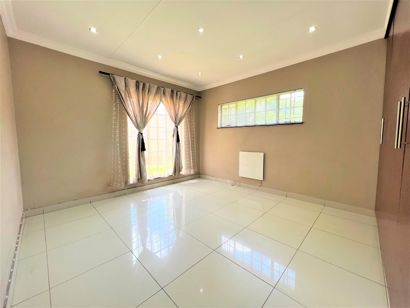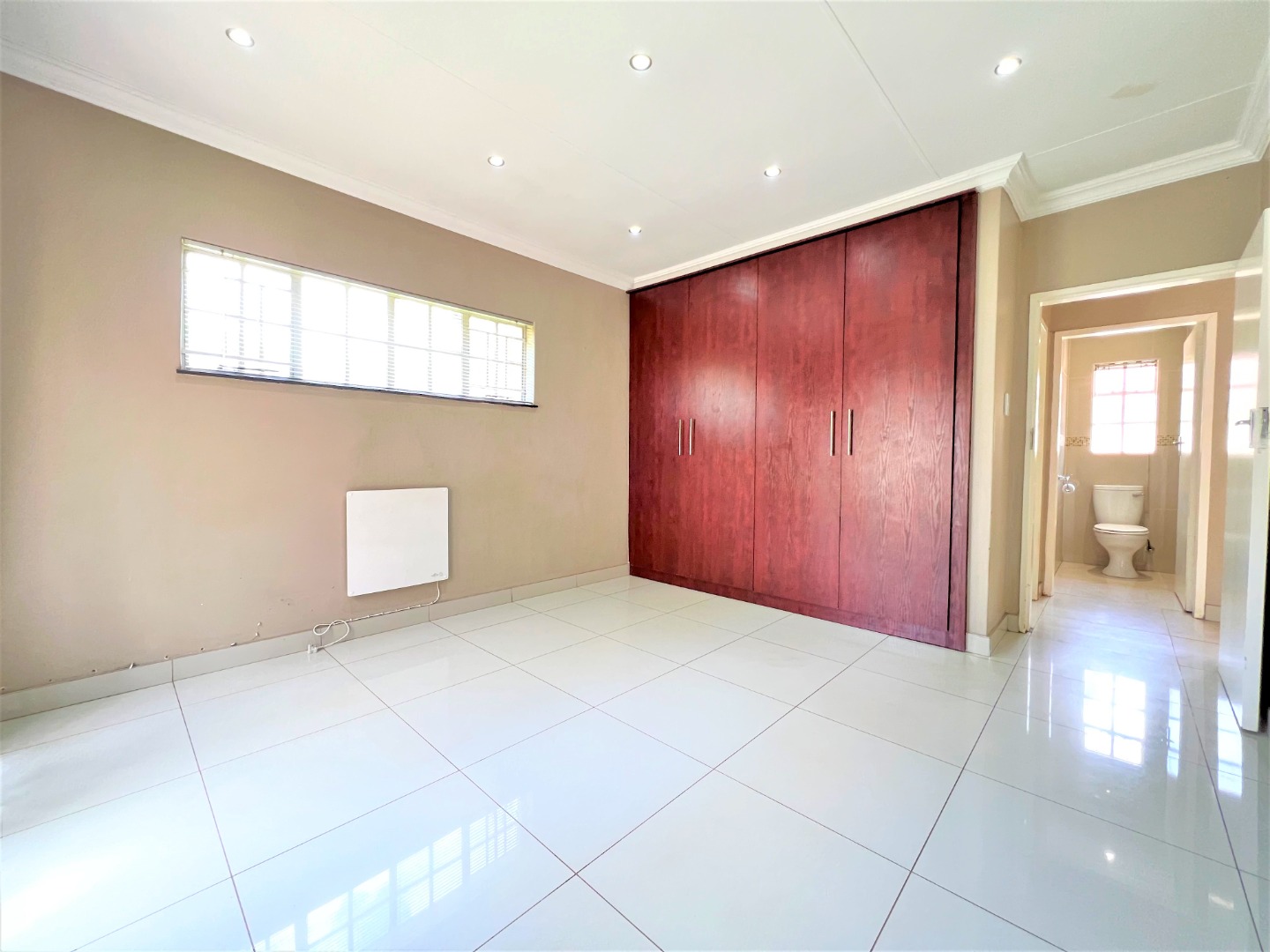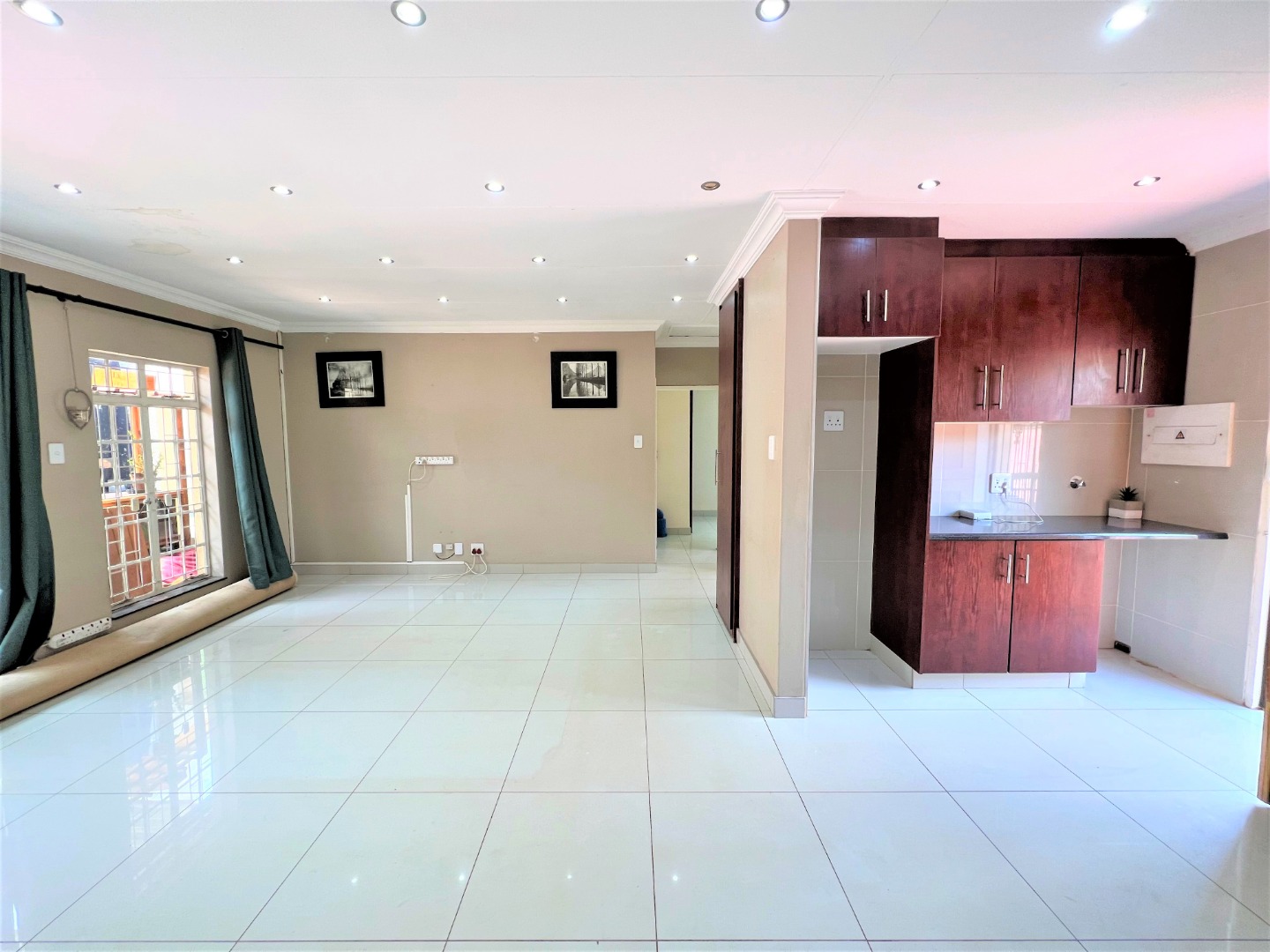 This stunning modern 2 Bedroom Town House is ideal for a young couple or lock up and go, nestled in the ever sunny historic Valhalla. As you enter the front door you will find a spacious lounge with an open plan kitchen and dining area with modern finishes, beautifully tiled and well lit with downlights and a washing machine connection. Just outside through the lounge sliding door is a patio with a build in braai and a low maintenance spacious garden. The main bedroom is sunny, spacious and has sun throughout the day, both bedrooms have built in cupboards, are beautiful tiled and has down lights. There is one bathroom with a bath and a shower attachment with a separate toilet. This stunning complex is very private as their are only 5 units and there is also a shared borehole and prepaid electricity.