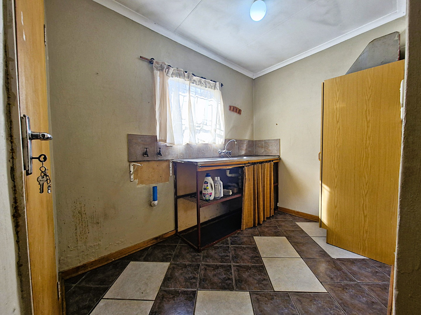 The unit features a spacious bedroom with built-in cupboards, as well as a separate study — perfect for working from home or easily adaptable as a small second bedroom. The living areas are neatly tiled throughout, while the bedroom and study are fitted with carpets for added warmth and comfort.