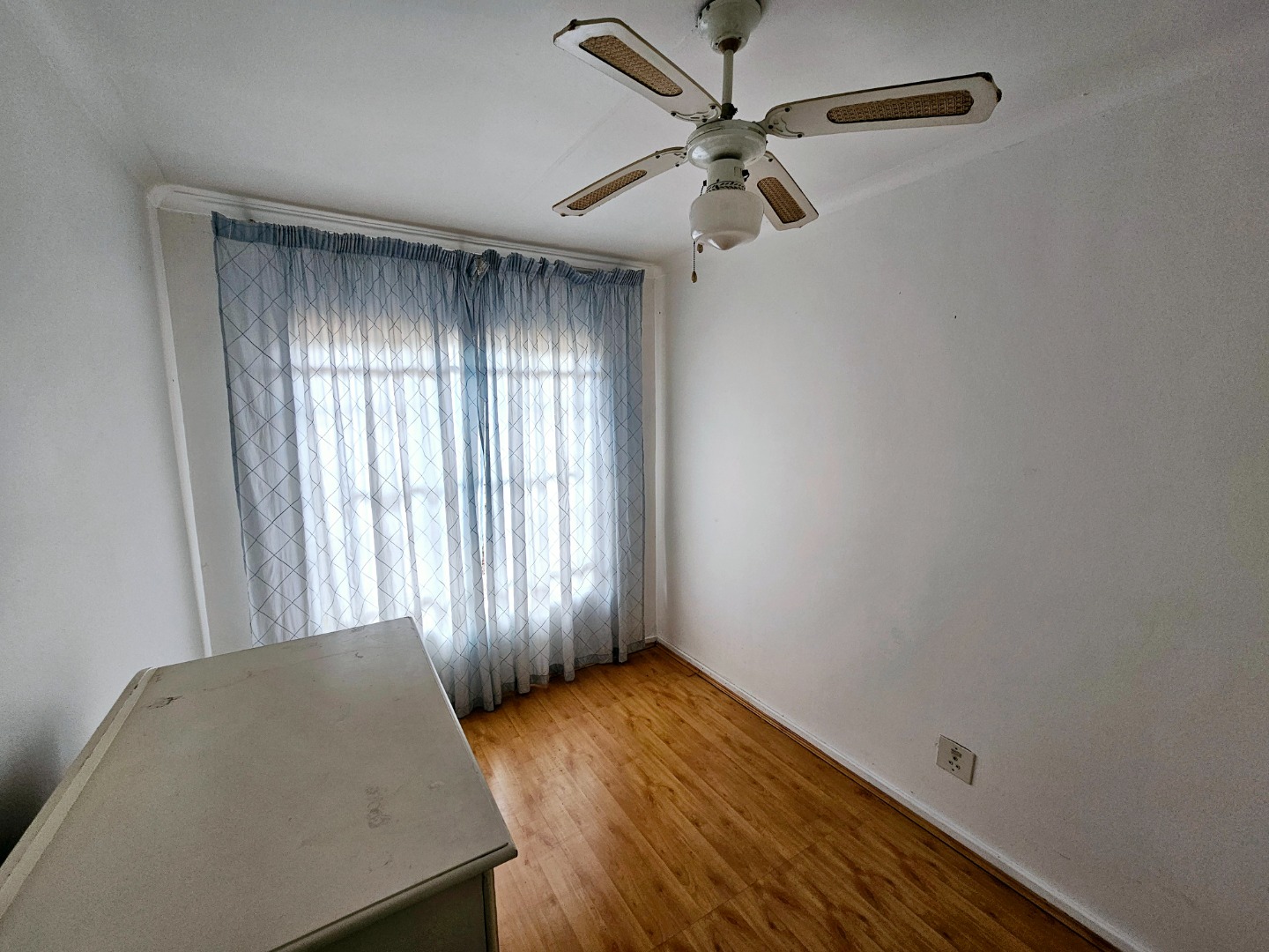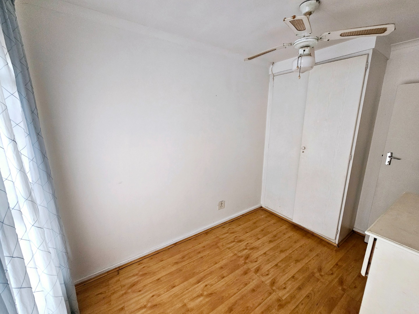 The unit itself features an open-plan living area seamlessly integrated with a newly renovated kitchen, complete with space for two appliances. Wooden floors, ceiling fans, and built-in cupboards adorn the two cozy bedrooms, complemented by a full bathroom.