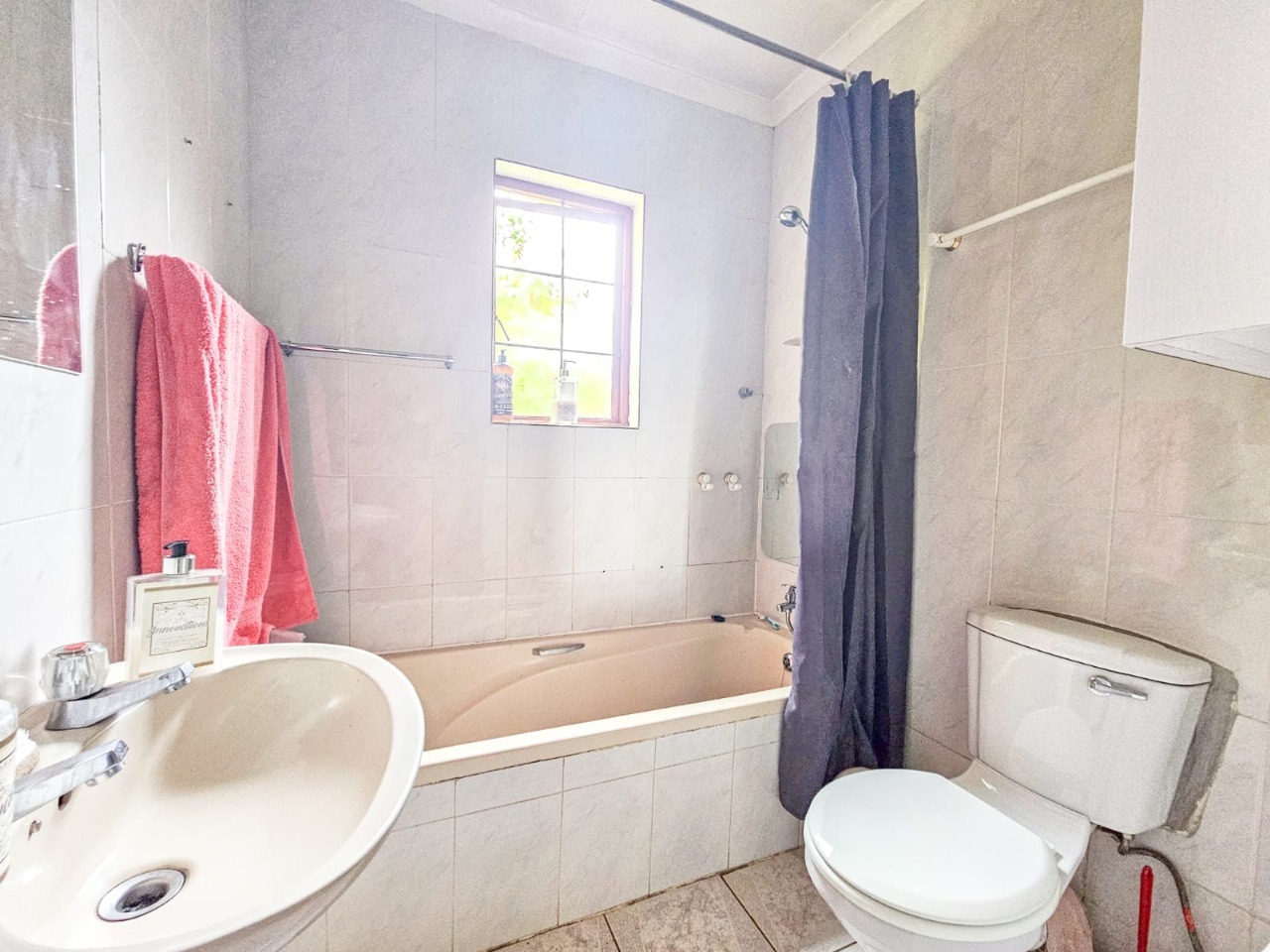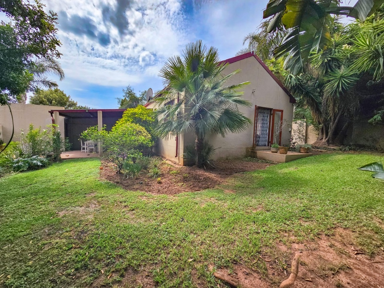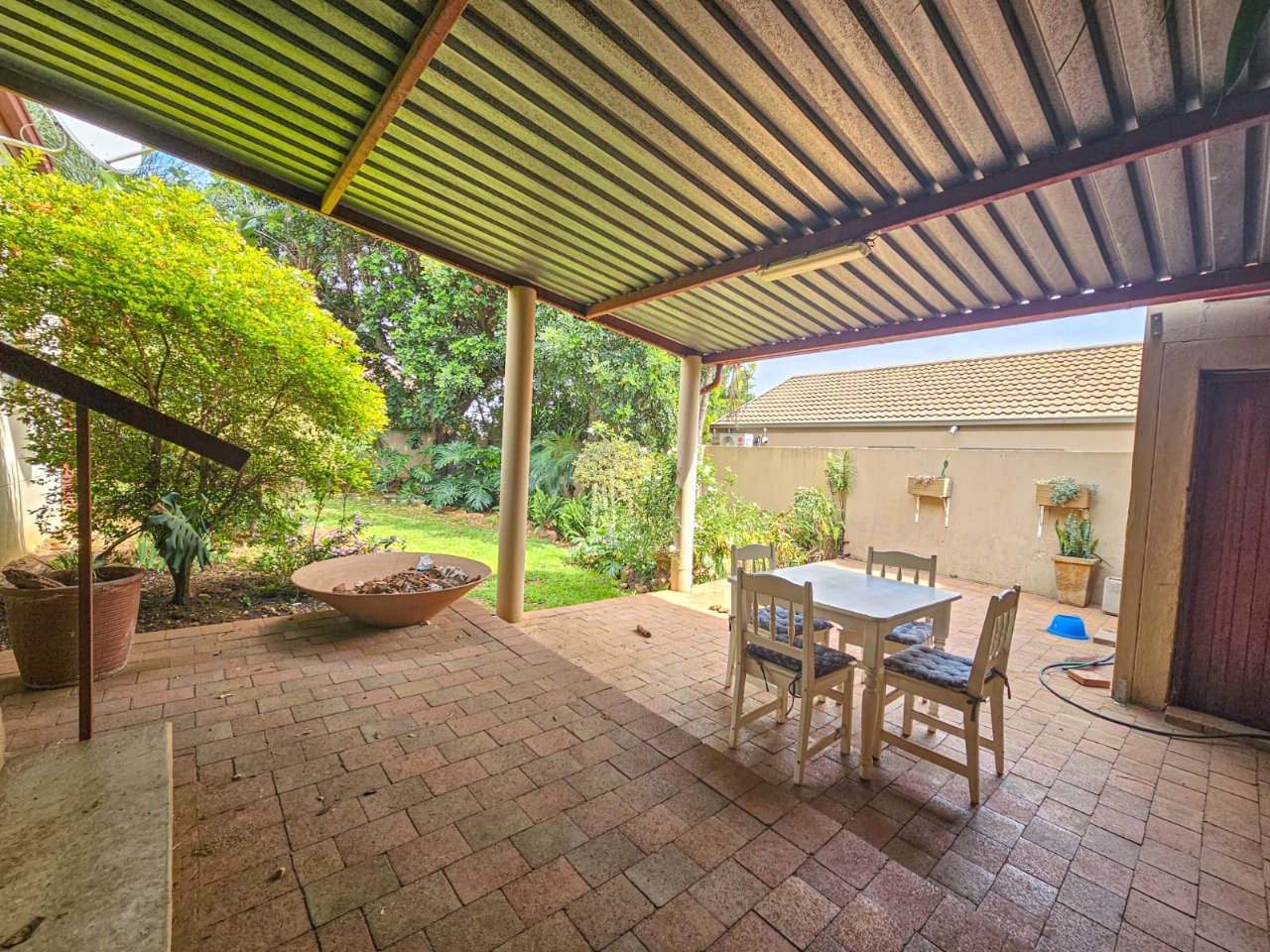 Outside, residents can enjoy a private patio, perfect for relaxation or entertaining, overlooking the established garden. This pet-friendly property is situated within a security complex, offering peace of mind with an alarm system, electric fencing, an access gate, and a security gate. A sprinkler system aids in garden maintenance.
