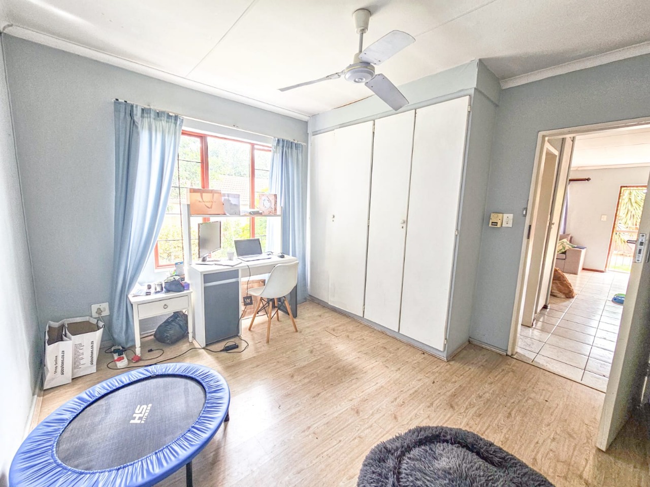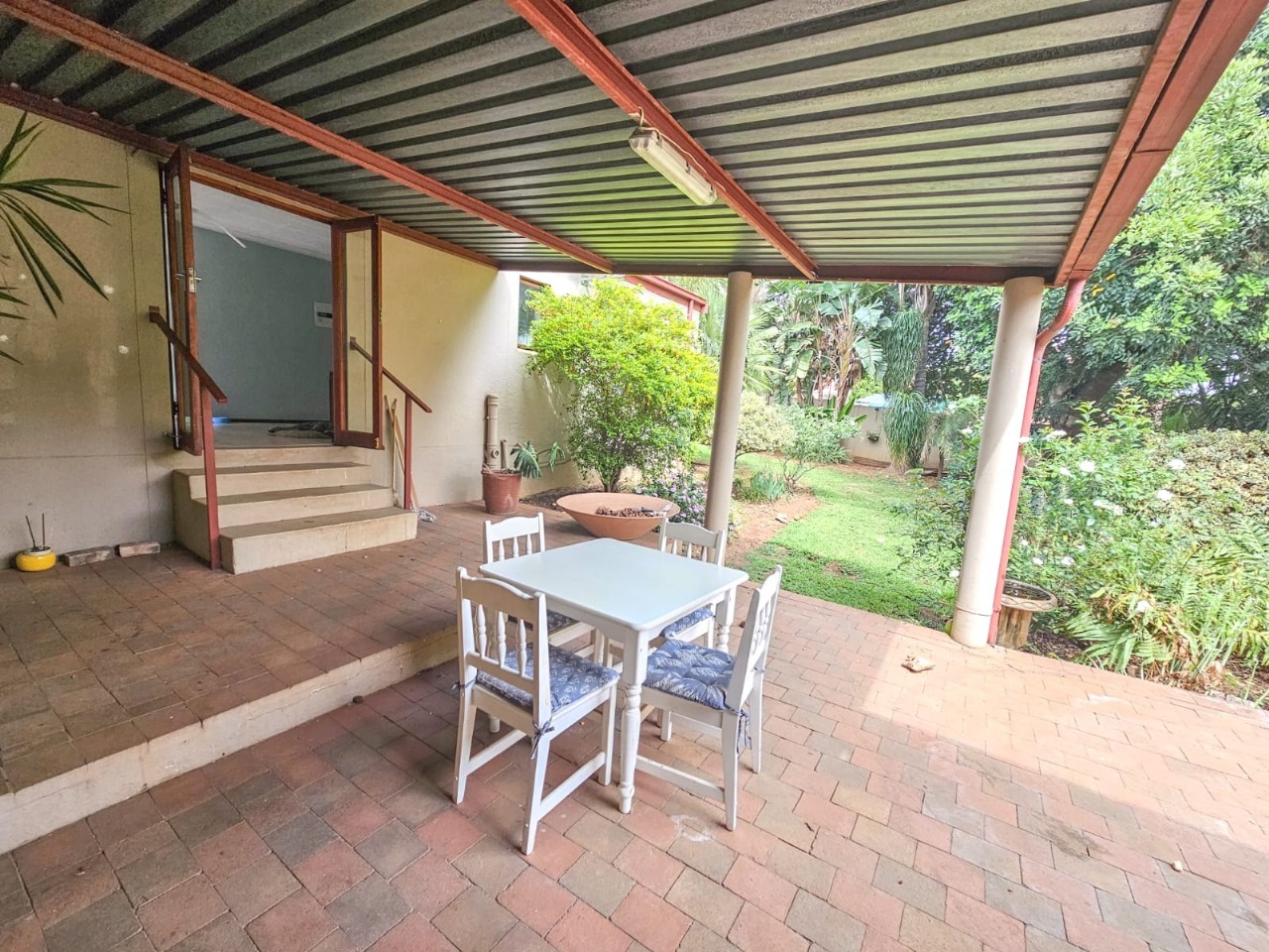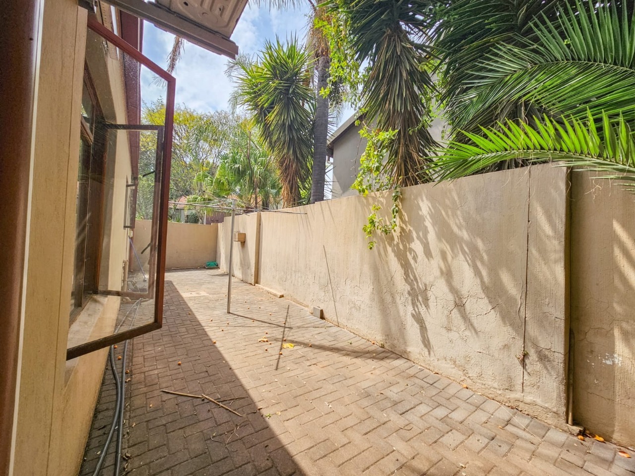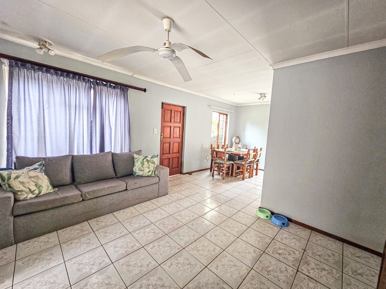 Outside, residents can enjoy a private patio, perfect for relaxation or entertaining, overlooking the established garden. This pet-friendly property is situated within a security complex, offering peace of mind with an alarm system, electric fencing, an access gate, and a security gate. A sprinkler system aids in garden maintenance.