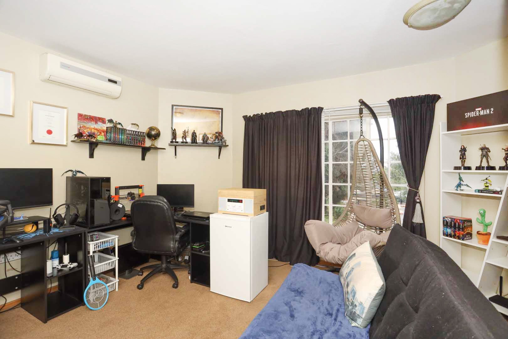 A standout feature of the property is the separate flatlet with its own private entrance, offering excellent potential for rental income or independent living. The flatlet includes a lounge, built-in braai, air conditioning, a kitchenette with basin, one bedroom, a bathroom, and a rooftop patio—perfect for relaxed, private enjoyment.
