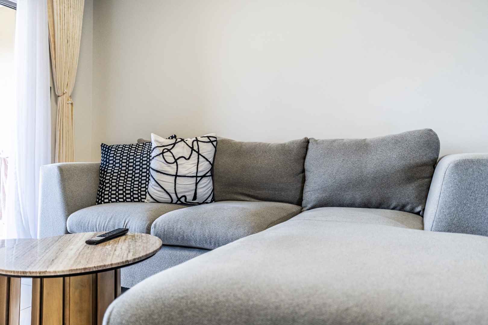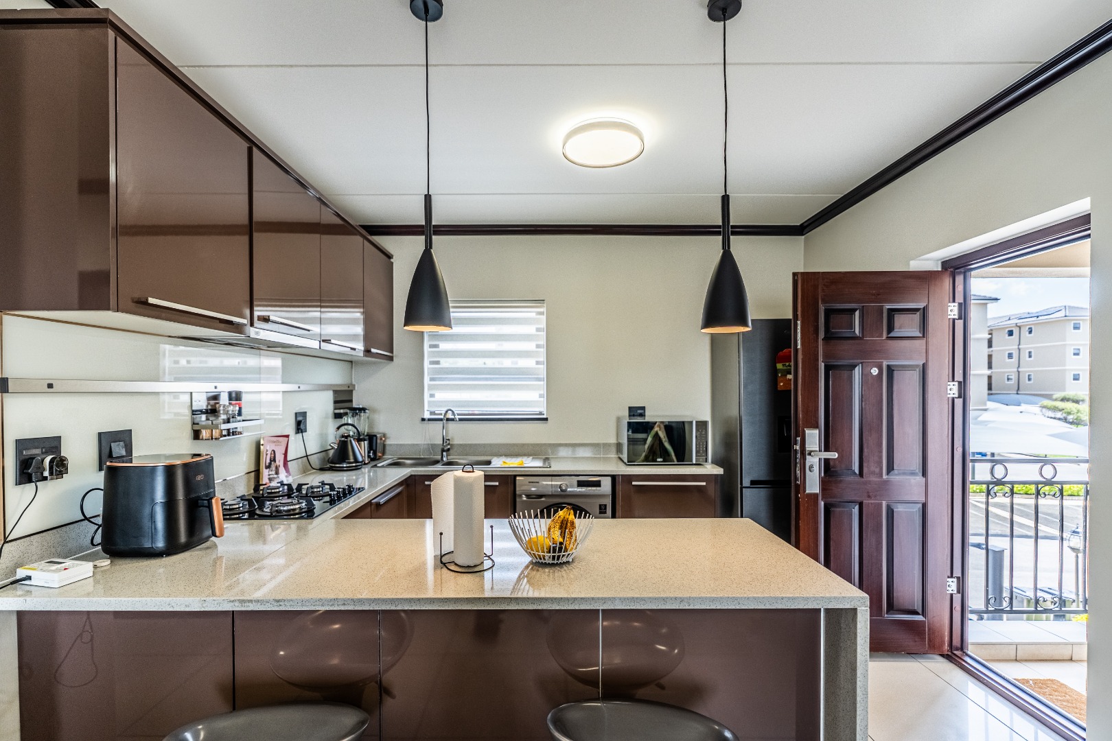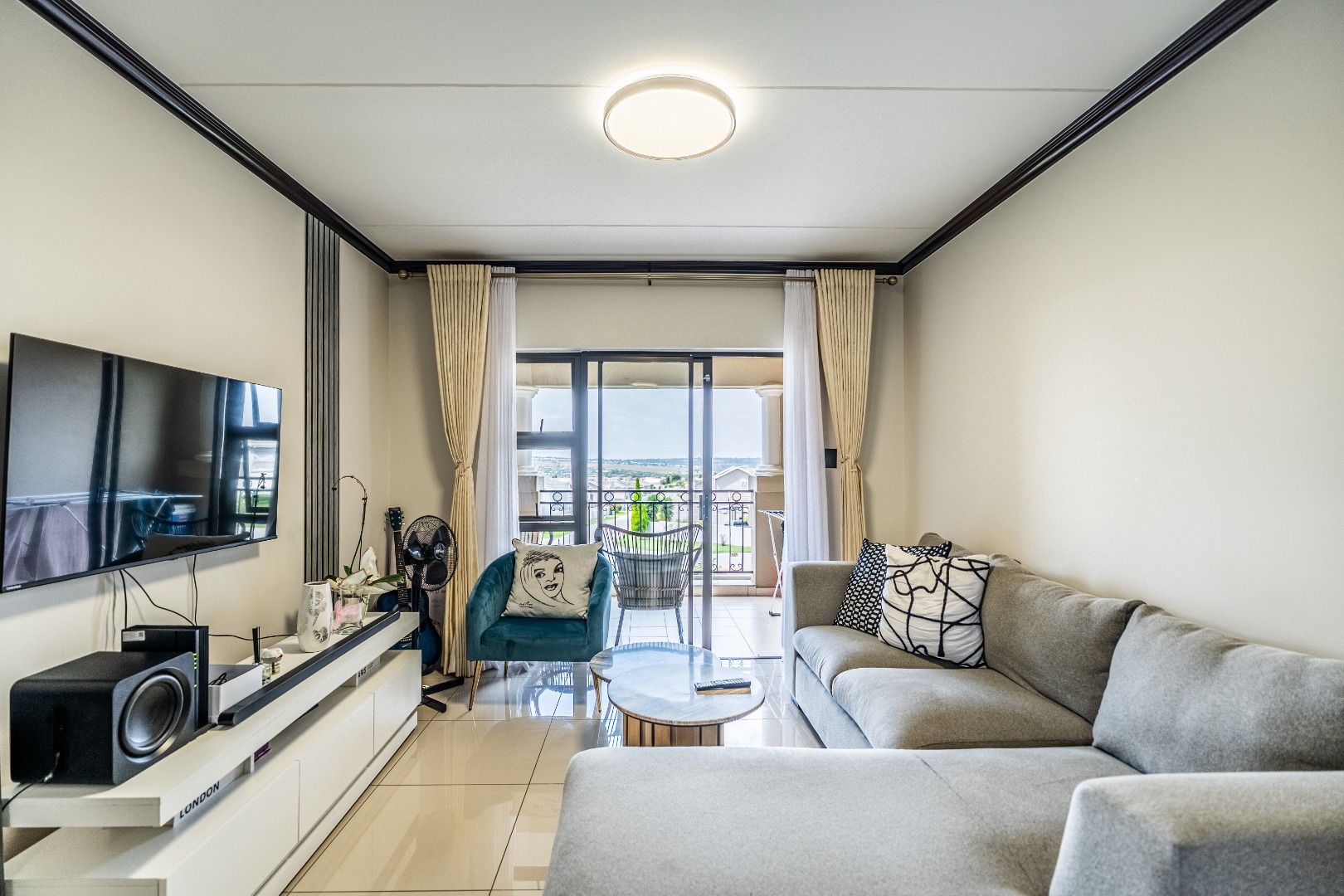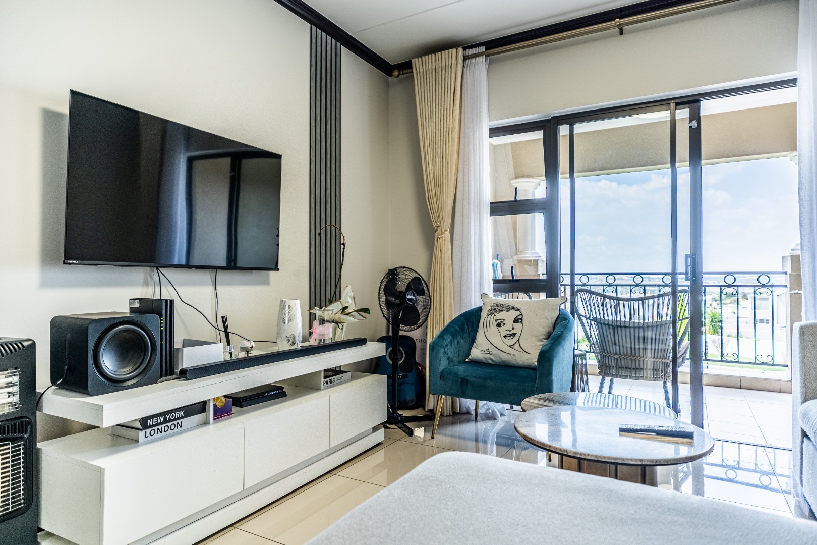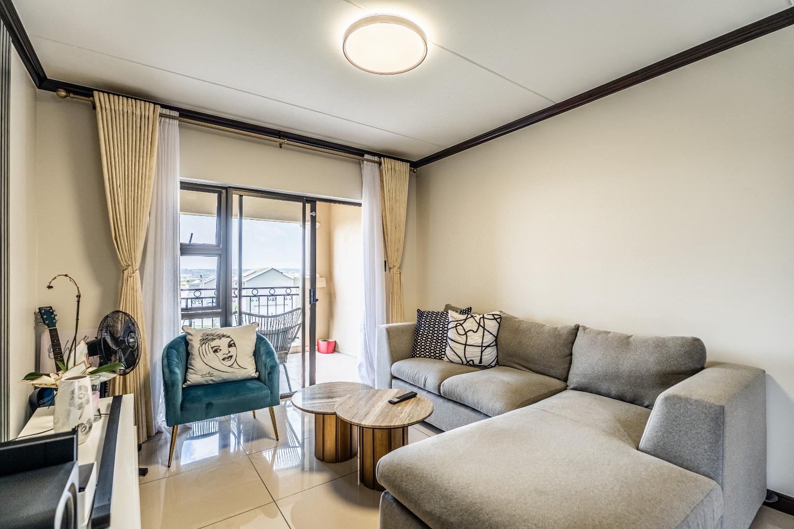 The apartment opens into a bright, open-plan lounge that flows seamlessly onto a private balcony, where you can enjoy beautiful views of the estate—a perfect spot to relax.