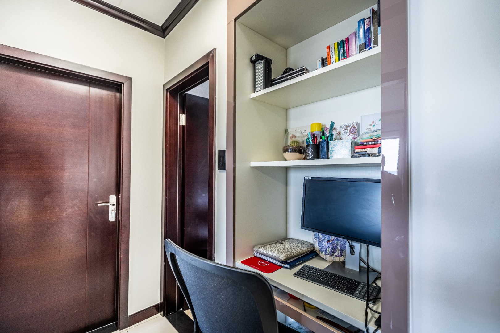 As you enter, you are welcomed by a versatile study nook along the passage—perfect for working from home or as a dedicated desk space.