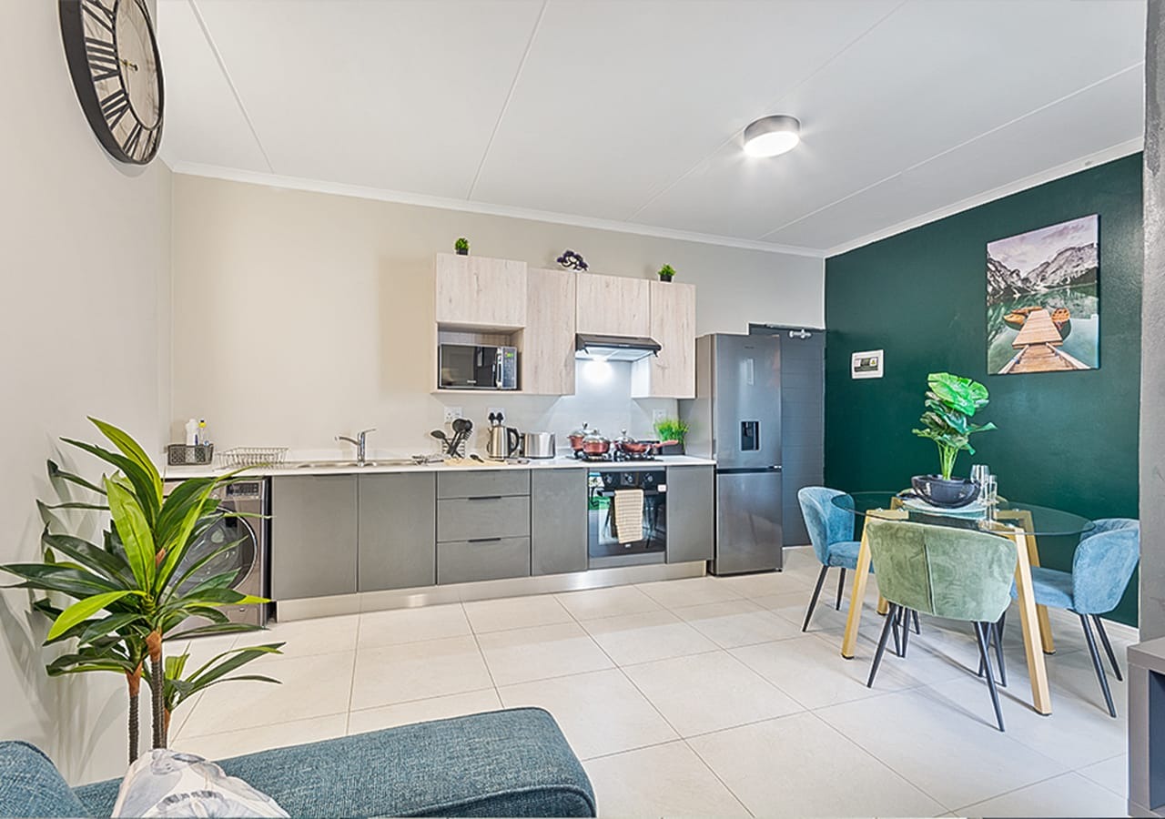 Situated within a secure, access-controlled complex, residents enjoy access to a swimming pool, clubhouse, and braai area. The apartment is well suited to travelling business professionals, corporate tenants, and long-term stays seeking comfort and convenience.