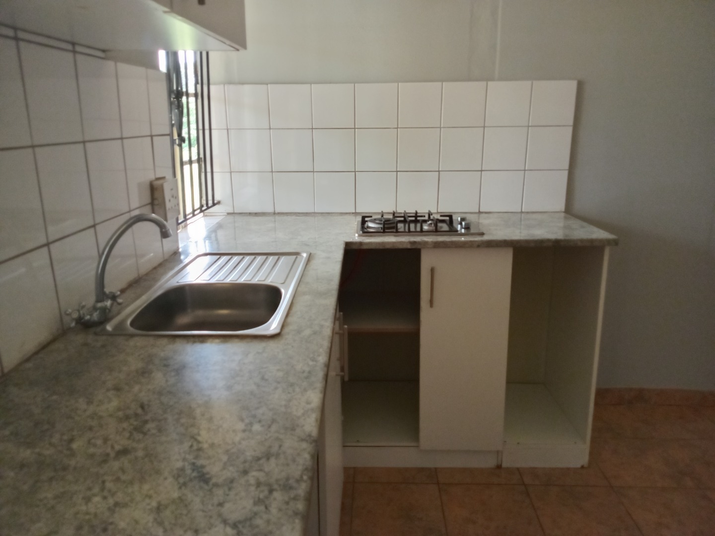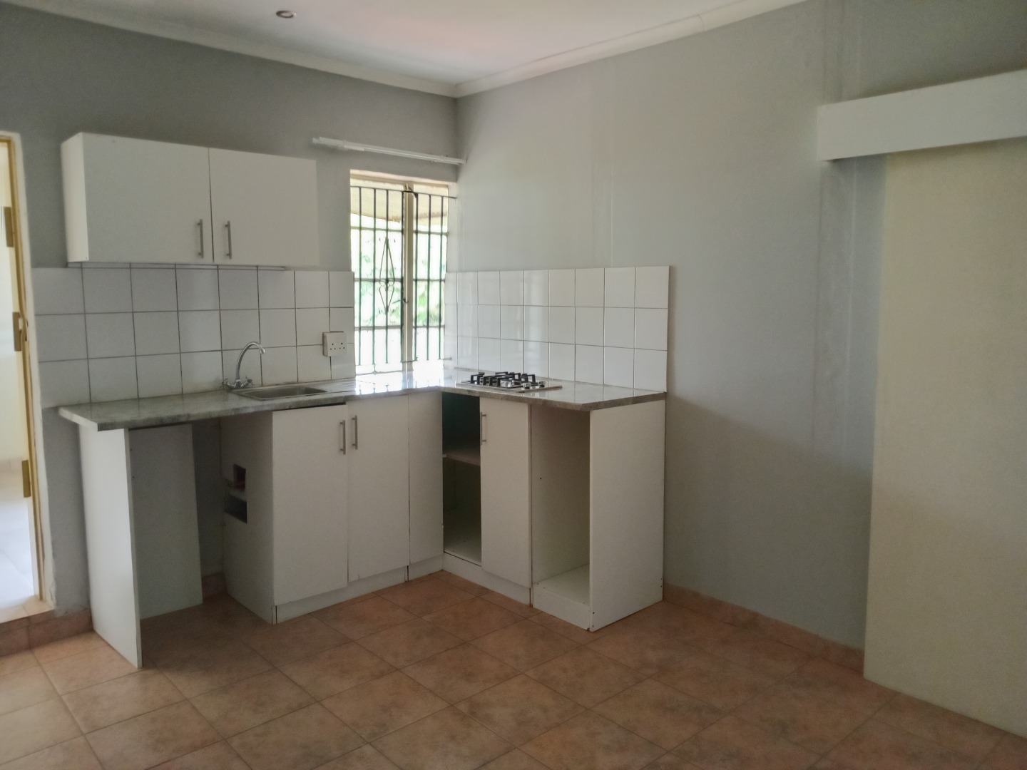 This 1-bedroom apartment is situated on a small holding in Glen Austin Agricultural Holdings. You enter through the security door into the living area. There is a large kitchen with cupboards with a gas hob and a sink basin. The bedroom is spacious with built-in cupboards. The unit has a bathroom with shower, toilet and basin.