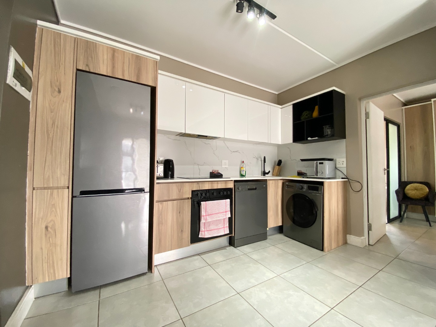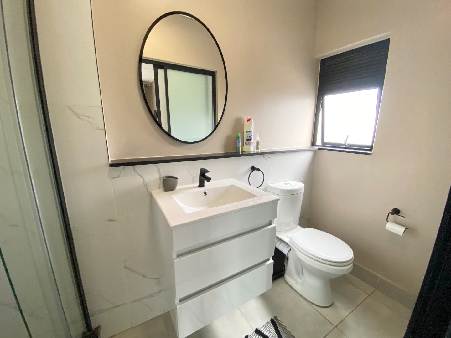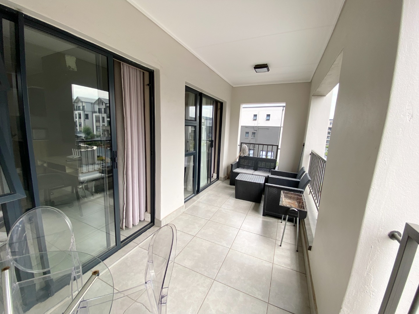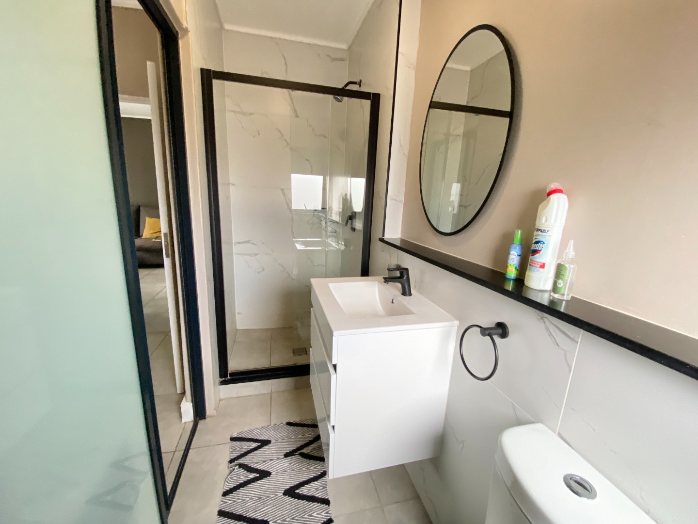 Discover an unparalleled lifestyle within this exquisite furnished apartment, nestled in the prestigious Waterfall suburb of Midrand. Upon entering the esteemed development, a grand, modern entrance with multi-lane controlled access and a serene water feature sets a tone of sophisticated security and meticulous design. This one-bedroom, one-bathroom residence epitomizes contemporary elegance, featuring an open-plan living area bathed in natural light, seamlessly extending to a private balcony for an effortless indoor-outdoor flow. The integrated workspace offers a dedicated area for productivity, complemented by stylish track lighting and a comfortable L-shaped sofa.