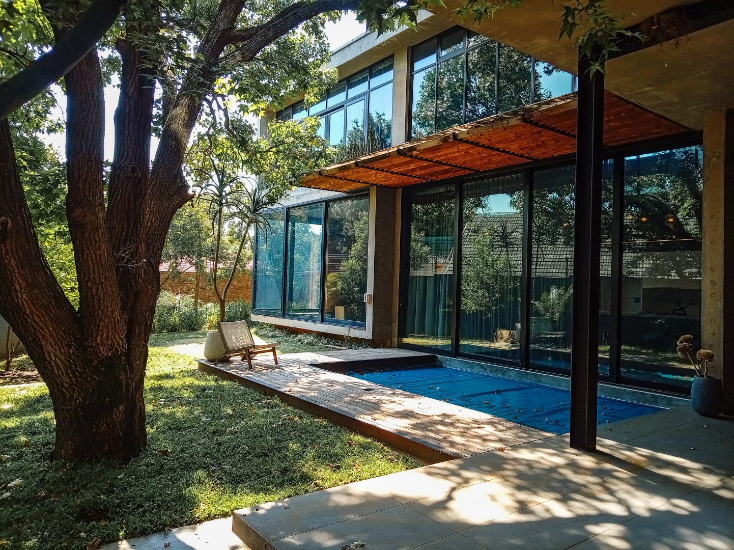 Enjoy outdoor living with a wooden deck, plunge pool, and built-in braai — plus added luxuries like a sauna and staff quarters.